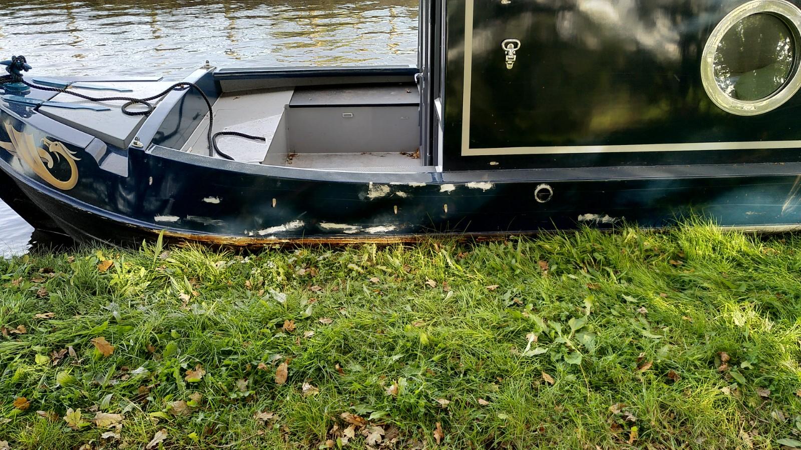 With that done to our satisfaction we drove to the winding hole a few boat lengths away. I’m a bit rusty on turning round without a bow thruster, but managed well enough. We came back to the same spot so we could reach the other side of the boat. This time we dispensed with the sketch book, Clare followed with the paintbrush as soon as I was out of the way. By lunchtime we had a boat with patchwork marks on it, but a feeling of progress. Even if we don’t do the top coat, things won’t be getting worse.