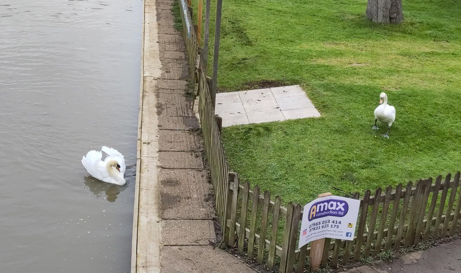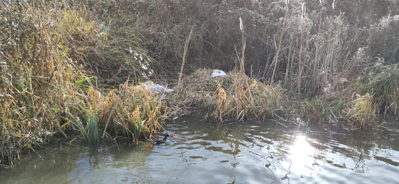 It turned out to be a fairly hard going busy day, several hard locks, awkward gates, a problematic propeller, a cut finger, plenty sunshine, a little hail and two swan nests. The second one I noticed because of the swans movements, drawing bits and pieces around to build it up. It’s a work in progress.