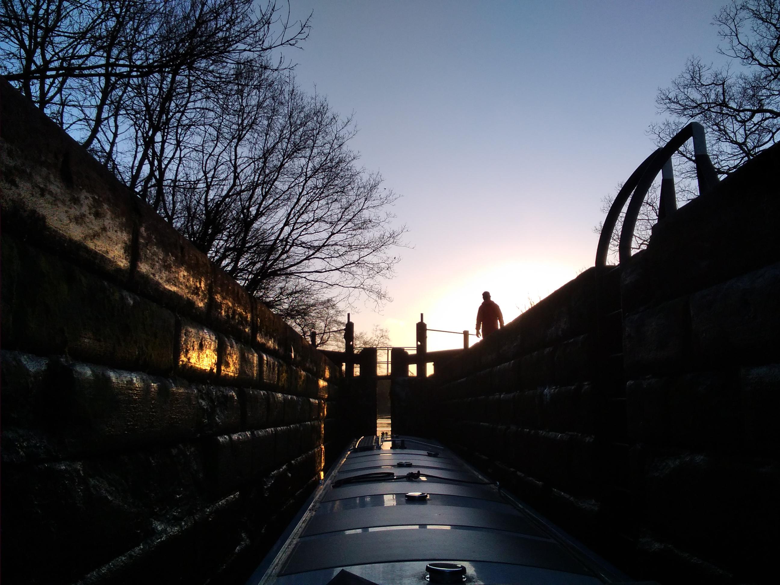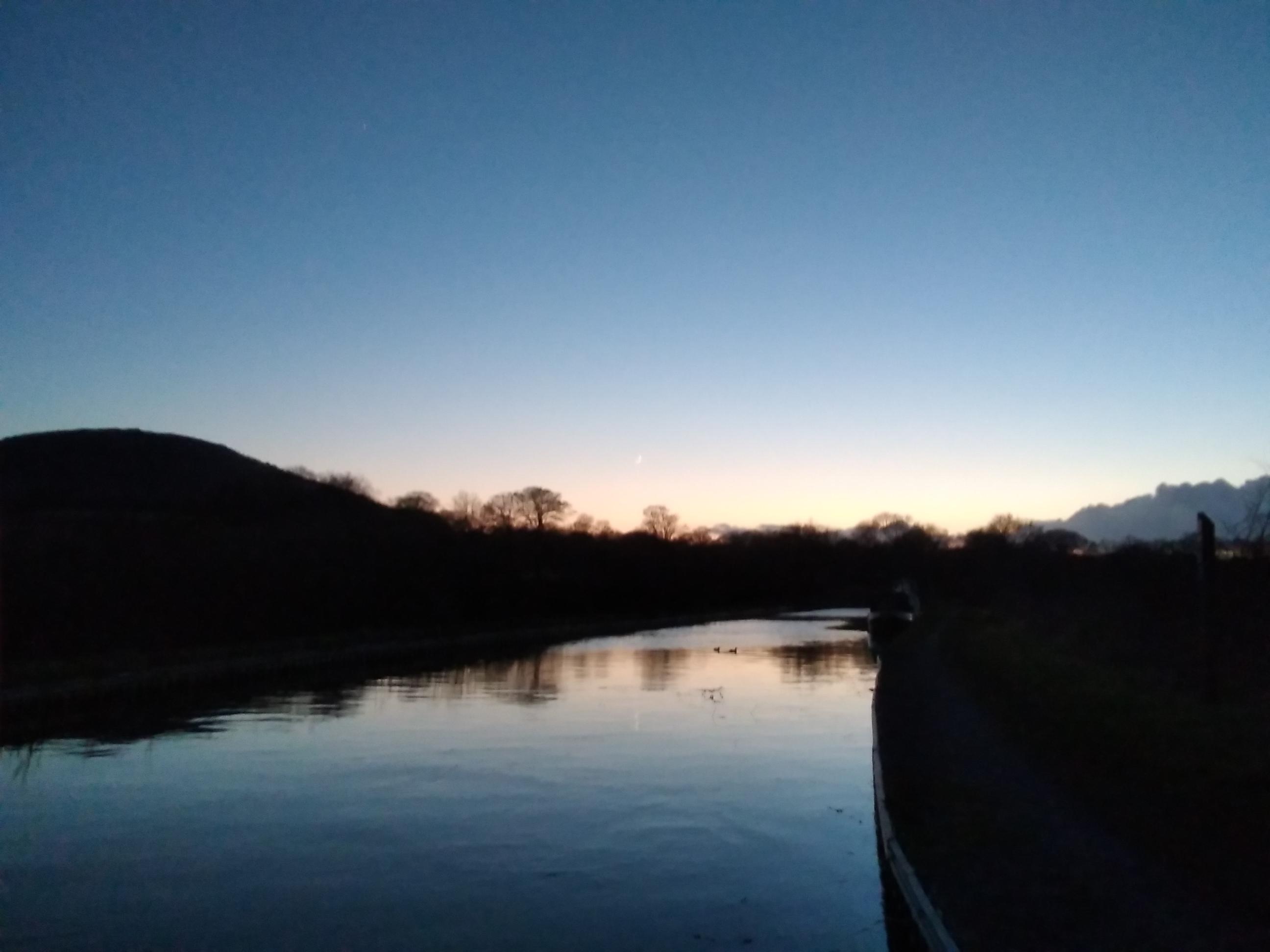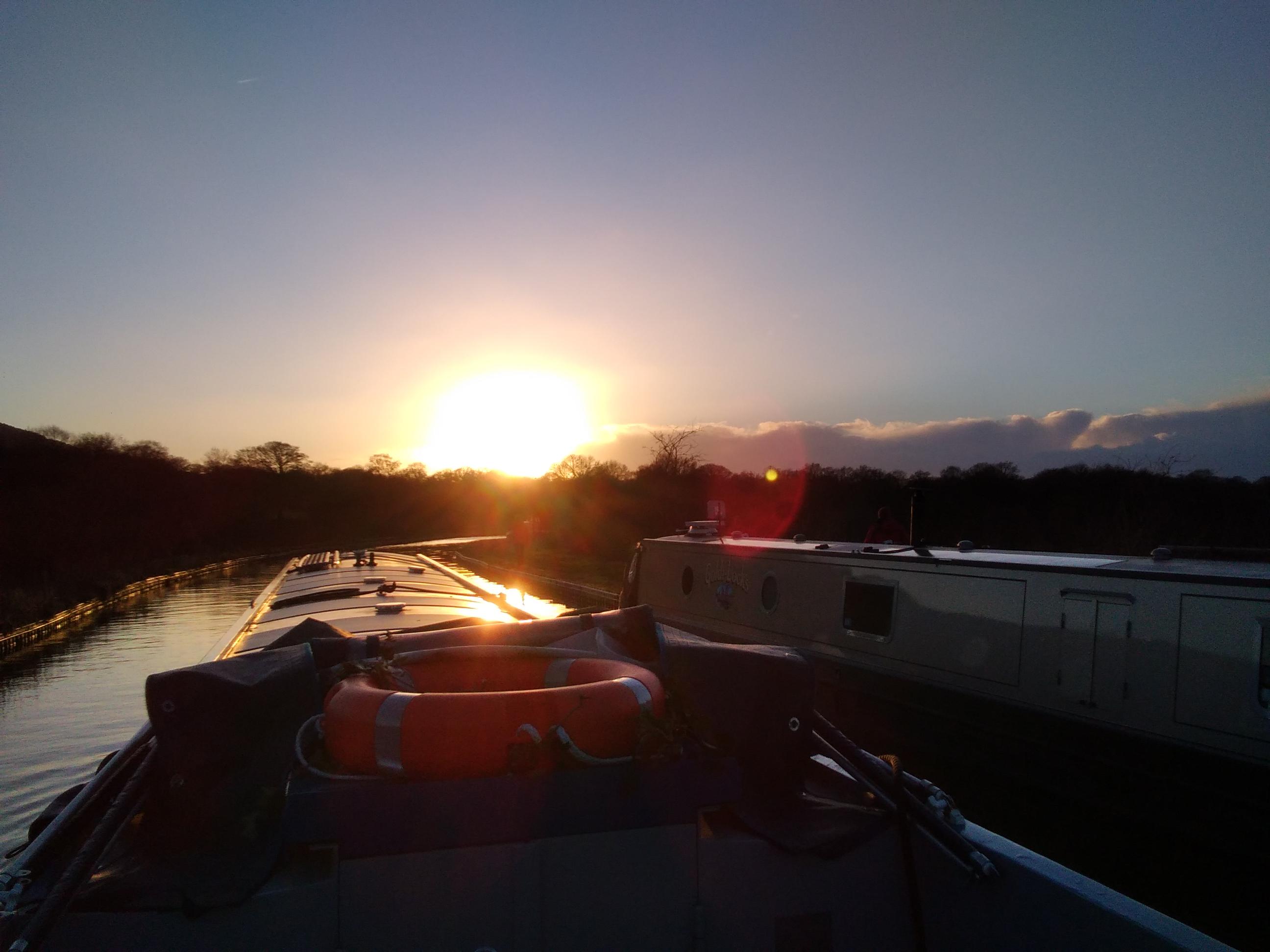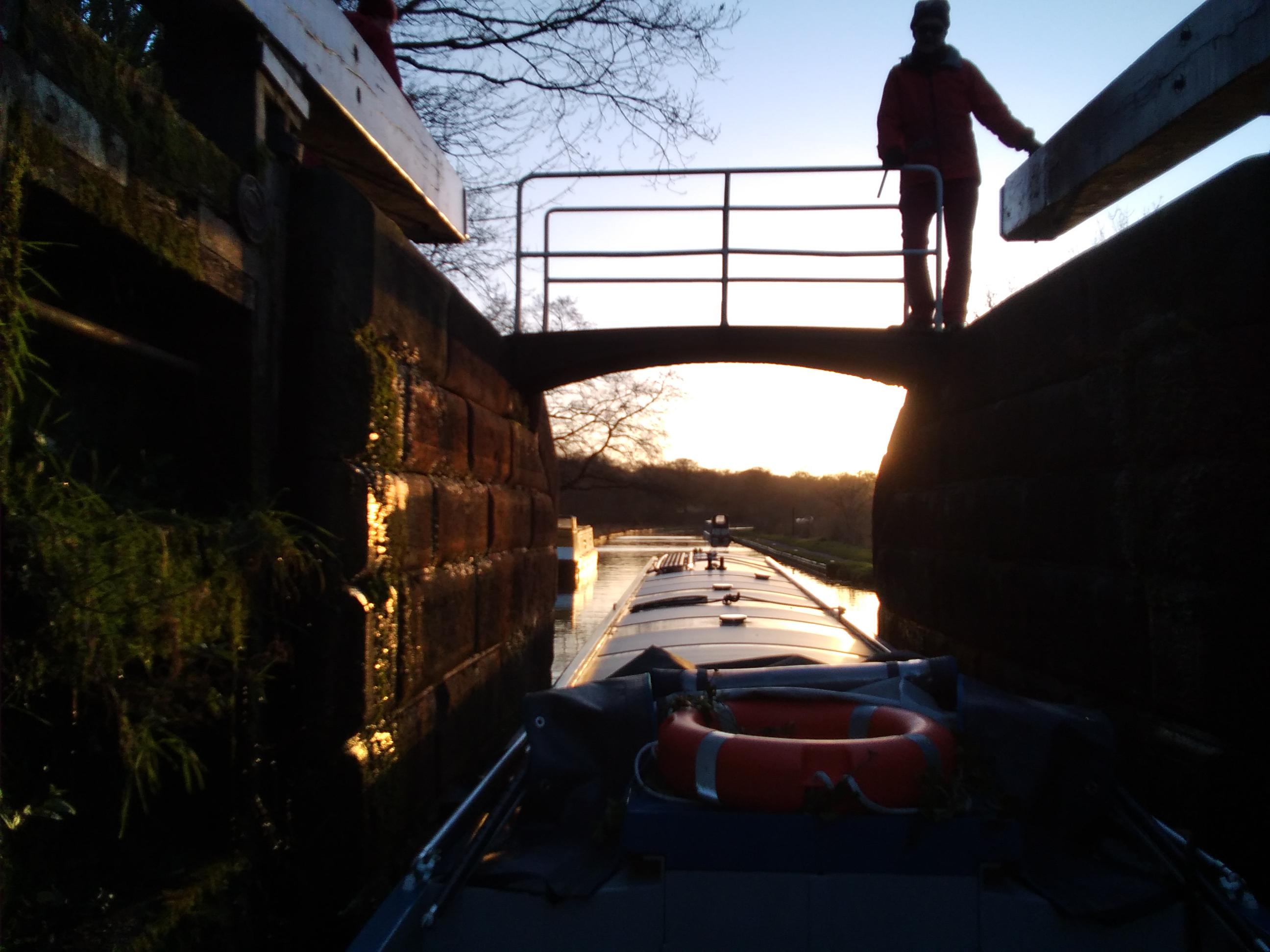 Last time Bryn stayed on the boat, he slept in the kitchen, but his rising time is later than ours and also he seems to always arrive as the forecast temperature drops to zero, and the small front room is liable to be warmer overnight. We decided we would disturb him less if we gave him the bedroom and took the large room, converting the tables into the large bed, which is easier to put together and take apart now we have the extra table. This morning, though, I was perhaps blasé in an unlimbered up state, before breakfast, and managed to twist myself putting a small table back in place, causing a painful spasm in my back.