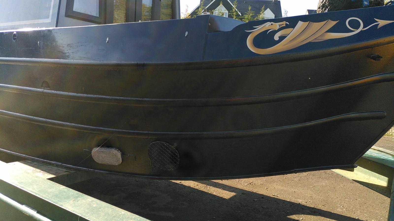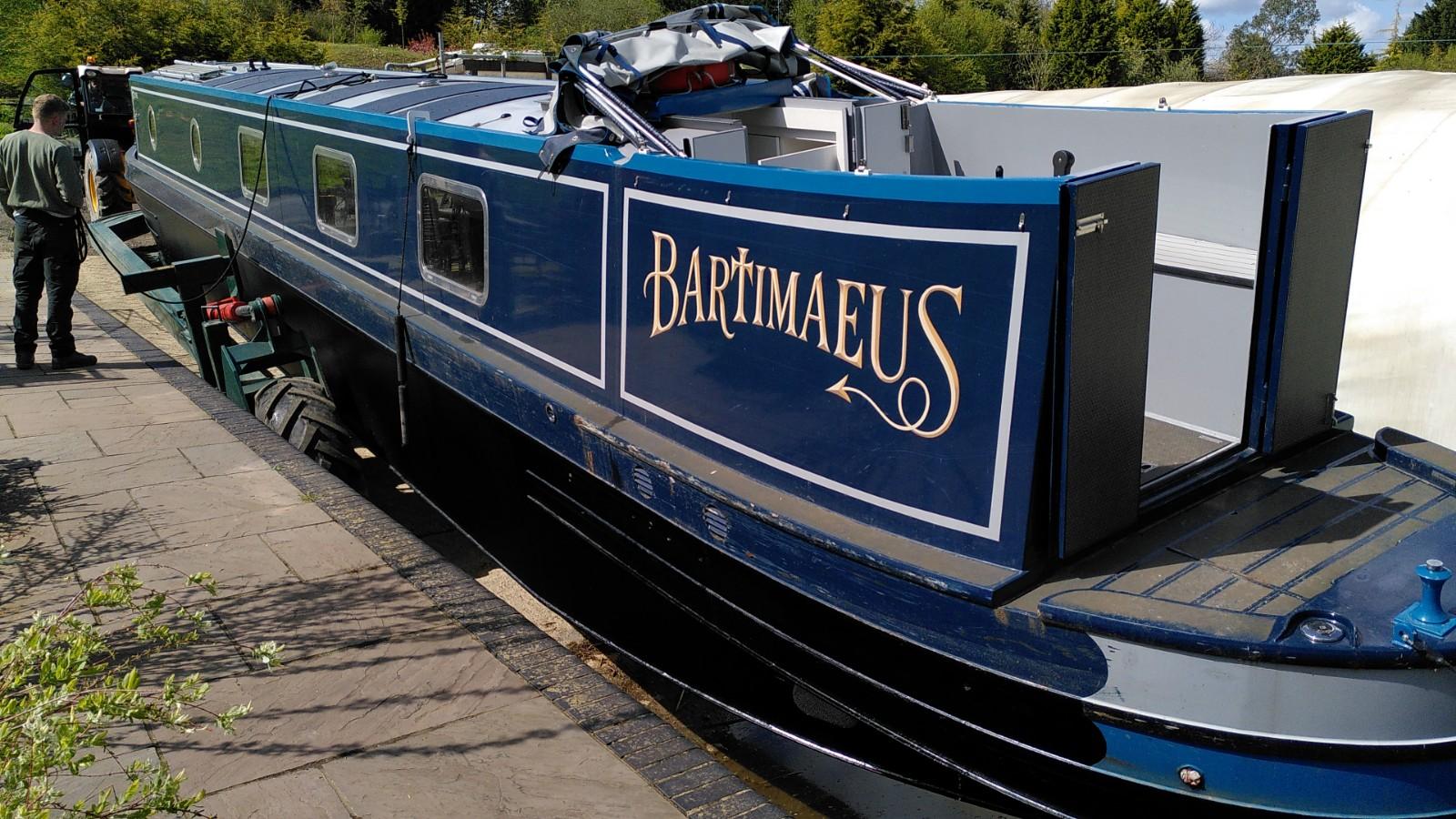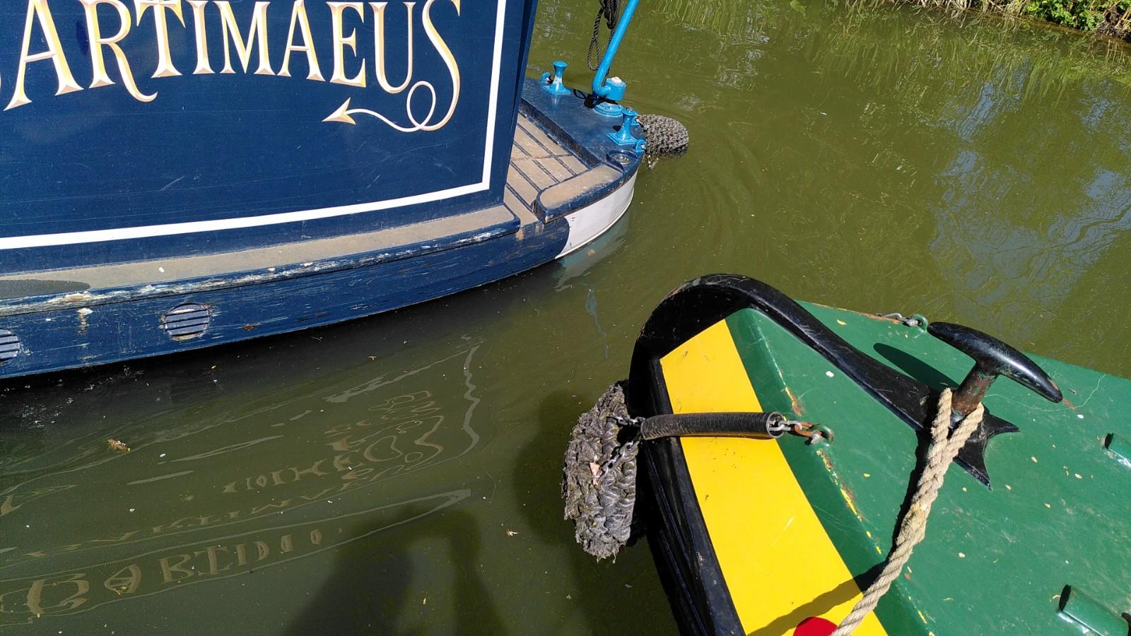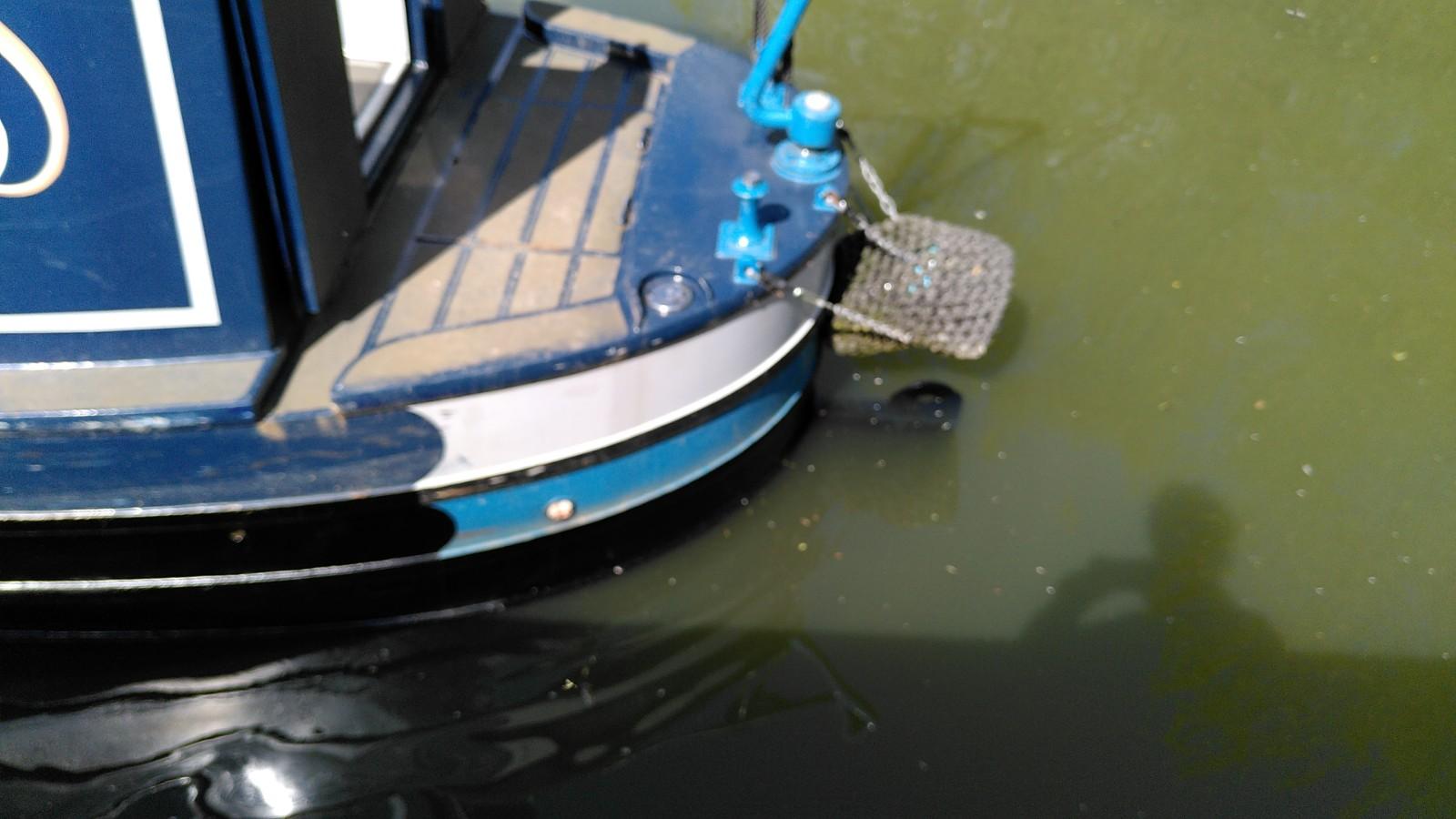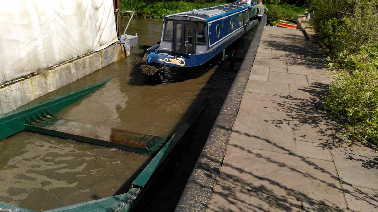 Once level again, the boat was pushed further out in to the canal. The trailer was still supporting the bow, so the stern was pushed underwater much more than usual. This is when the plug in the exhaust was doing its thing. The back of the boat reached the opposite bank of the canal before it was fully afloat. With Simon hauling on the rope, Richard drove up and back a few times until the trailer slid out from underneath. Some more rope hauling and Bartimaeus was ready to board. It wasn’t a very elegant launch, but effective.
