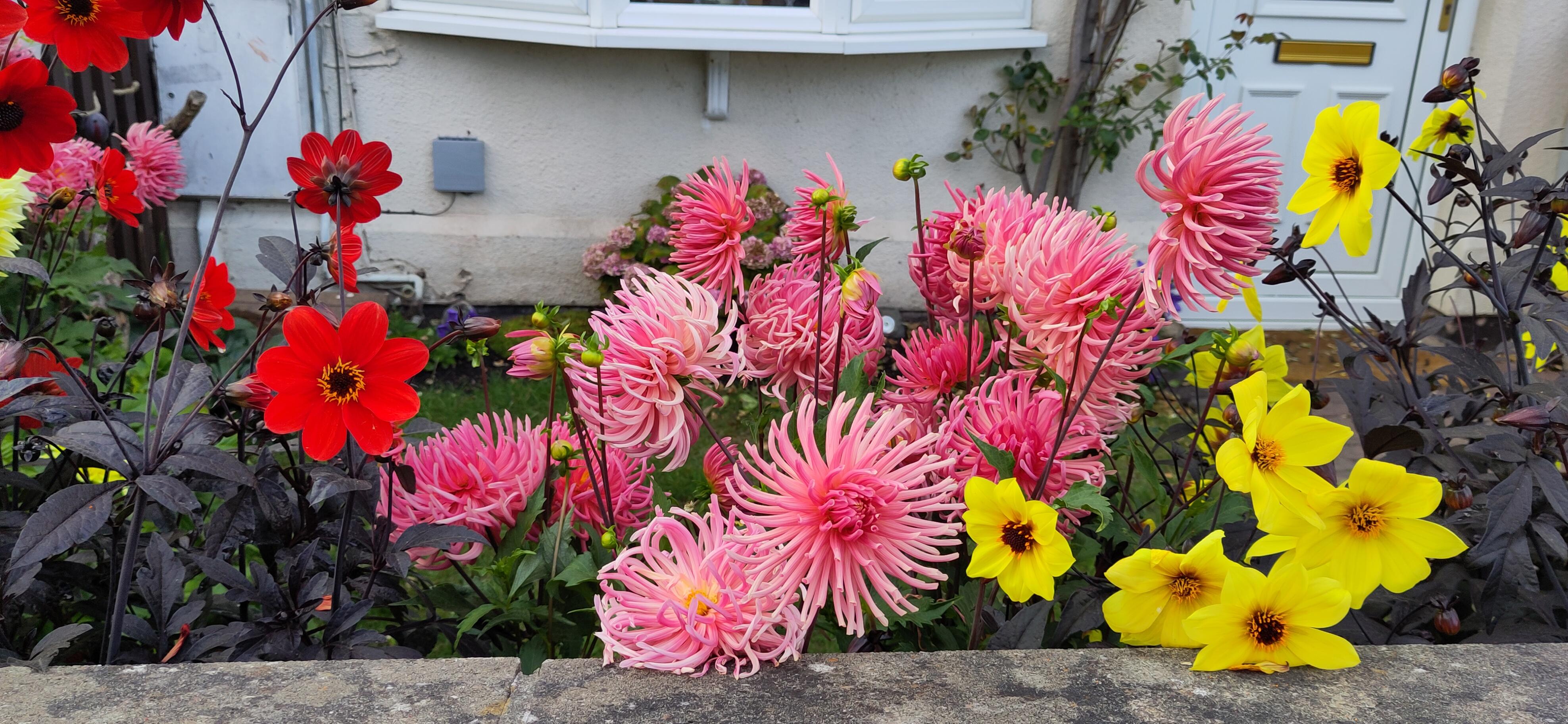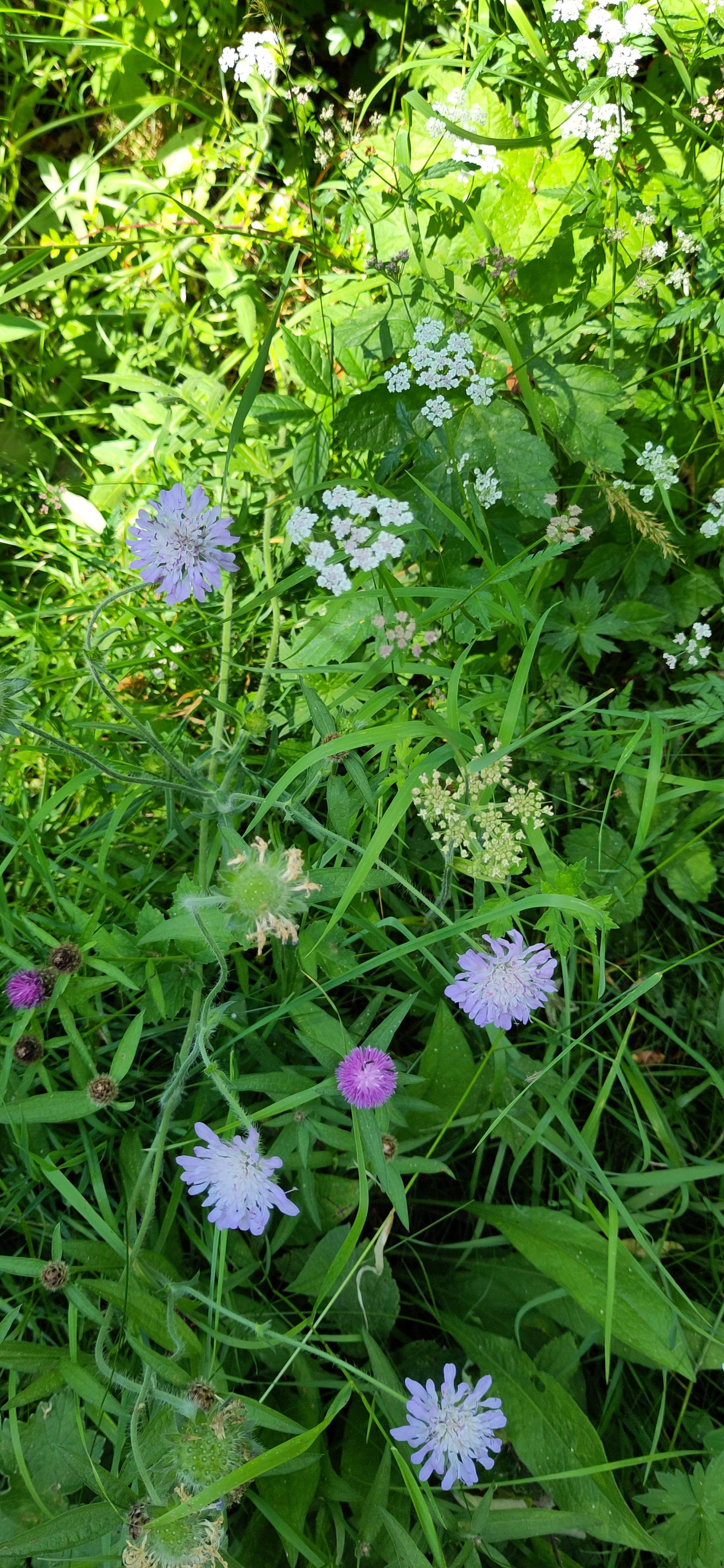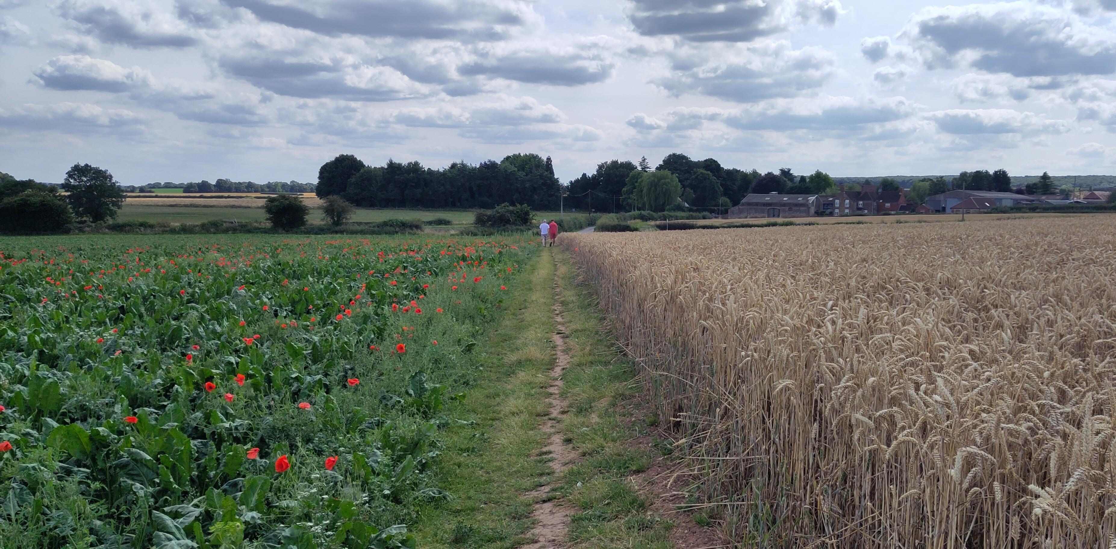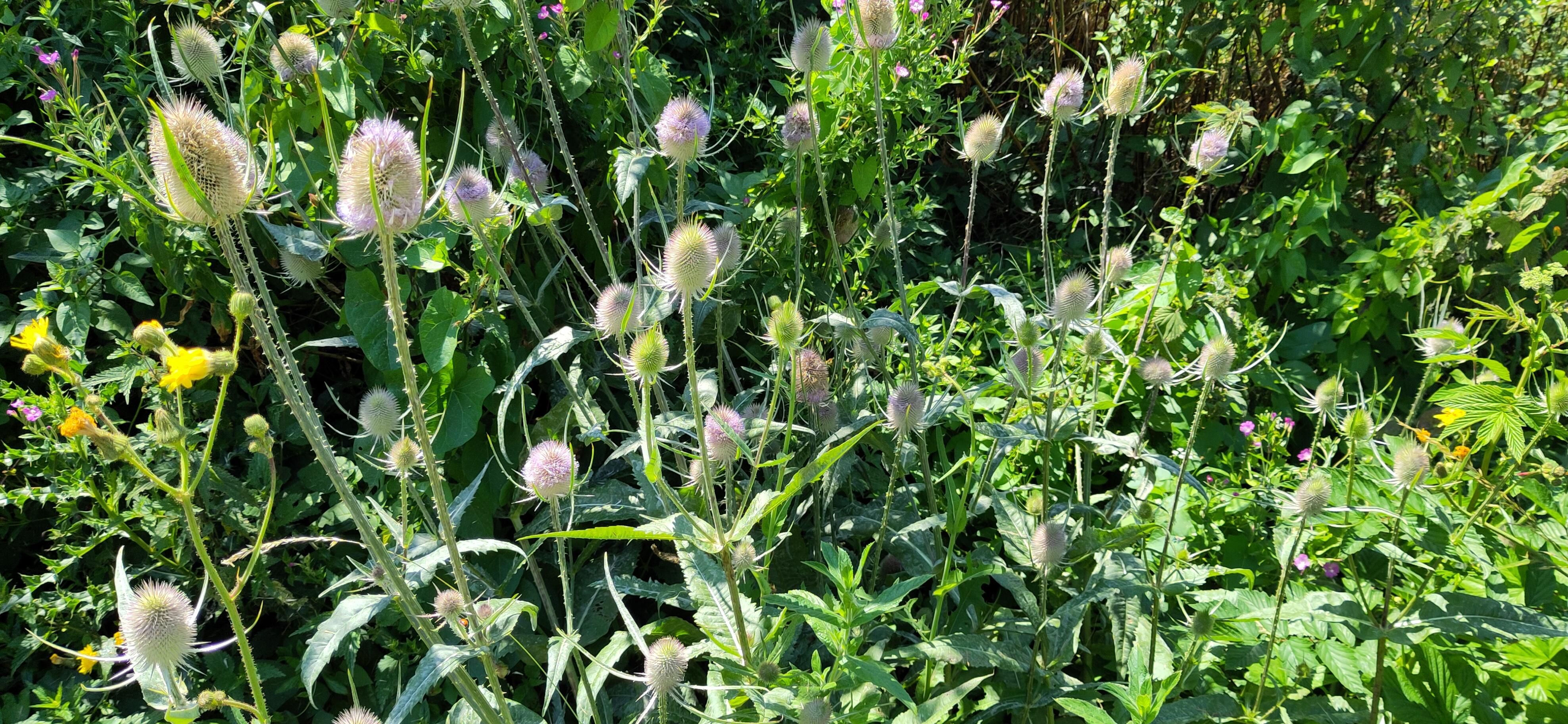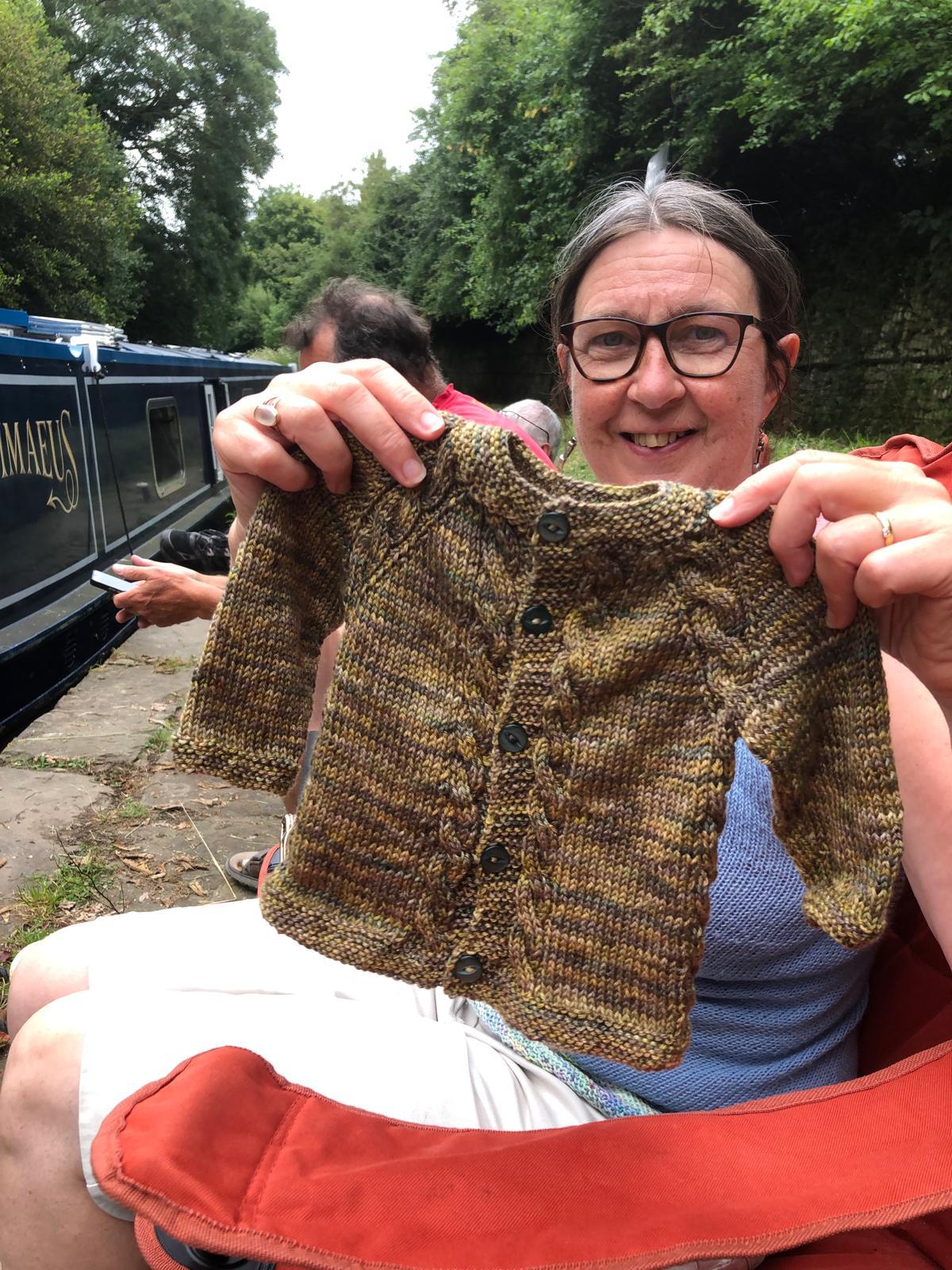 The next day was a major flight of locks so we needed some building up. While we were at breakfast, I saw our friend from the boat behind, who had enjoyed the same pub the day before, walking past with a boathook in his hand. I didn’t think this would be up to moving the tree. When I saw him return, I asked how it had gone. He explained it hadn’t even reached the tree from the bank. I told him our crew planned to tackle it with a saw and he agreed that would be what was needed. Roland and Shane set about it. Roland sawing, Shane photographing and taking branches from him. The lopping was going well but they had nowhere to put the branches, as they couldn’t reach either bank and so I went to get them passed to me from the boat to the towpath. Margaret was enjoying the damselflies but then came to join me in tucking the branches into the hedge, off to the side of the towpath.