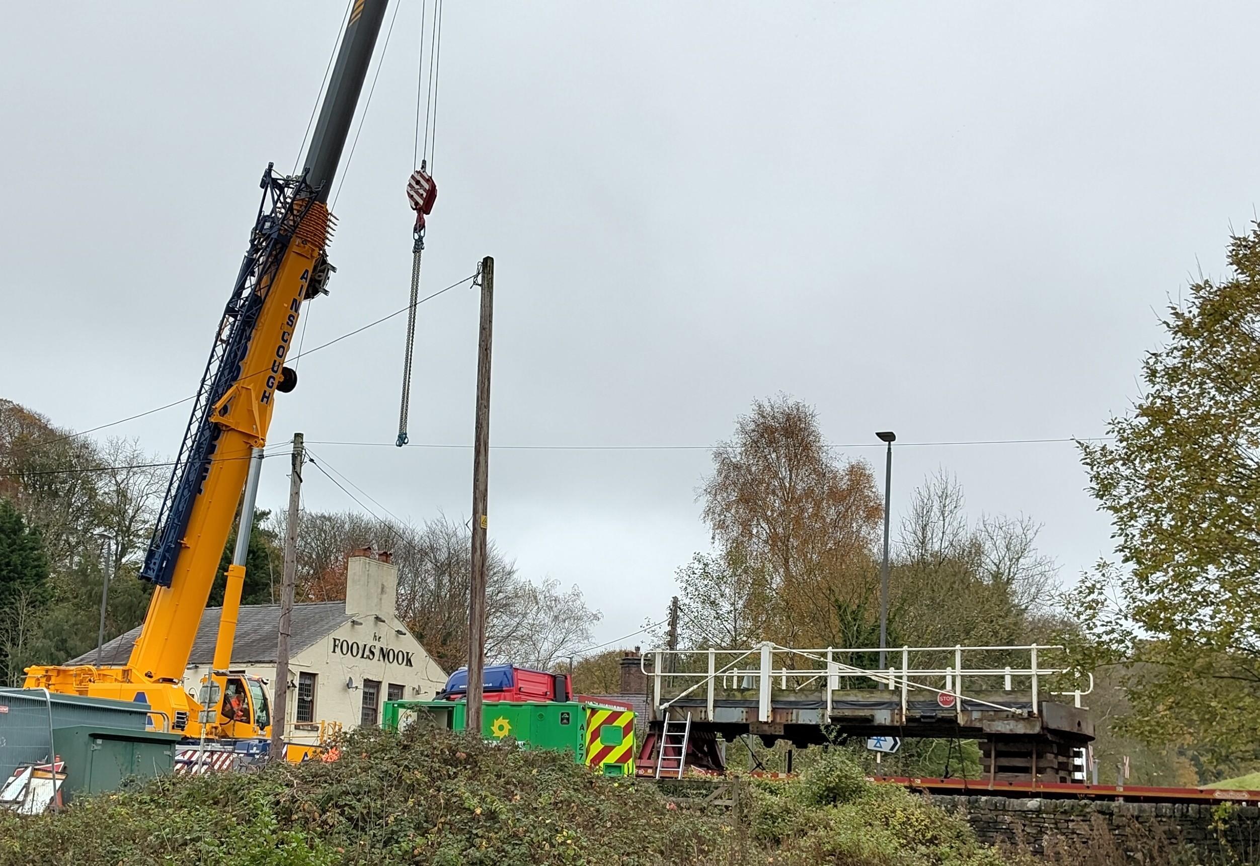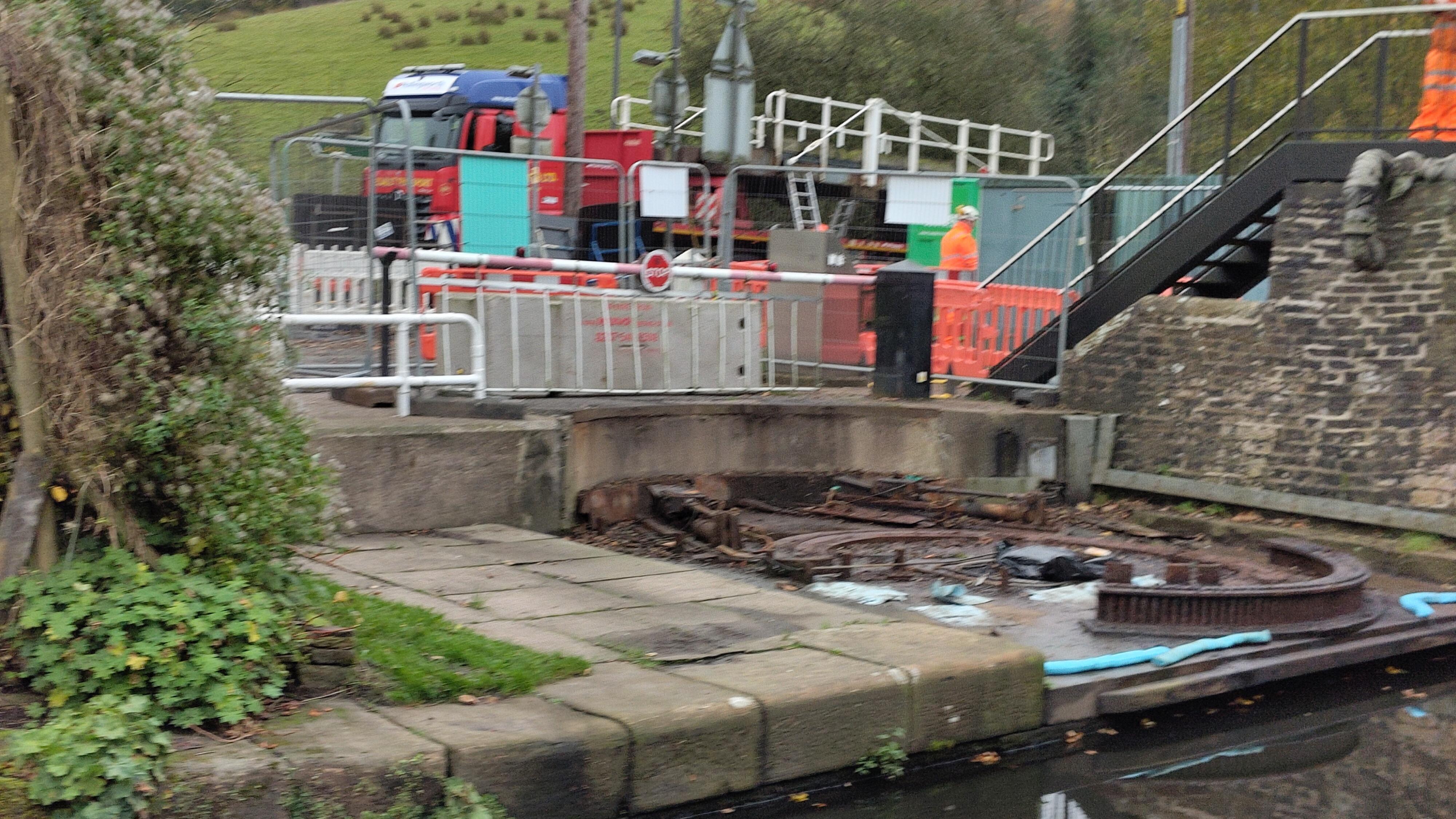 By the time we reached the site, it was clear that we had missed all the action. The bridge deck was sitting on a lorry nearby with workers adjusting chains to hold it down. The canal was clear of obstructions and probably safe to use. There is a fixed footbridge over the canal at this point too. I spoke to the worker who was standing on it who said things had gone very well. I hadn’t anticipated any trouble passing here in the next day or two, but it was good to get that confirmed.