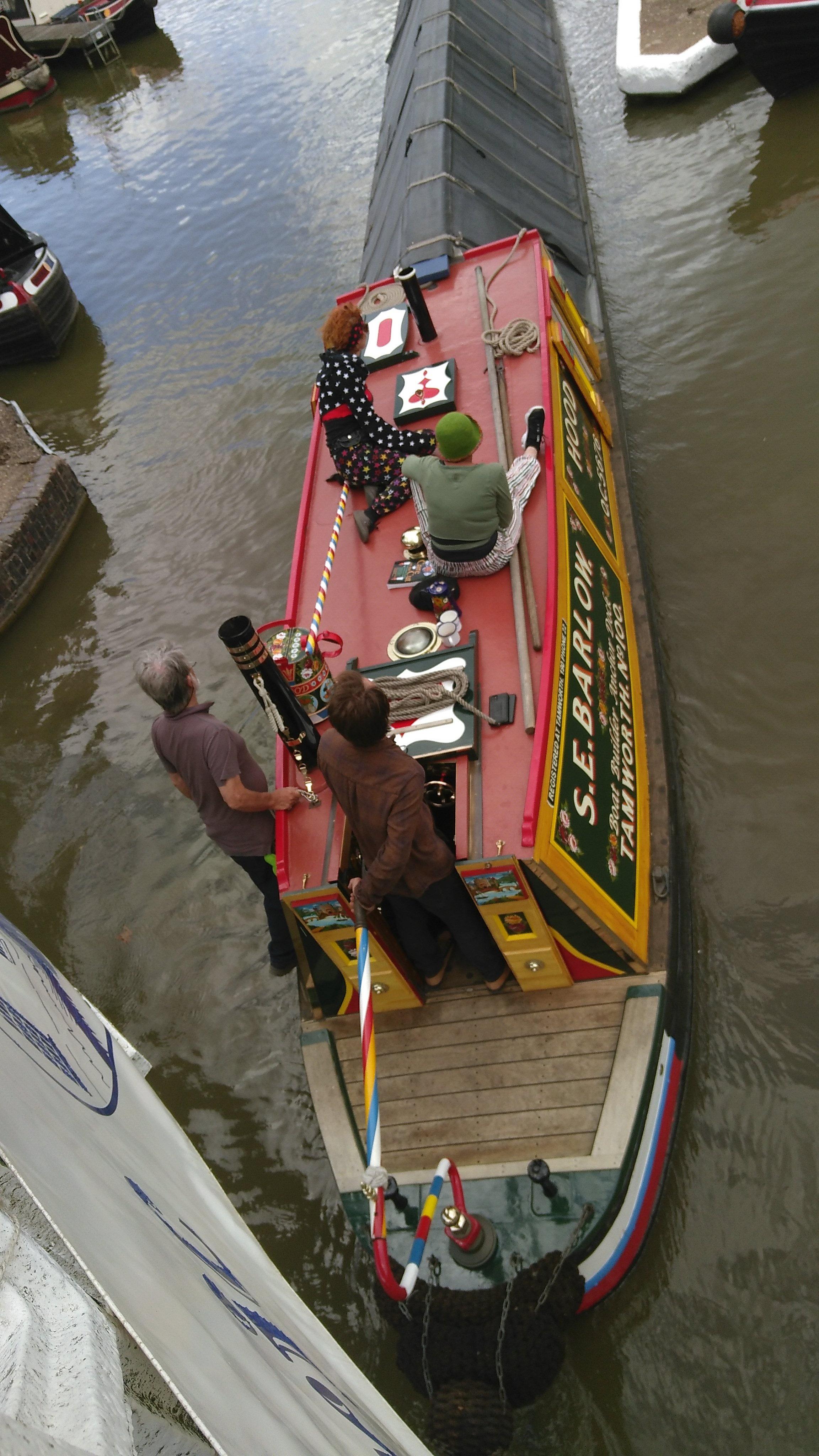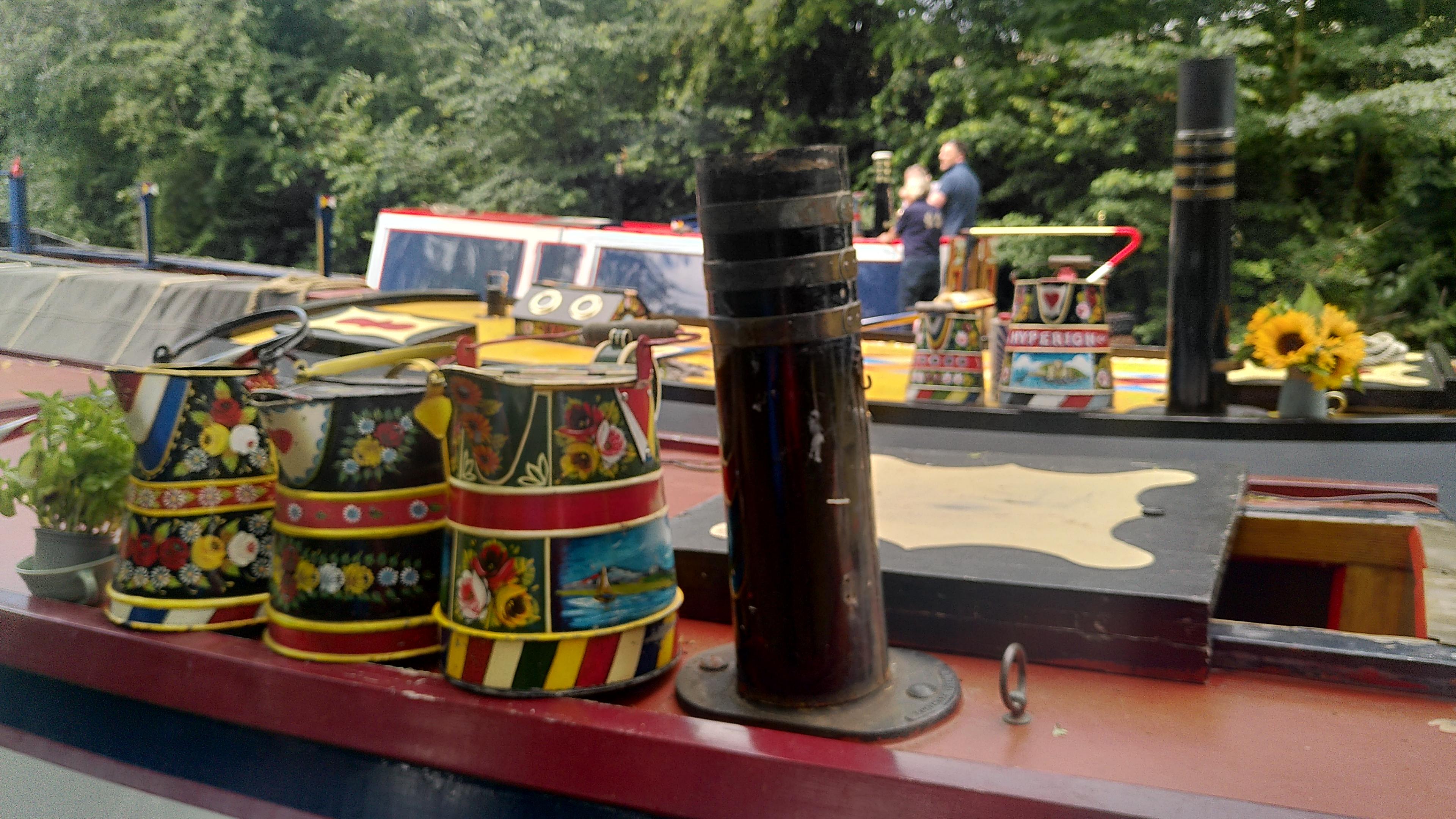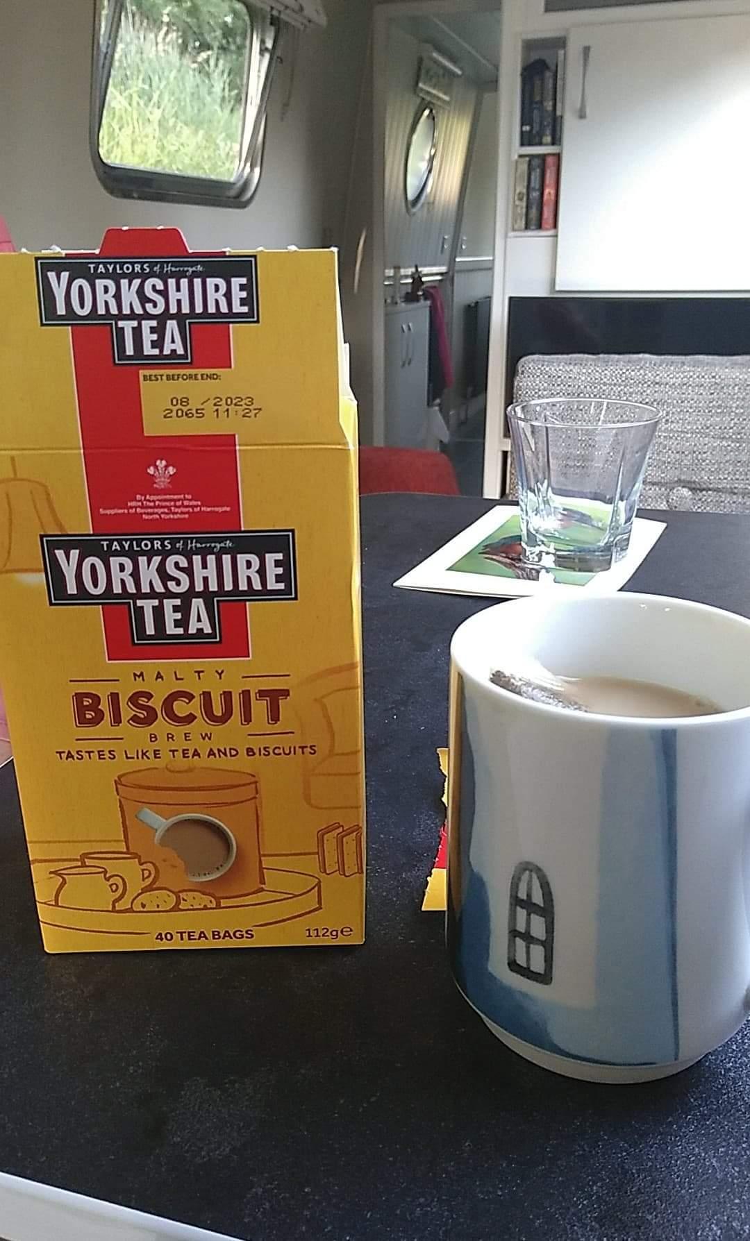 Like Foxton, we were assisted by lock keepers all the way and we were the only boat going through, so got p!enty of attention. Unlike Foxton, I was driving and Shane locking. We had a cheery chat with a boater coming the other way who was intrigued that we both had dragon motifs on our boats. It was a little windy but it all went smoothly enough. I had time for a cup of tea, while waiting for the boats coming up, and staved off a bit of hunger, having arrived at lunch time. After entertaining guests last weekend, I had realised that we were low on several kinds of tea and out of any Grey varieties altogether! I looked for some in Welford and could find no Grey tea (Earl, Lady or Duchess) but did find one I thought might help me lose weight (or slow the gain). I don’t want to go on a diet but something to stop me wanting to eat a random snack might be handy. (The glass in the background is not because I also had a tipple, it is the insect catching device, coupled with the card, essential boat accessories in the summer!)