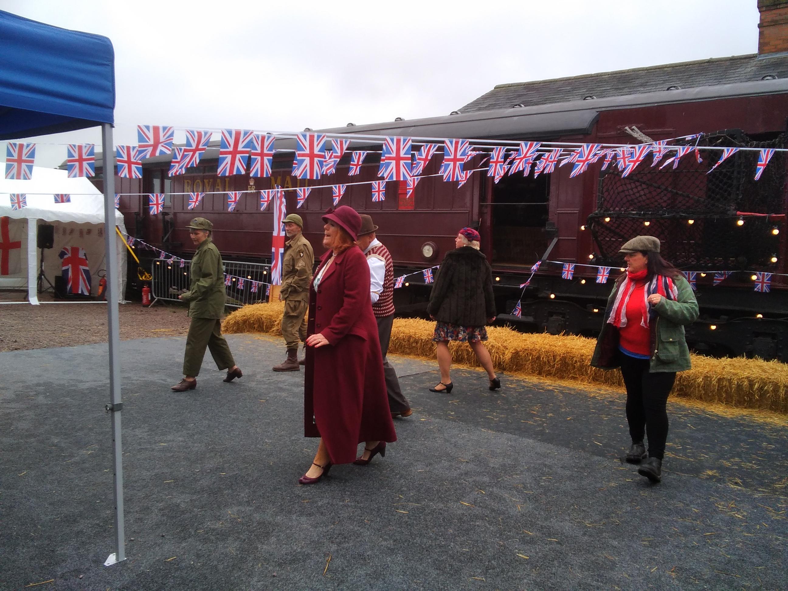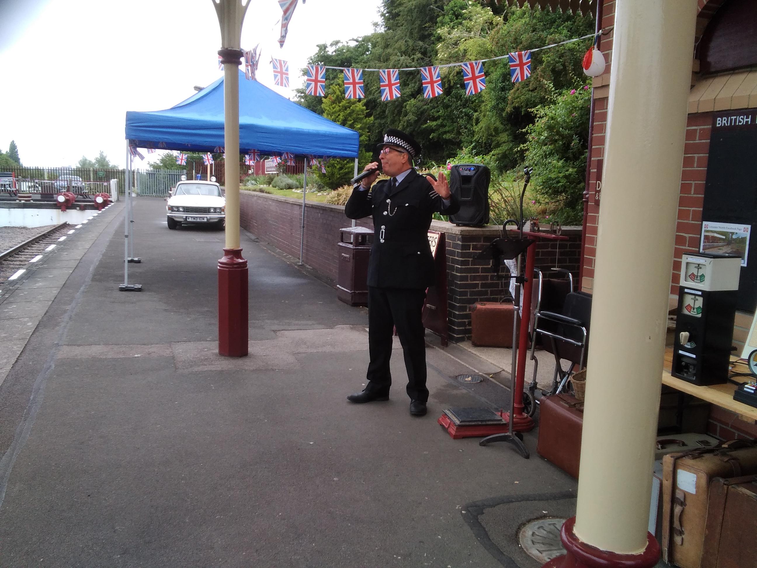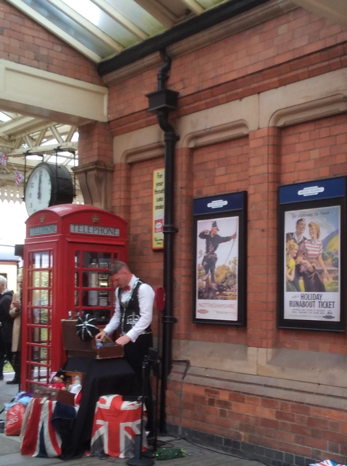 Shane had looked up Loughborough events to see “what’s occurring” ( as a nearby pub said on its noticeboard). Loughborough has a steam train station that regularly puts on vintage events and the platinum jubilee was an excuse to spread that over several decades. In the spirit of serendipity and enjoying what’s on offer, we decided to go along and check it out. It was pretty chilly but Shane decided it was June so shorts were de rigeur. But he had a hat in his pocket.