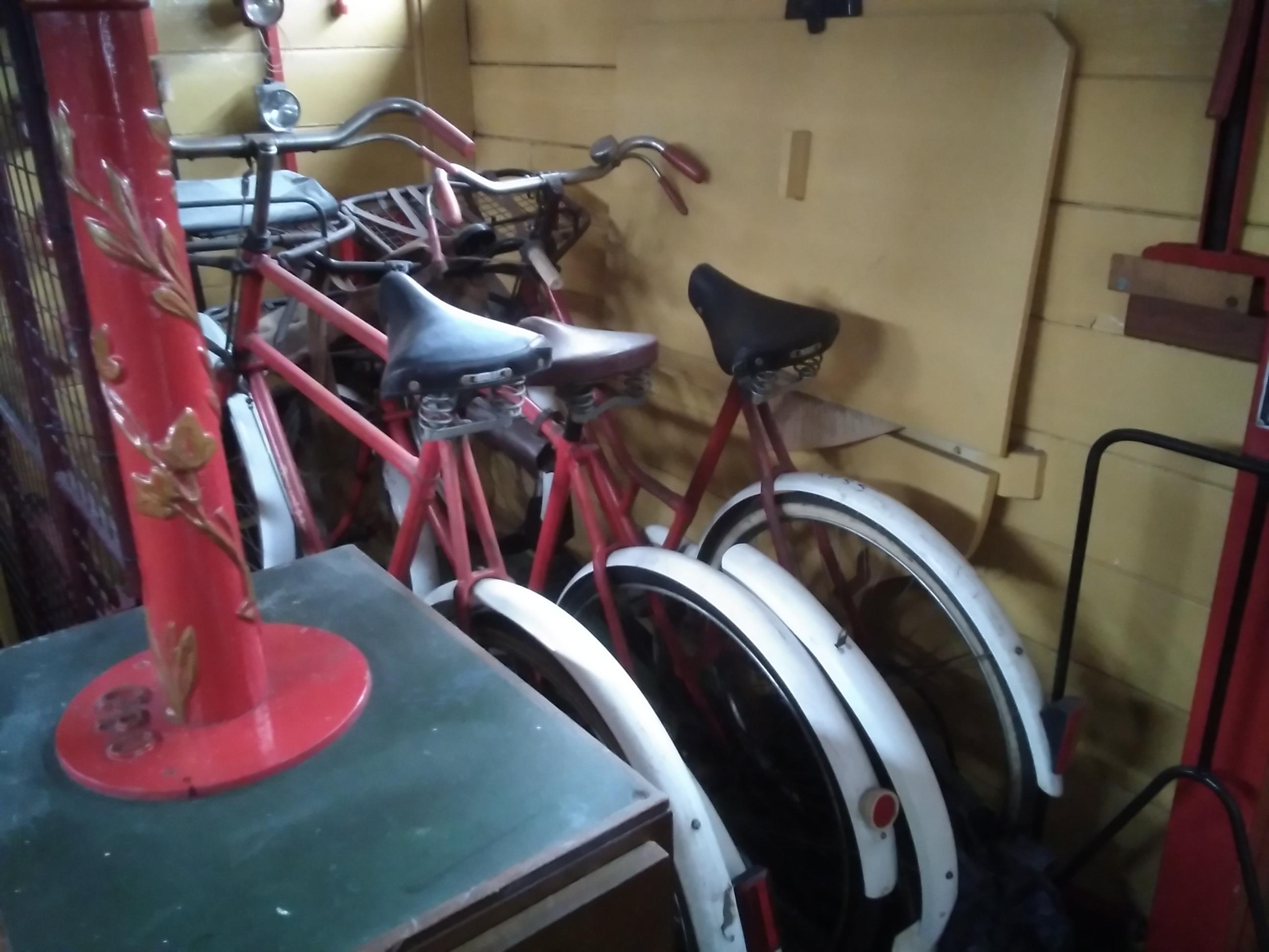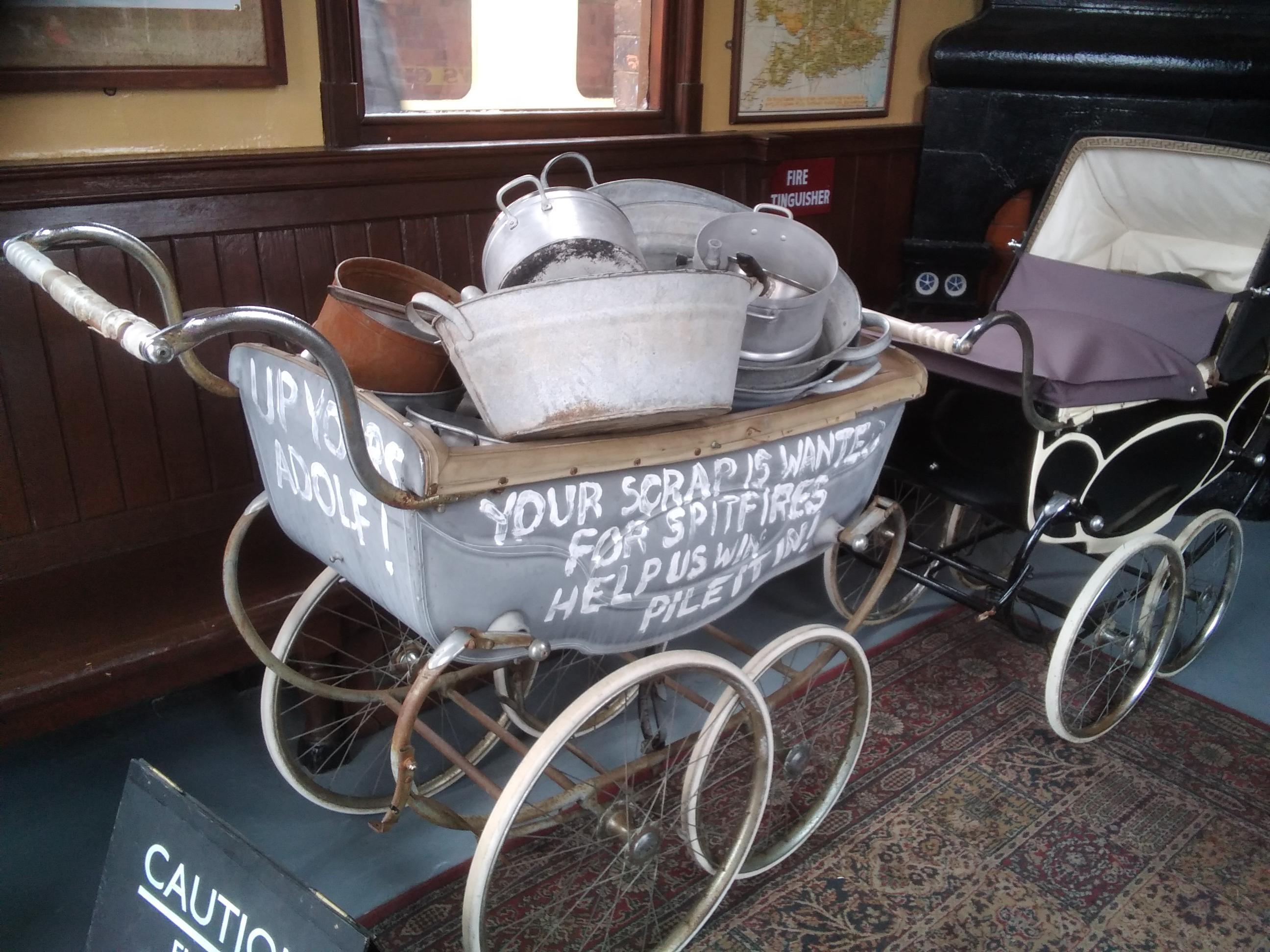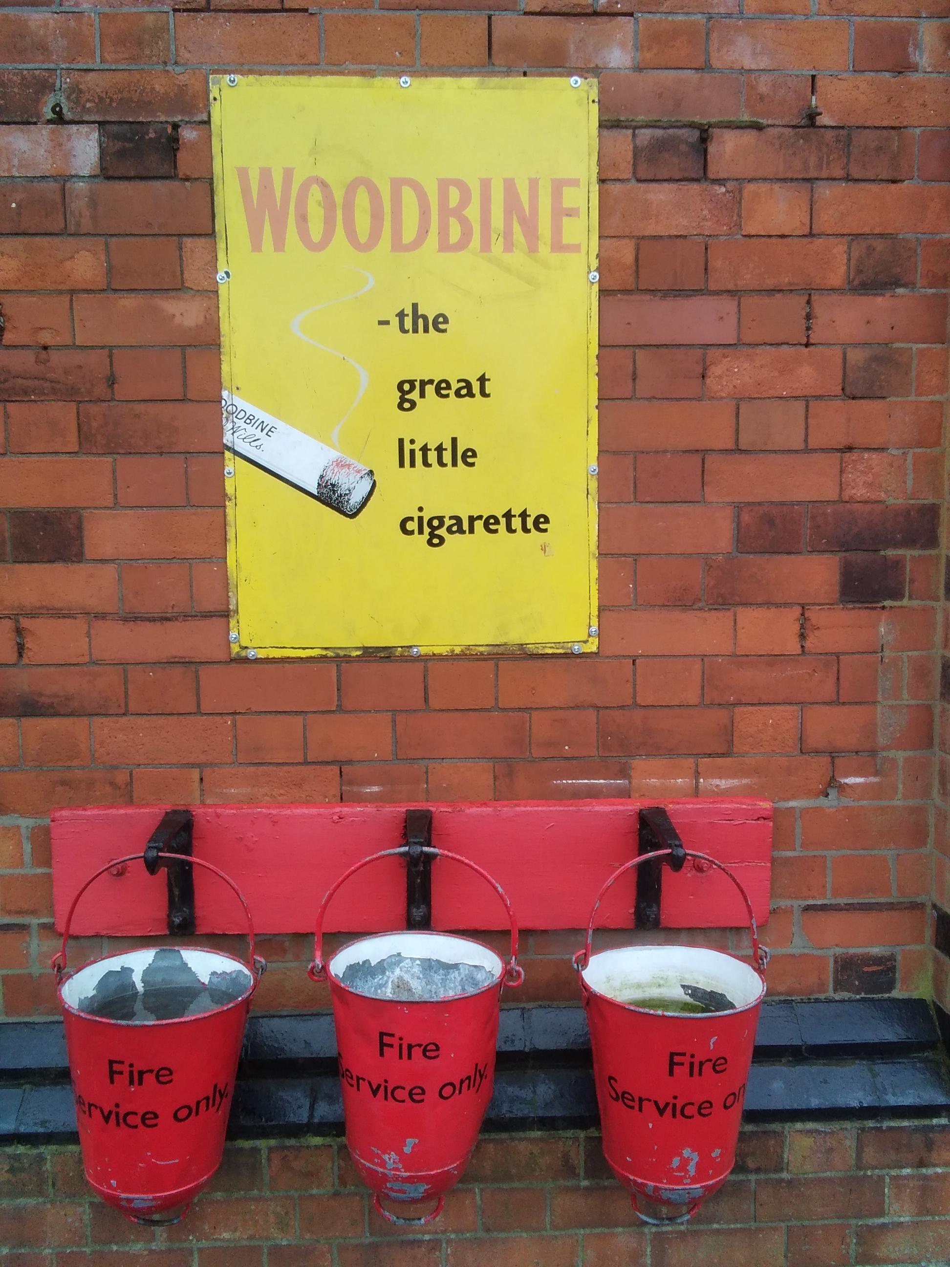 Someone with a sense of humour had a hand in some of the permanent displays, with Dad’s Army references. Other displays may not have been deliberate but I wondered about the positioning of smoking adverts and fire buckets. I liked the handles at the bottom for easy chucking of sand or water at a fire, they looked well used.
