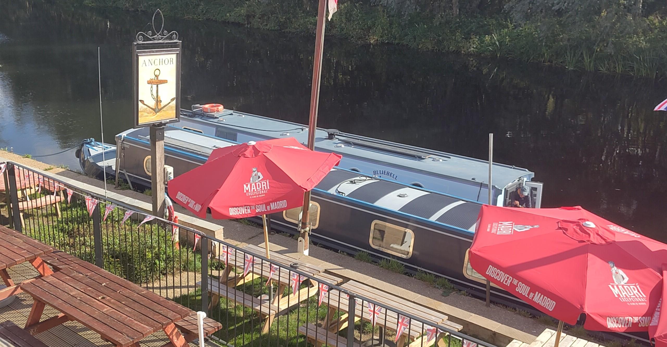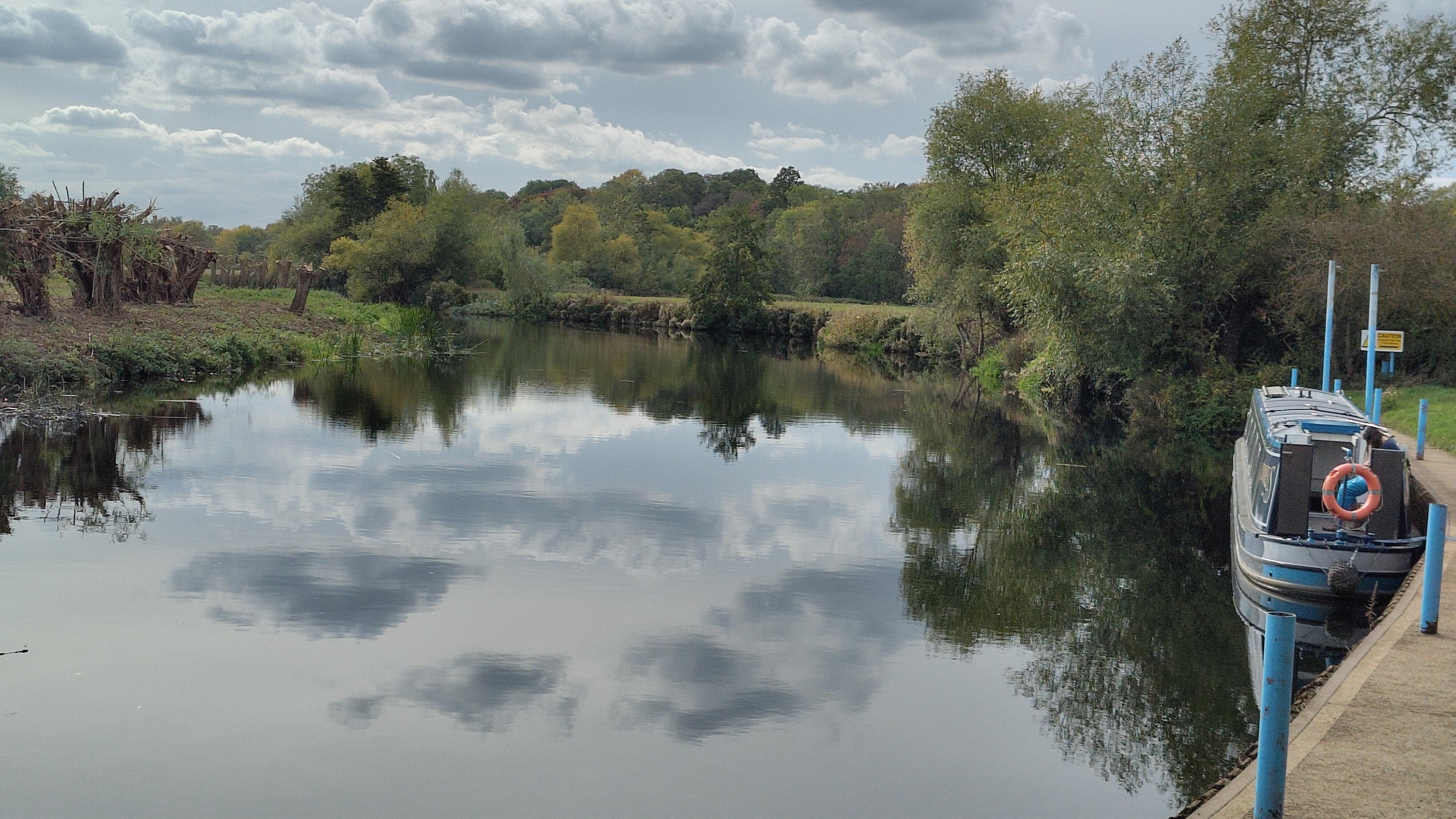 The mooring was in a very tranquil spot, though it was surrounded by man-made structures, including: pylons, fences, poles, a lock, a weir and even an A-road roundabout. None of this made it easy to get good photographs. What we got instead was a display of bird life. We had repeated sightings of a pair of kingfishers chasing by, and many more sightings of single birds. There was also a cartoon style array of single birds of different species: cormorant, heron, goose, duck, moorhen.