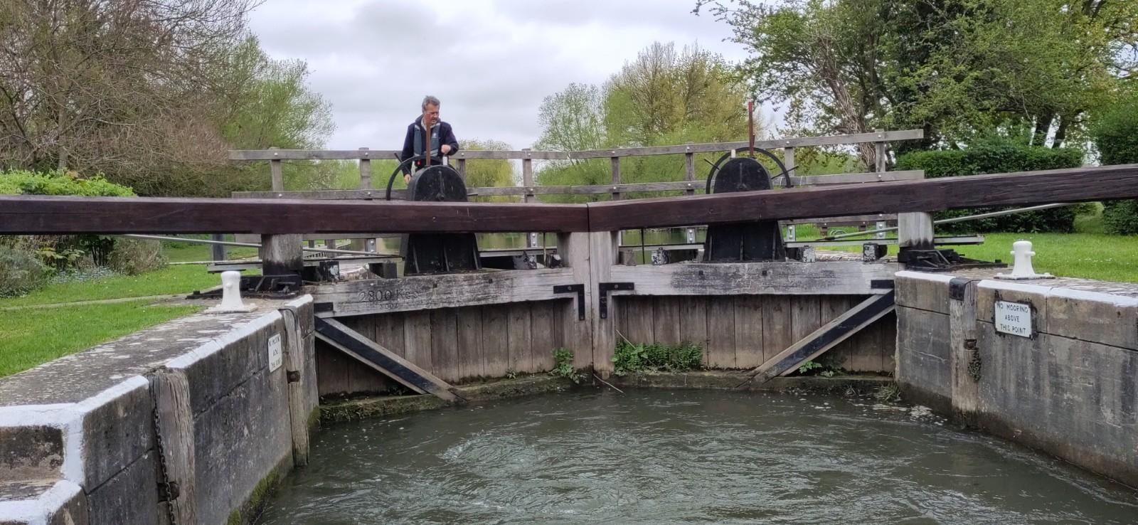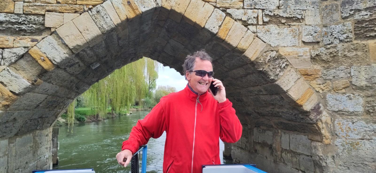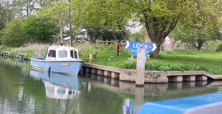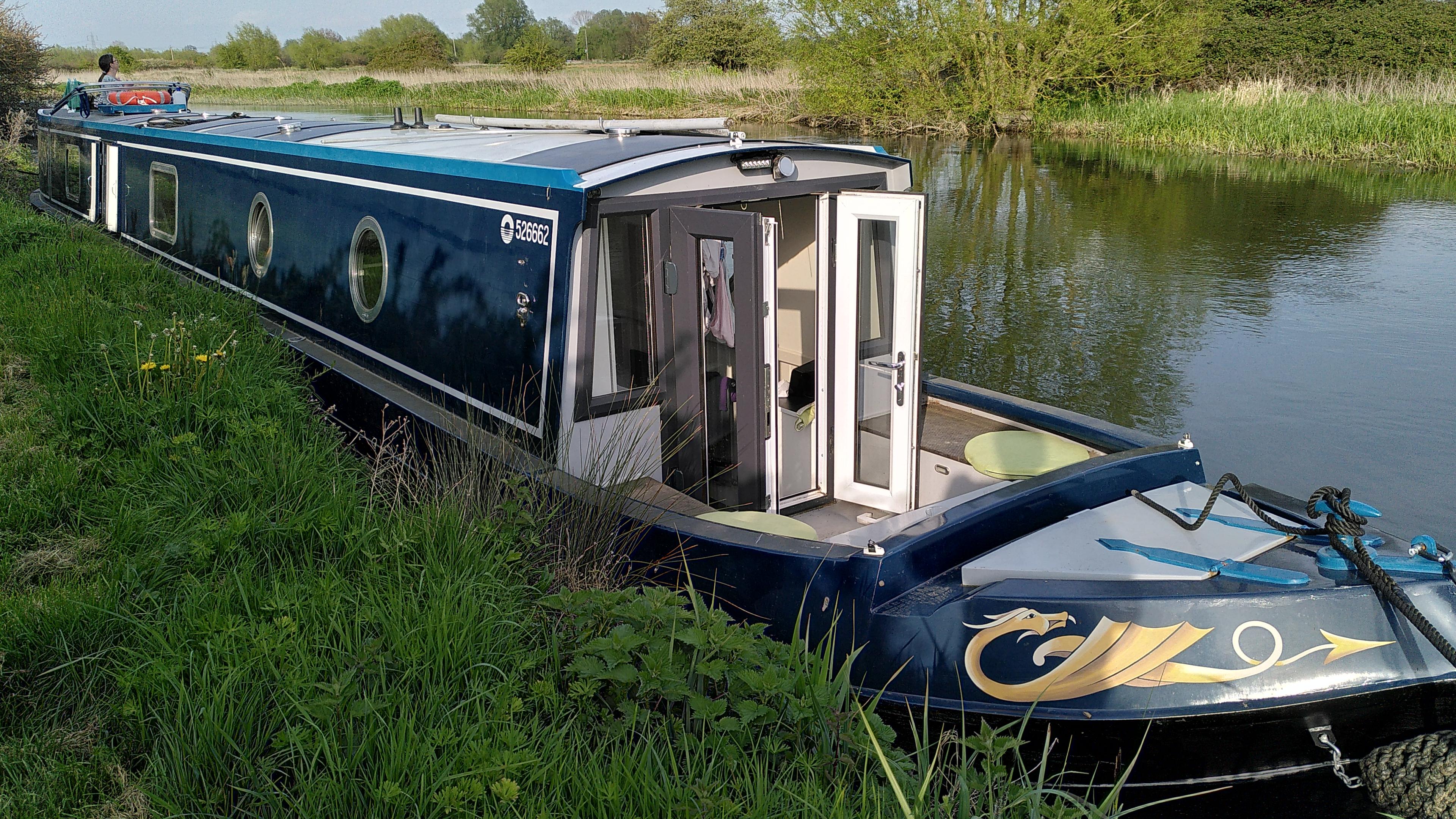 Soon after, we met a boat coming the other way. The river meanders a lot here, so I had seen it coming across the fields in unbelievable curves. When it eventually appeared in front of us I wasn’t sure we would pass on the correct side, but everything went smoothly. I was mindful of the possibility of meeting another boat at one of the sharp corners, which is my excuse for cutting it too sharply. On a canal I usually realise we are aground by the way the boat rolls. This time I just gradually realised we weren’t going forward any more.