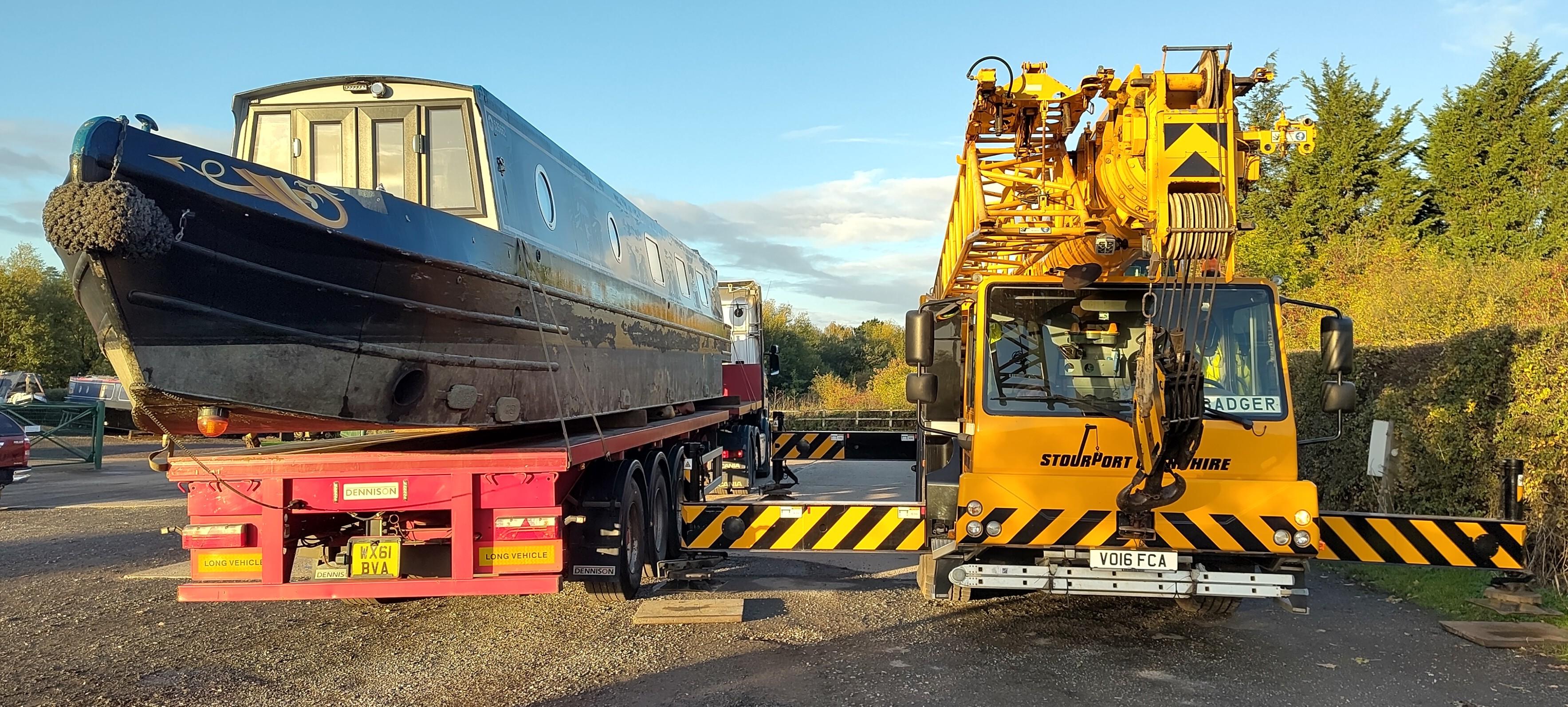 Before we'd finished, I could see that Bartimaeus had arrived outside the unit. The next bit of the operation was to swap places with NB Albatross, a brand new boat that was coming out for launch in Milton Keynes. Before we got on the train, Bartimaeus had been moved inside the building.