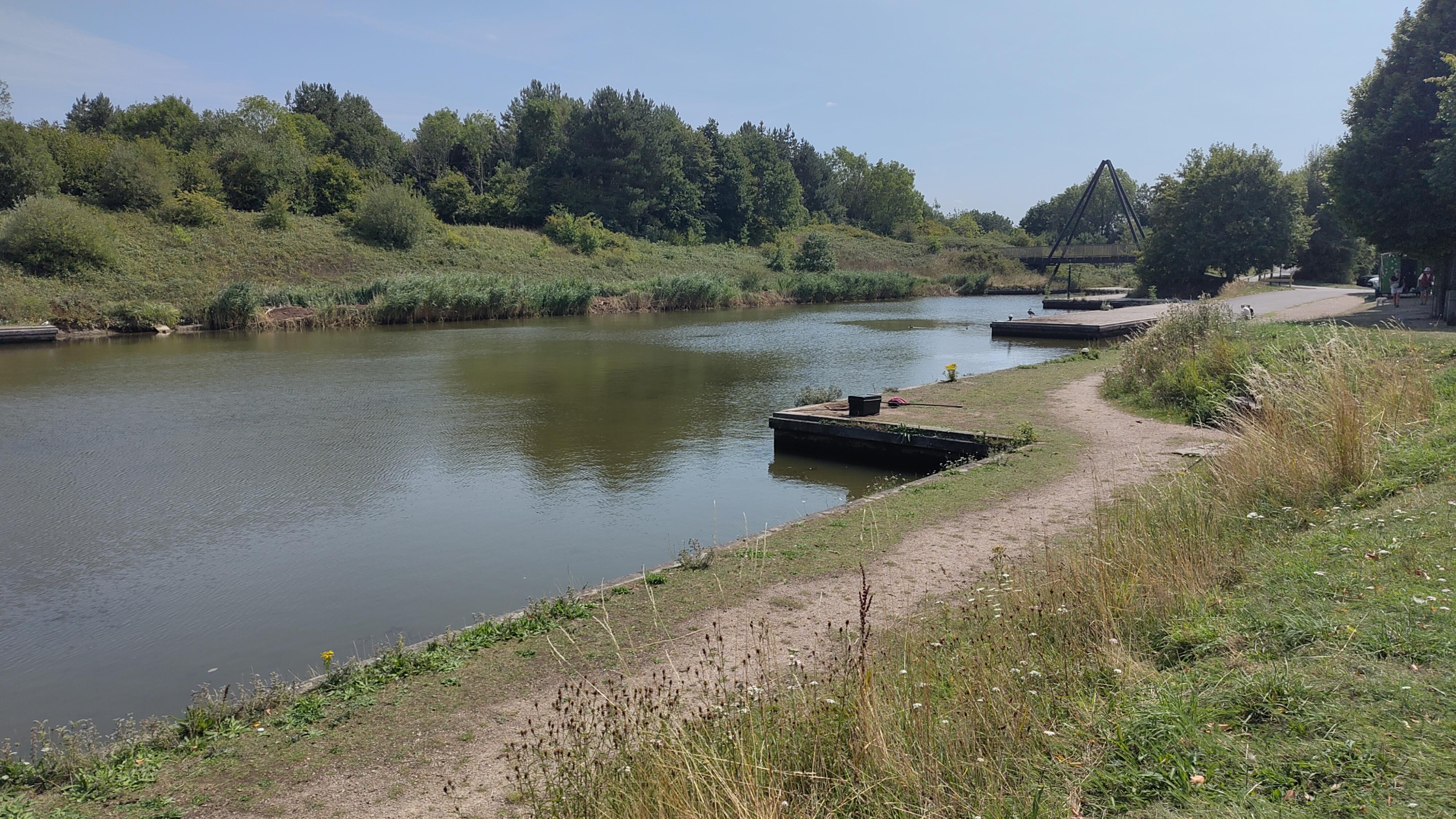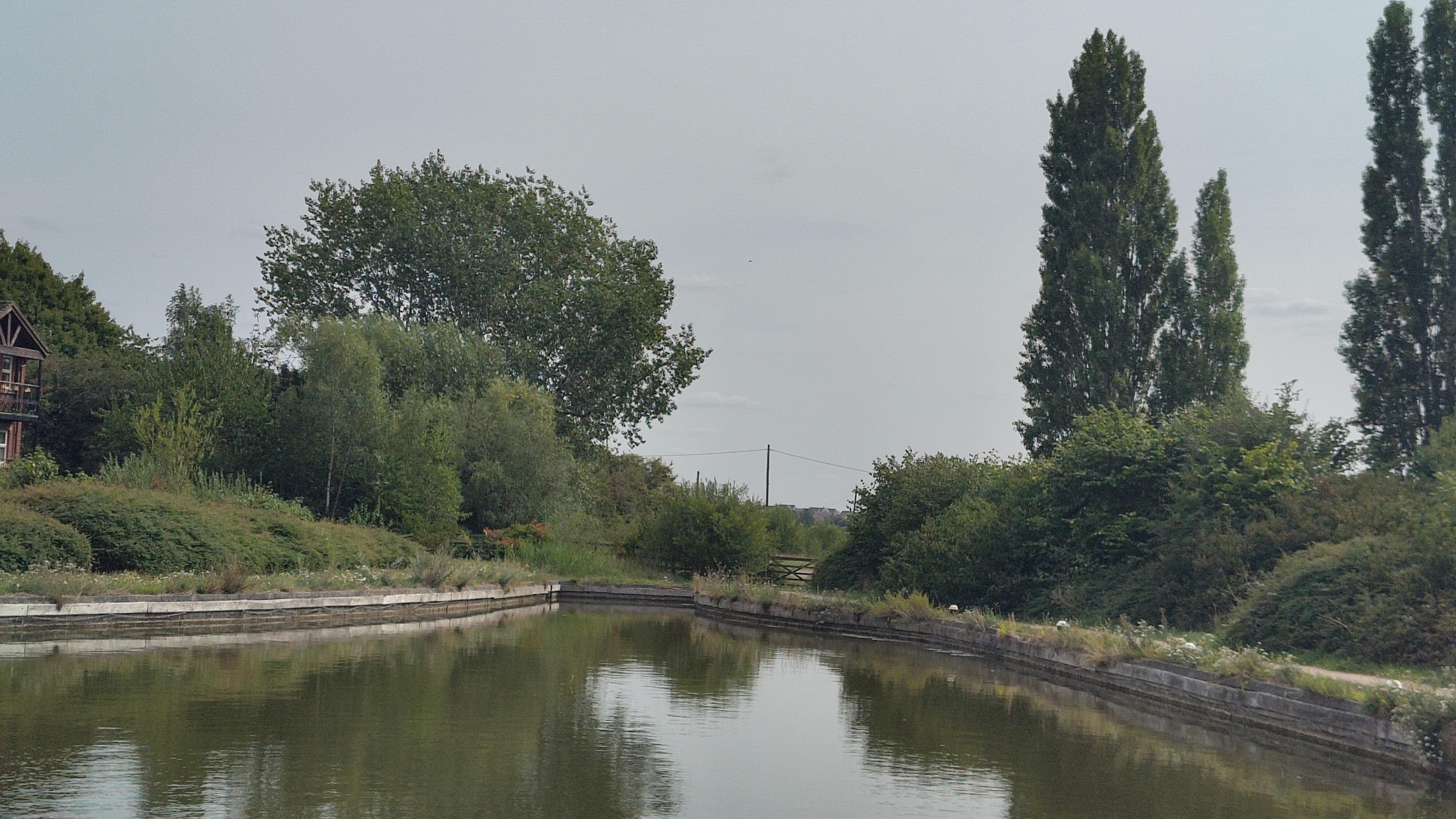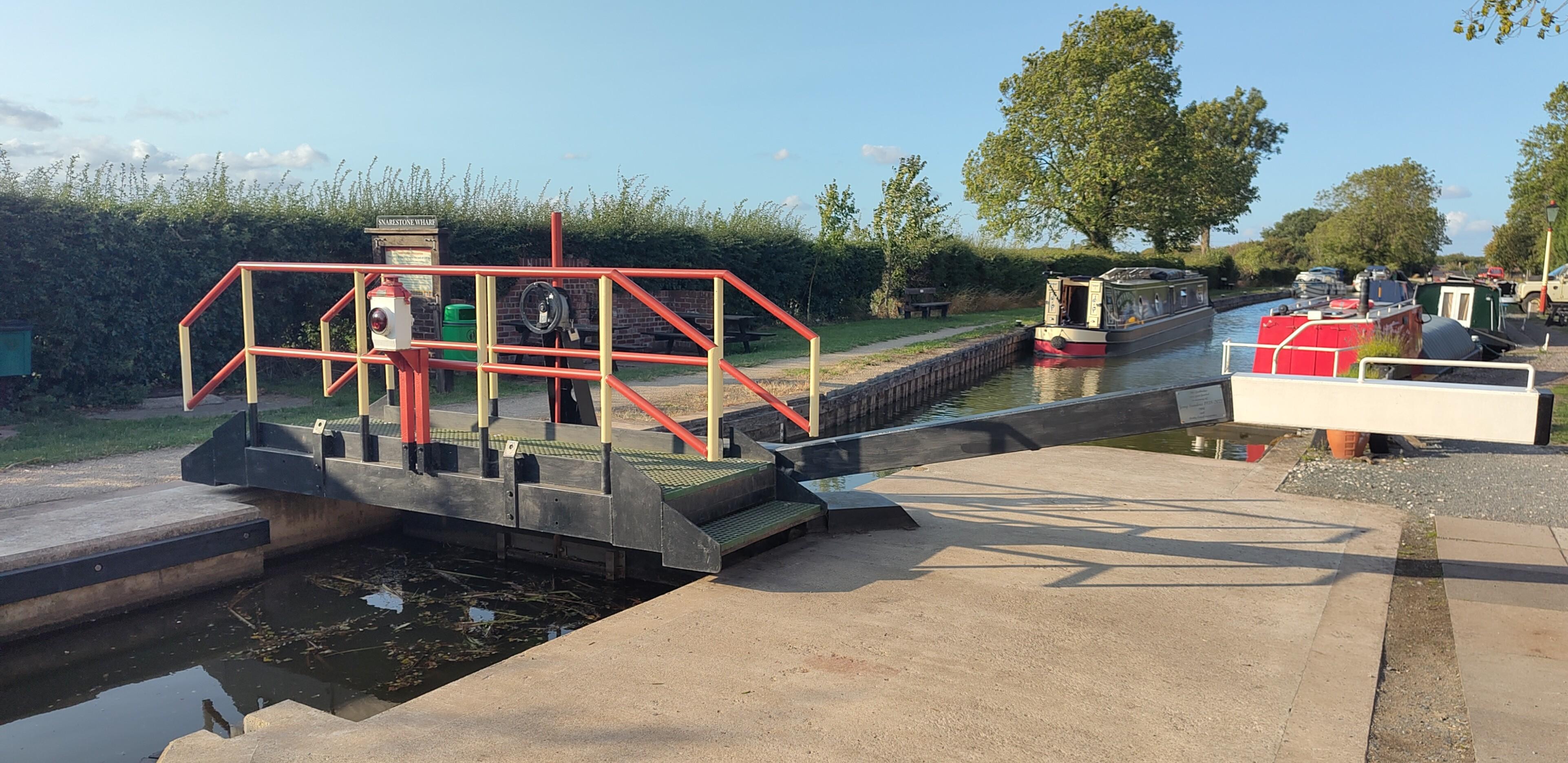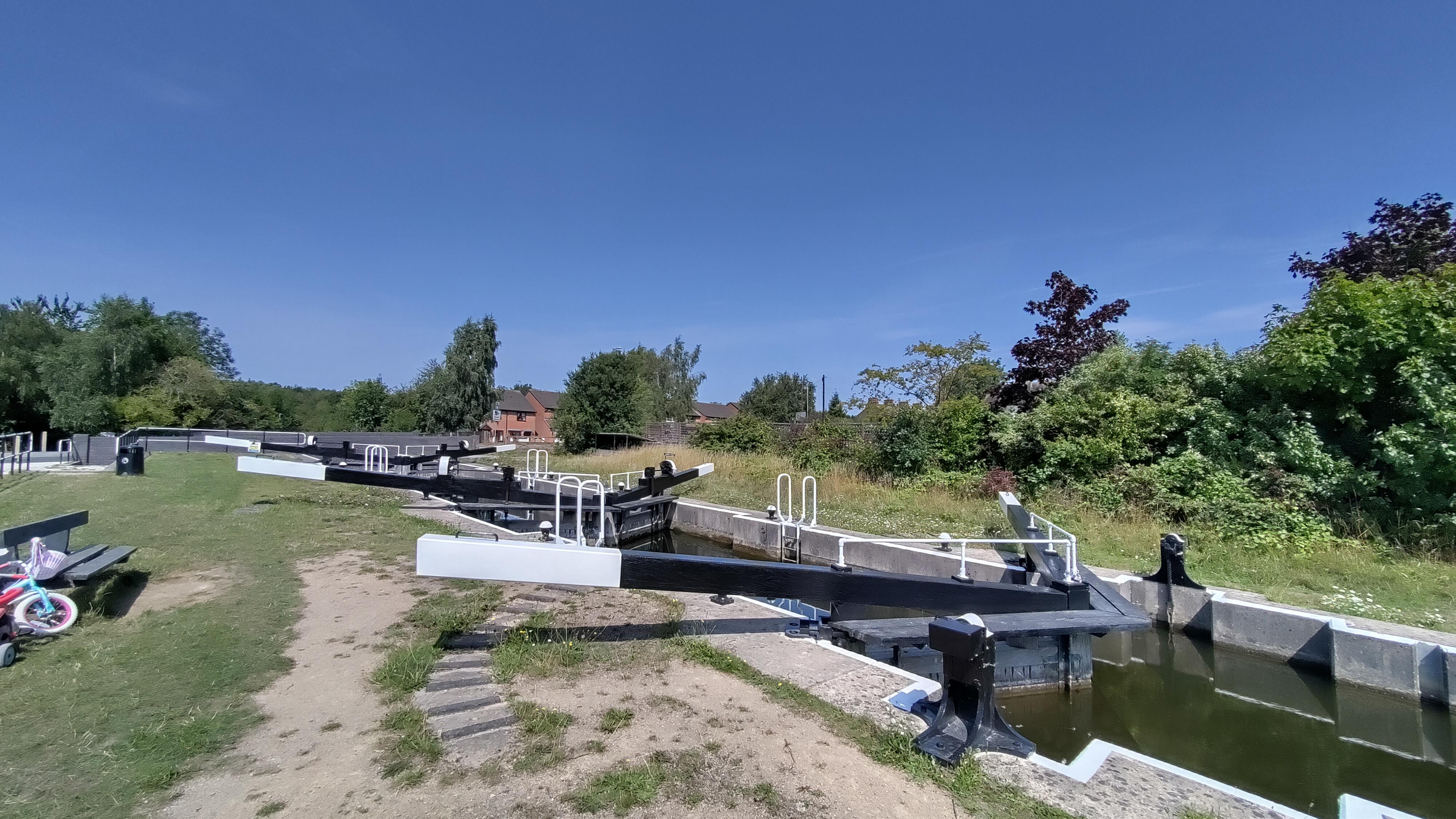 With some of the confusion sorted out, we continued northward along the canal, soon arriving, to the surprise of both of us, at Moira Locks. These double width locks appeared to have three sets of gates. I presume this allows shorter boats to to travel through using less water.