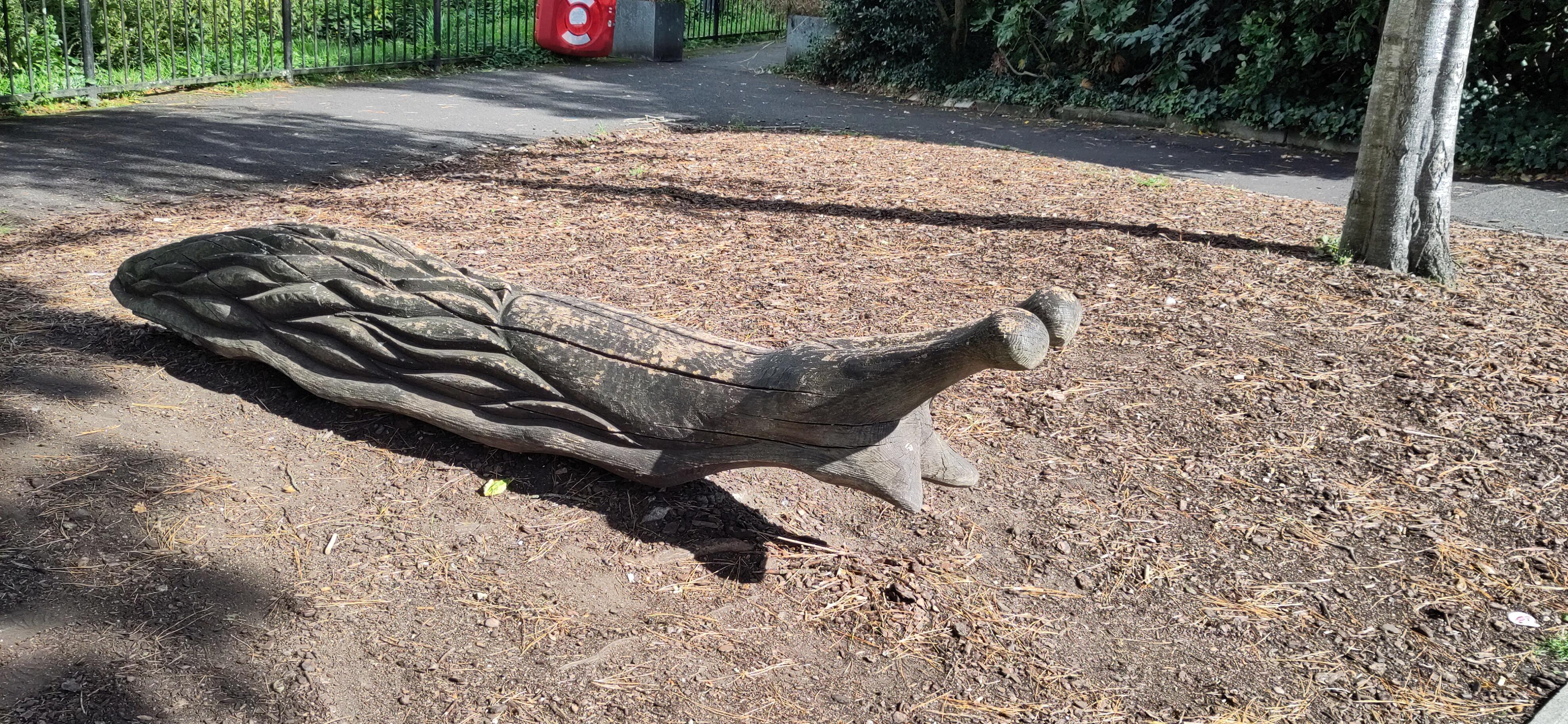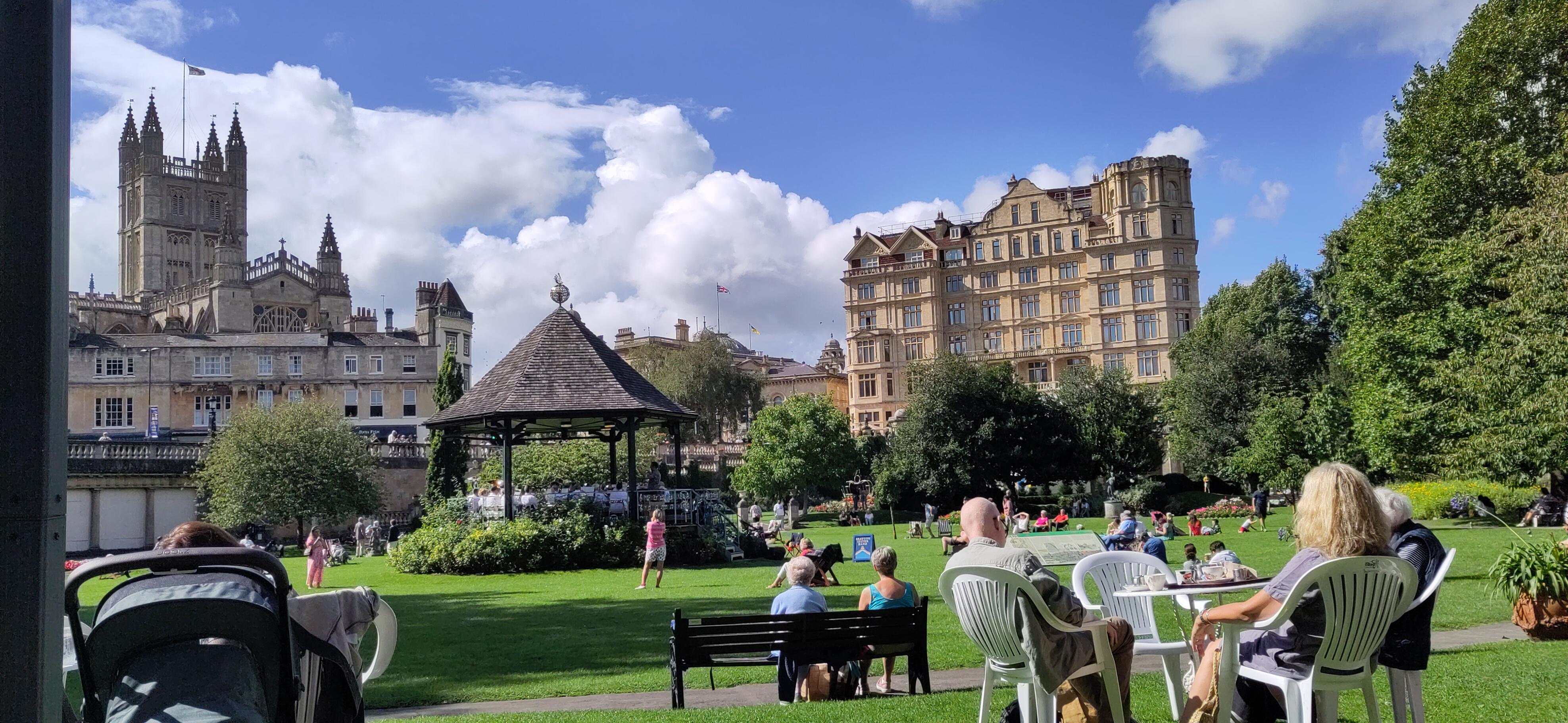We were happy to have come across a surprise event, and wondering where else to go, we decided to go to the parade gardens. There is an entry fee but it is small and half price for over 60s. Having just acquired a senior citizen Railcard I knew I had proof with me, should it be required. While the man at the desk did us the compliment of saying it was hardly believable, he did not ask for photo ID and in stead asked us if we could name a song by Showaddywaddy. Shane got in quick with Three Steps to Heaven and he let us in at the old codger price. We were in for a further treat as there was a band on the band stand and we enjoyed a drink and Shane got the last scone, while enjoying the Bratton Silver Band with a varied range of musical genres, such as La Mer and Lord of All Hopefulness, a piece from the Nutcracker and a tune by Adele, but no Showaddywaddy. There were a few curious statues in the gardens such as Mozart as a child, a swineherd and a slug.