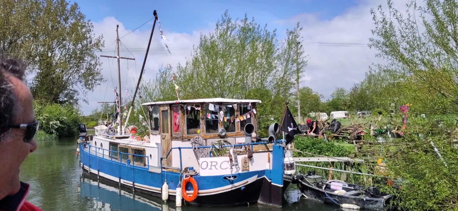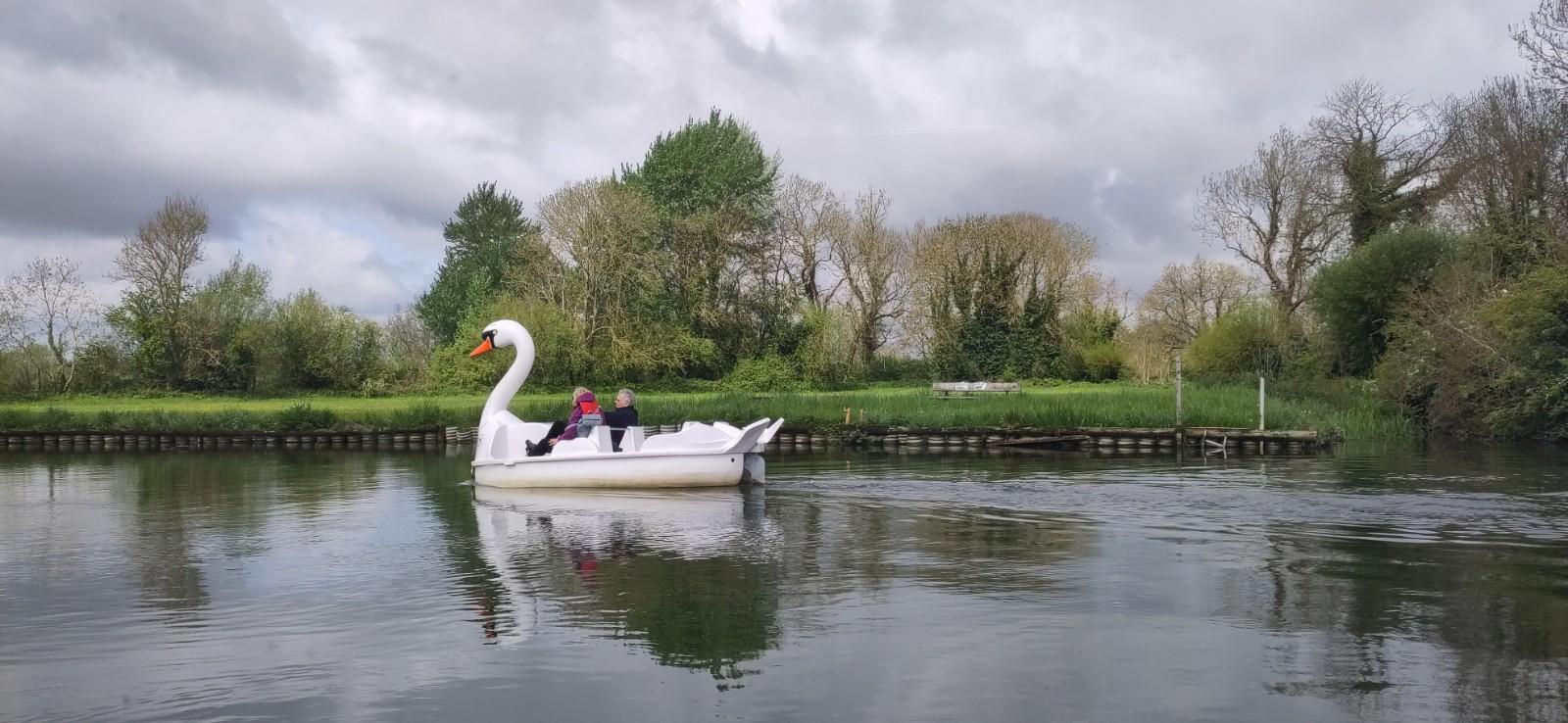 Mostly we were taking it quietly. Shane was using electric and very little power, letting the stream do most of the work, but when cornering, we did need to up the prop speed to steer as the river had its own idea about where it wanted to take us. People were taking advantage of the sunny day and we met several small boats on the twisting river. I was a bit worried about taking the tiller at first, but it soon felt okay, with Shane giving me the benefit of his experience as we went.
