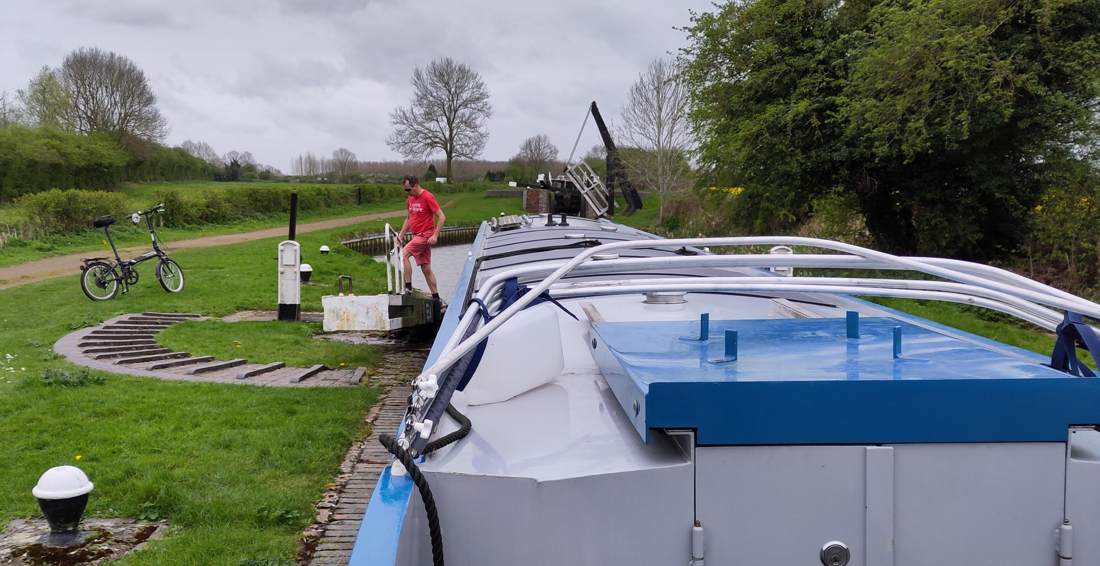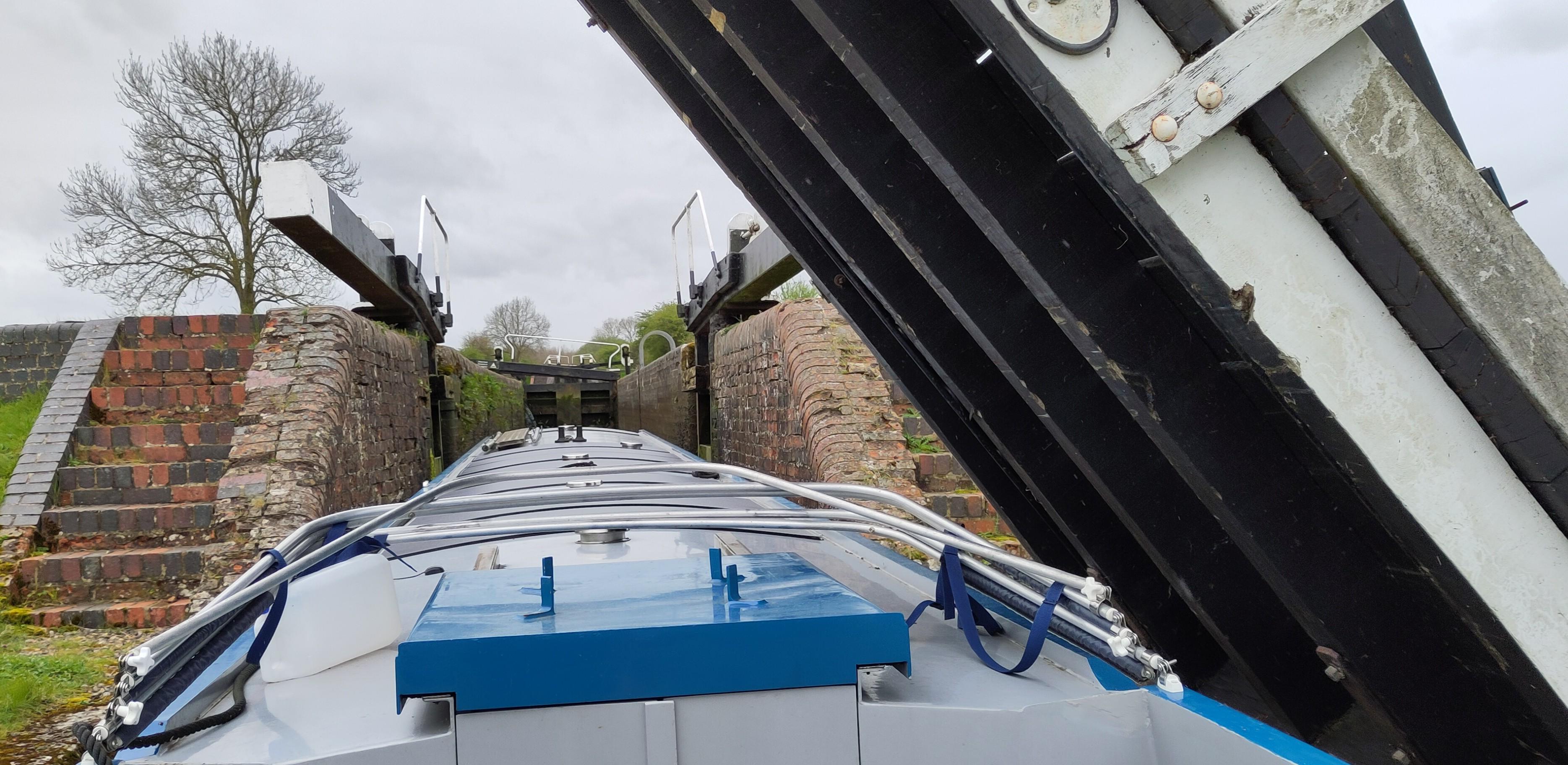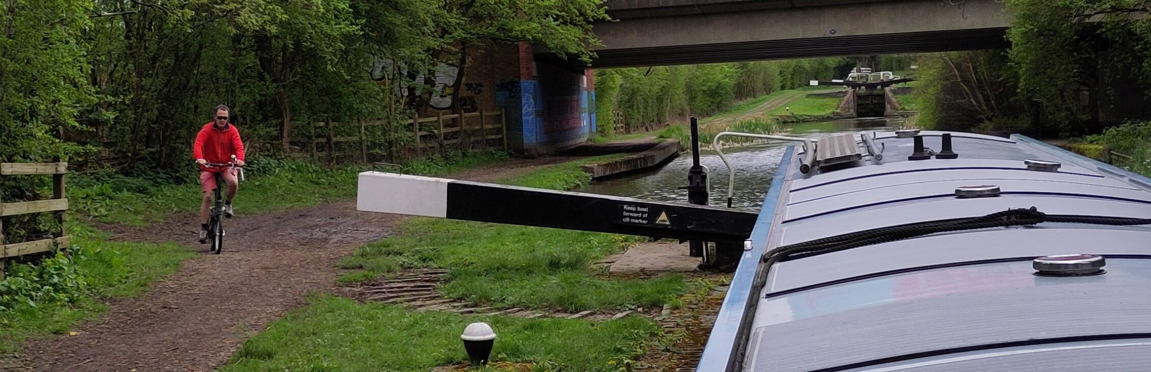 This really helped us do it quickly and I didn’t have much waiting between locks and could just keep going at a reasonable pace. On the way down, I had coasted, dawdled and paused between locks waiting for them to be ready. This was much speedier. It wasn’t long before Shane had got rid of the long sleeved layers. I expected to be standing relatively still, so had a fleece, a cardigan and a long sleeved top on and was a bit chilly. After a bit, some light rain started, earlier than forecasted, so I took the opportunity to get on a few more bits and pieces as I went for my waterproof. At the next lock, we really didn’t look like we were out in the same weather.