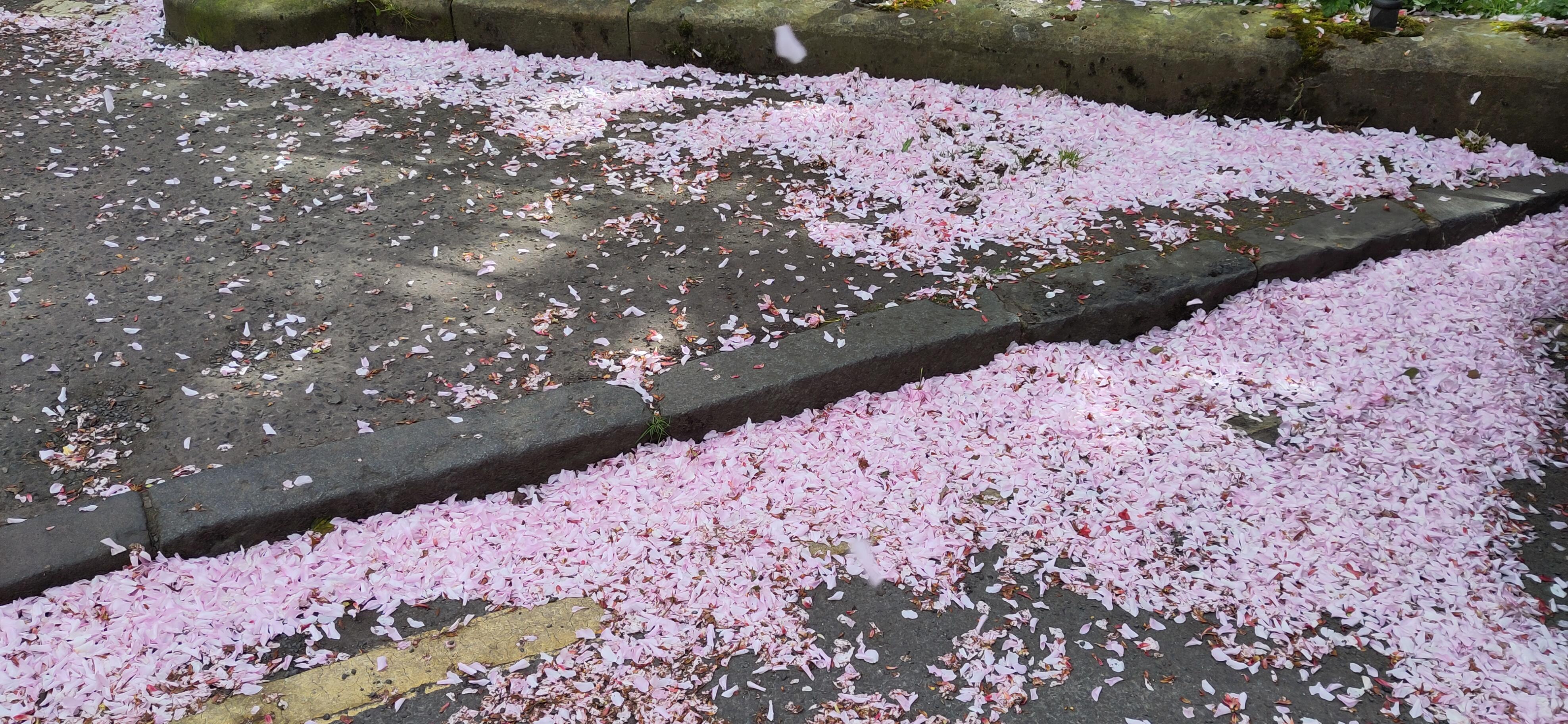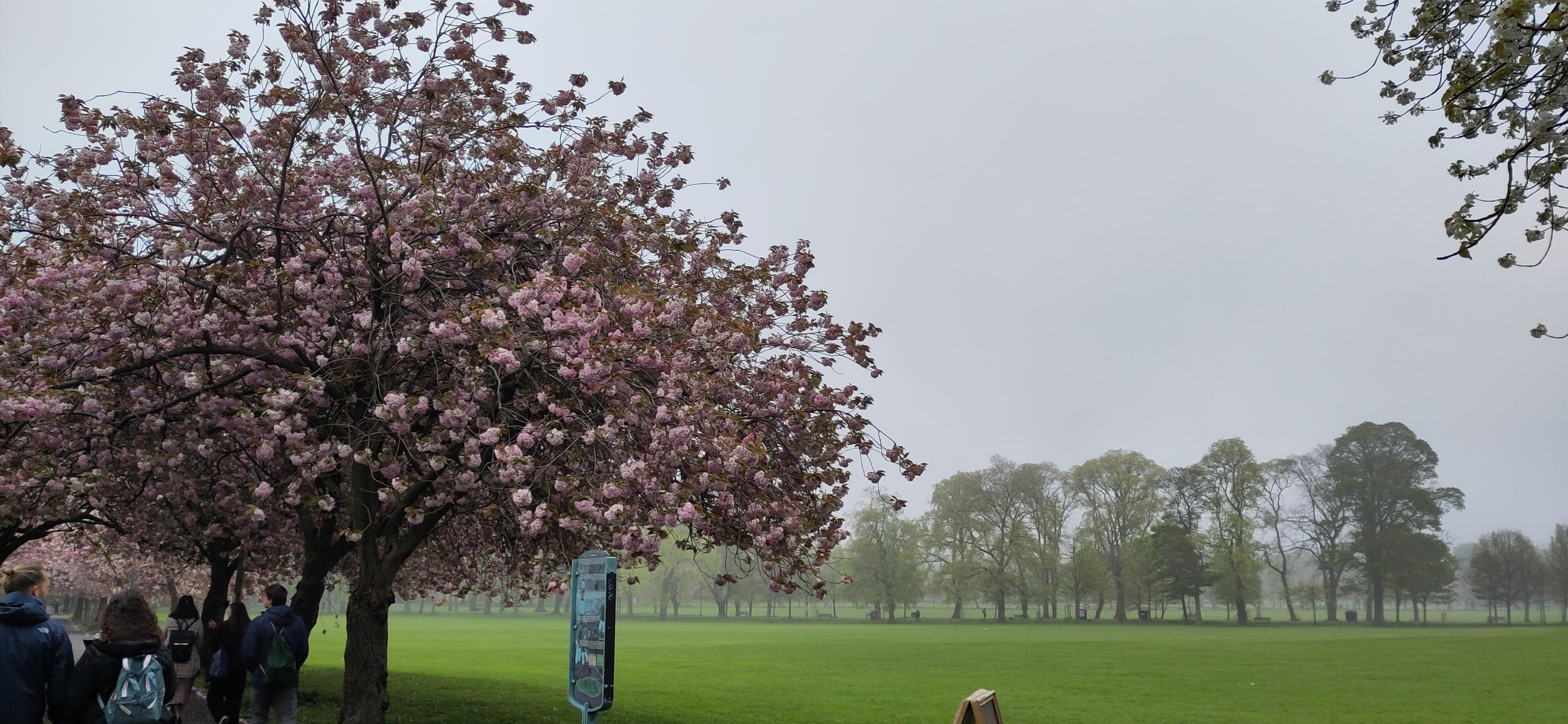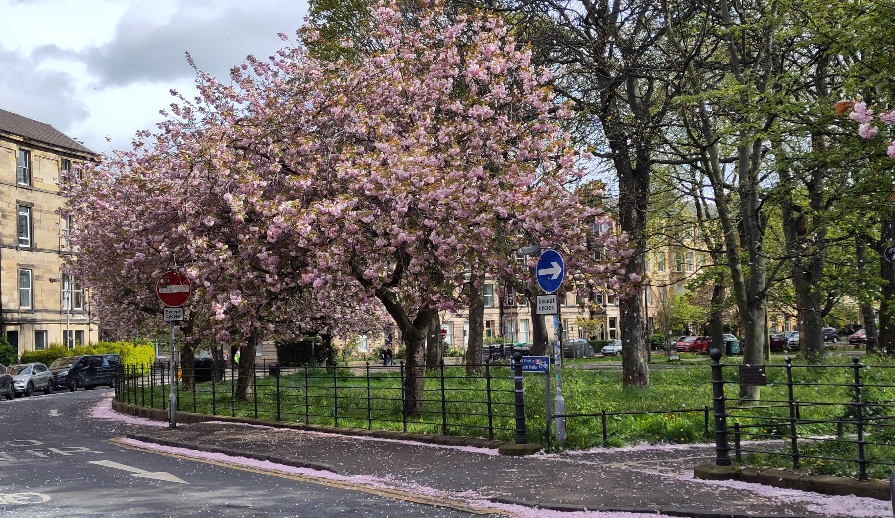 This was not a long winter visit to Edinburgh, more a short Spring fling. On my way to meet my sister for a walk, I noticed swirling pink petals in front of me. They were like snowflakes, except it wasn’t cold. The blossom was already beginning to fall. There are thick bunches so I hope they cling on. This weekend our friends are hosting a cherry blossom party to celebrate being a year in their new Quartermile flat, with a Birdseye view of the Meadows. Unfortunately I have had to decline as we will both be gone by then, but lets hope that not all the blossom has. I am sure they will have fun without us or the cherry blossom. If you zoom in to some of the pictures you might see the petals falling.