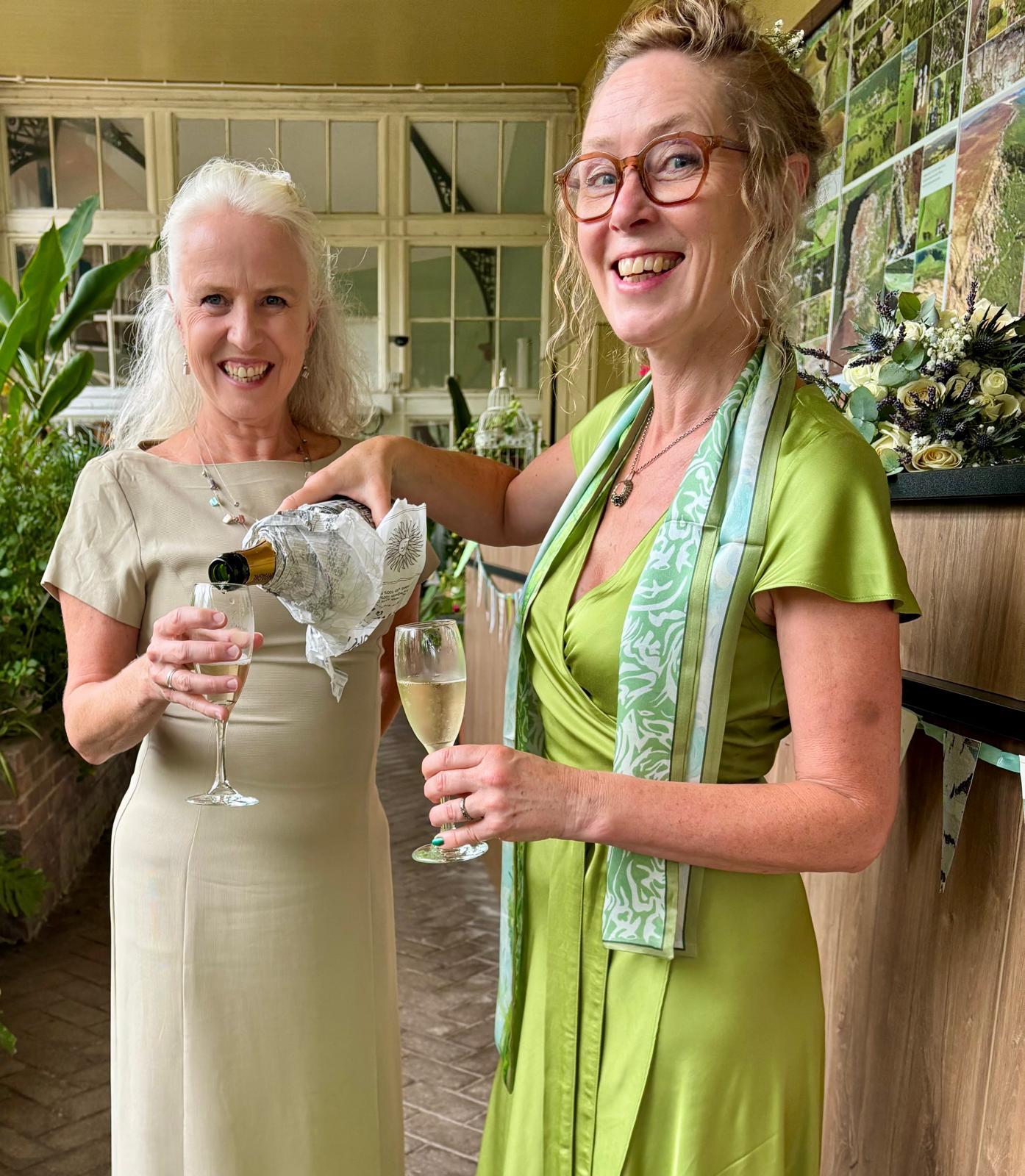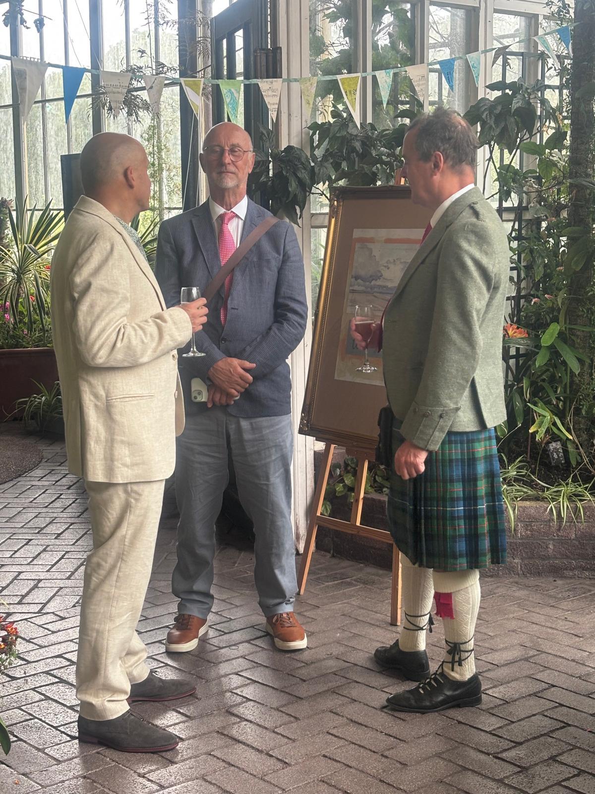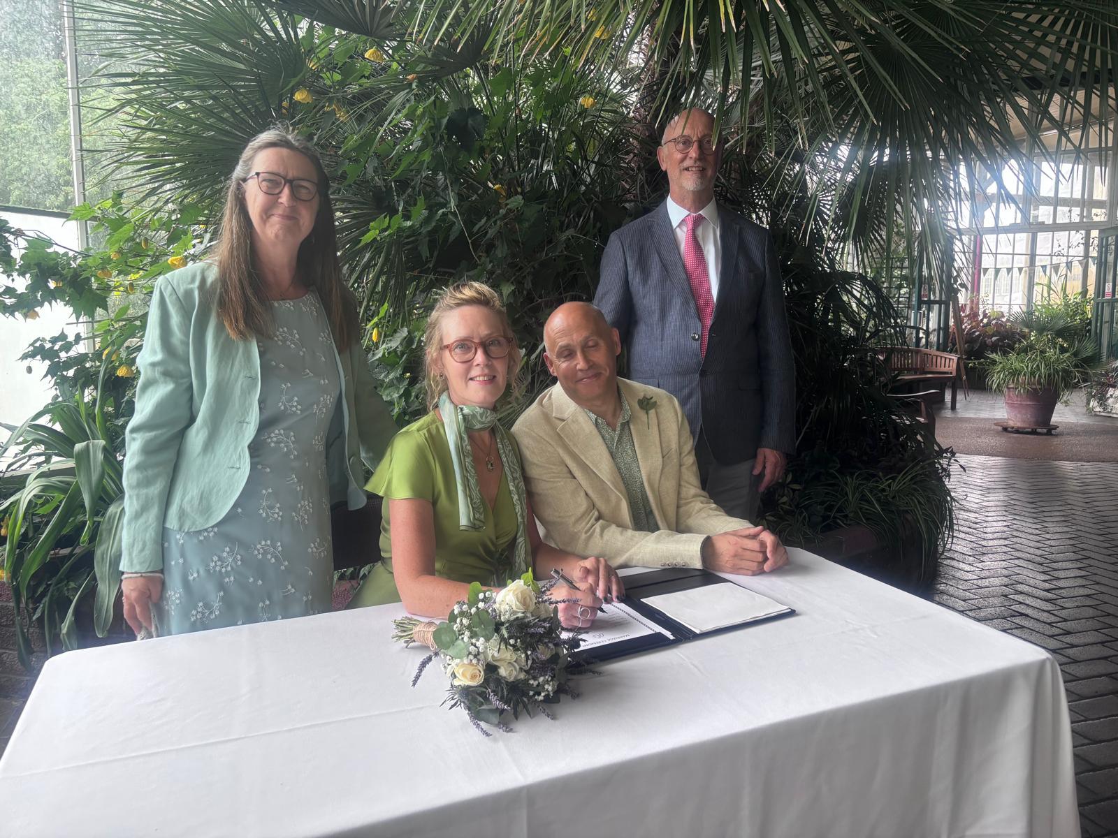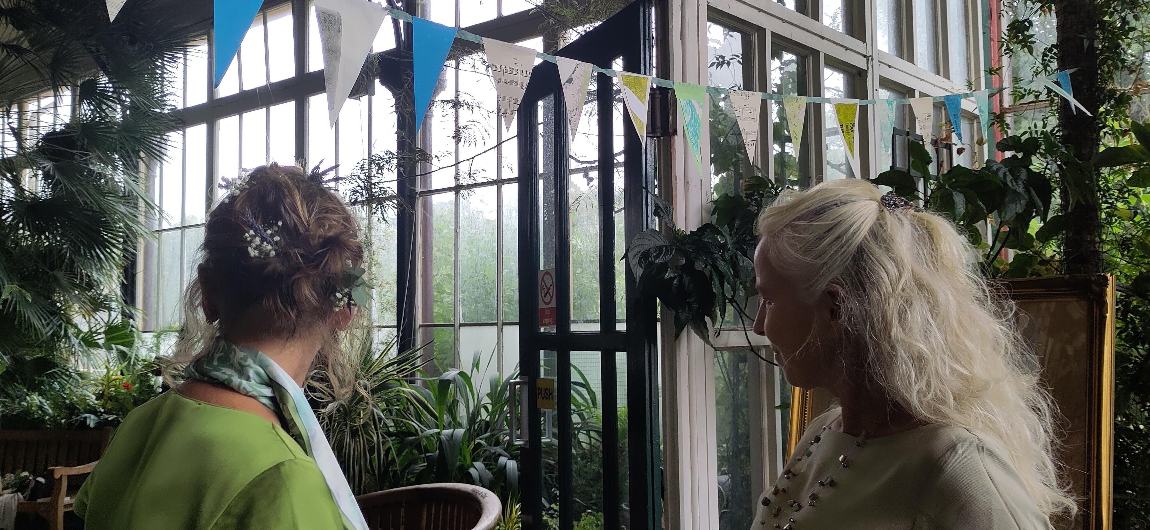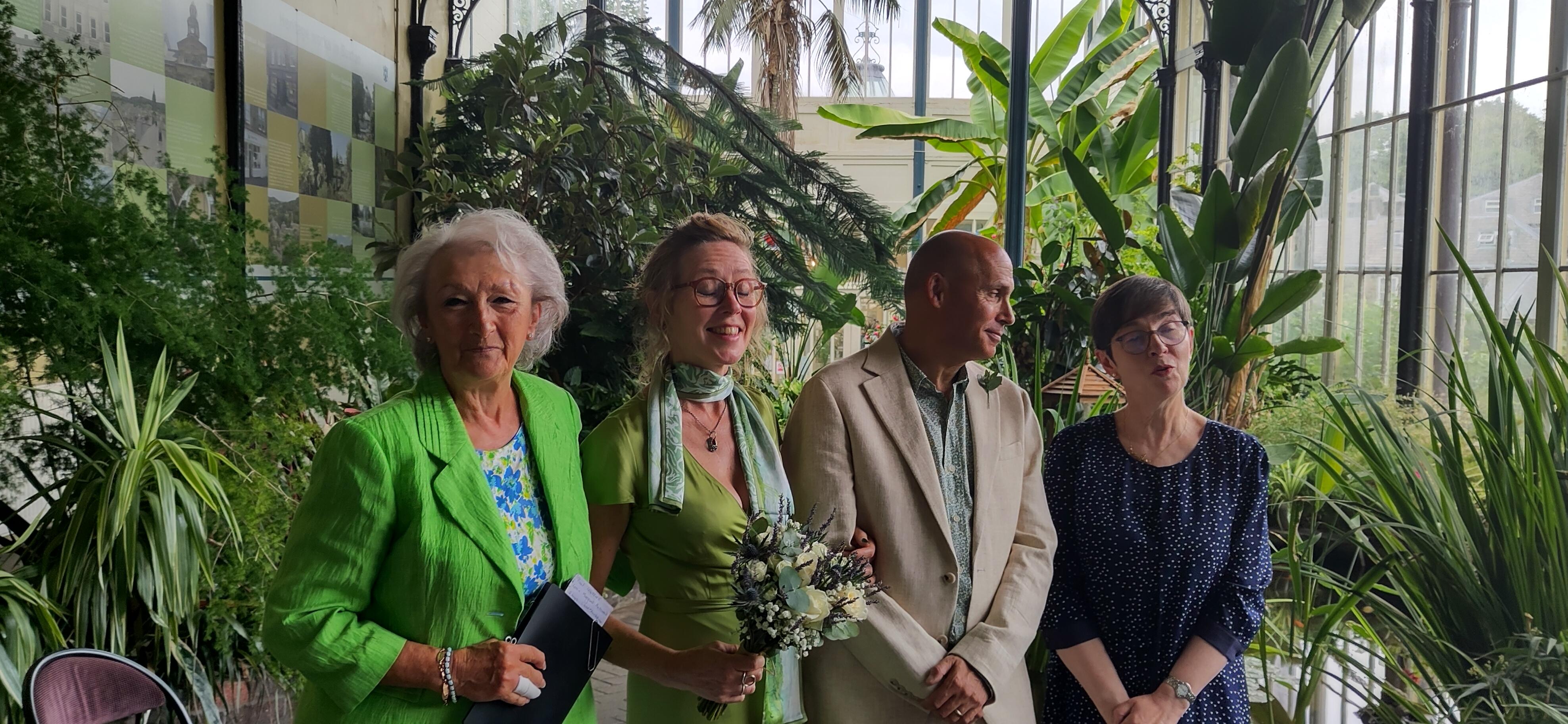 In the morning of the wedding, we missed Richard at breakfast, but he followed us out of the hotel, as we set off a tad early to a cafe for a drink. The chaps had coffee and I had "apple love mint" tea, which I reckoned wouldn't show a stain on my clothes, even if I spilt it, compared to tea and coffee. Then we had the delightful surprise to see the other three in the party approaching. I was very pleased to discover that with no communication about it, we had chosen dresses in a similar colour range. I was glad I hadn't chosen the purple one and stuck with a duck egg shade.