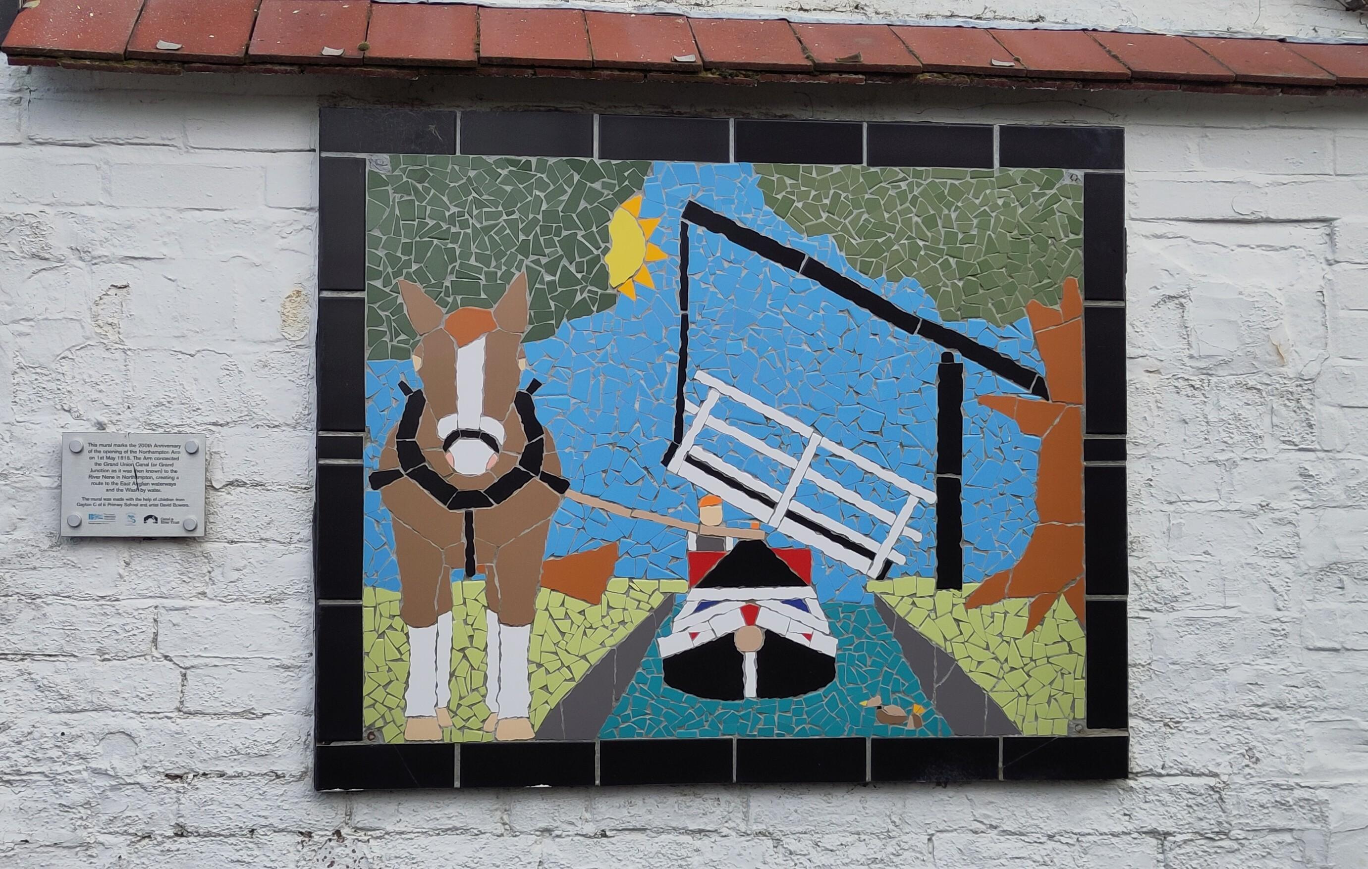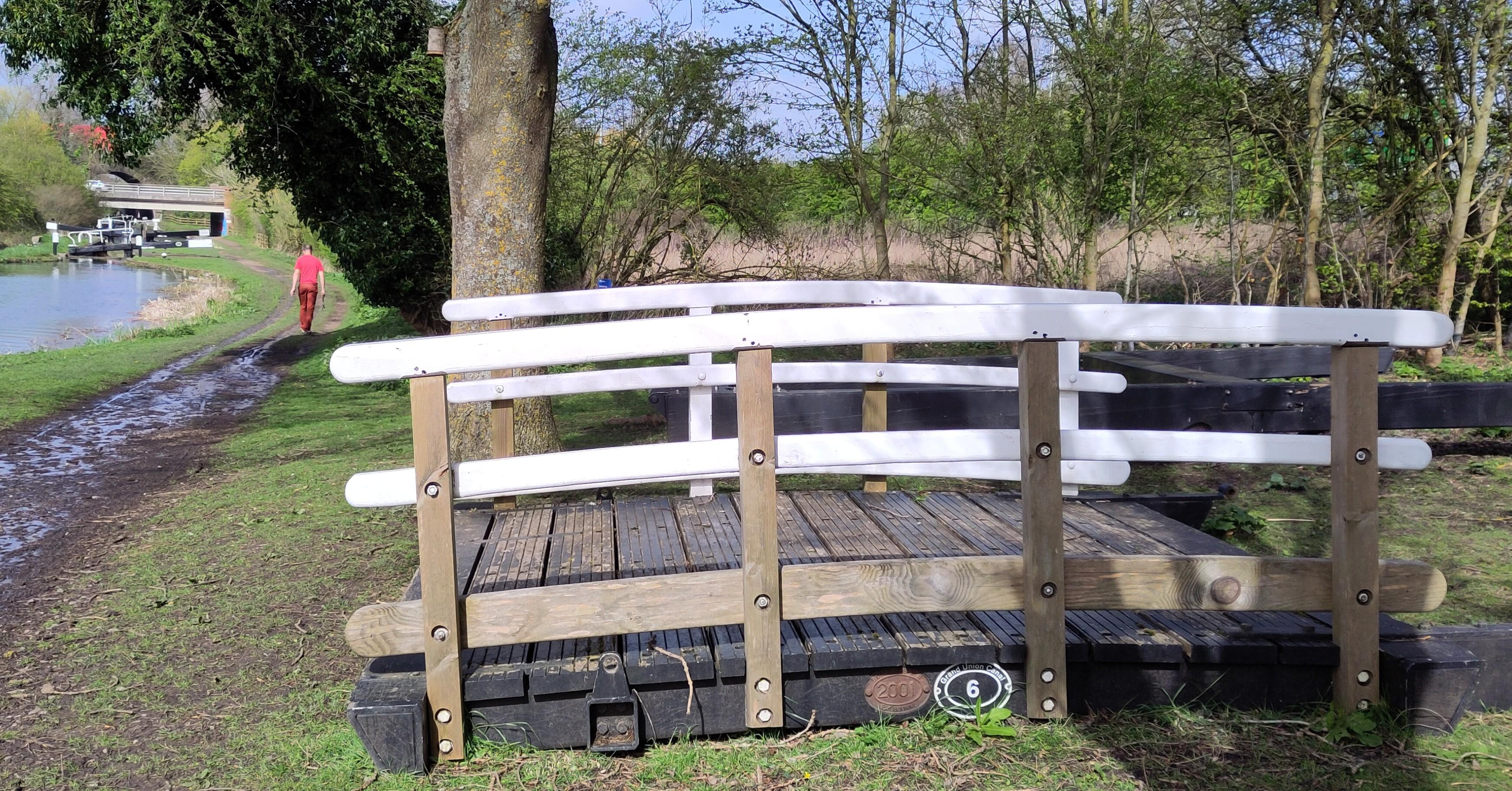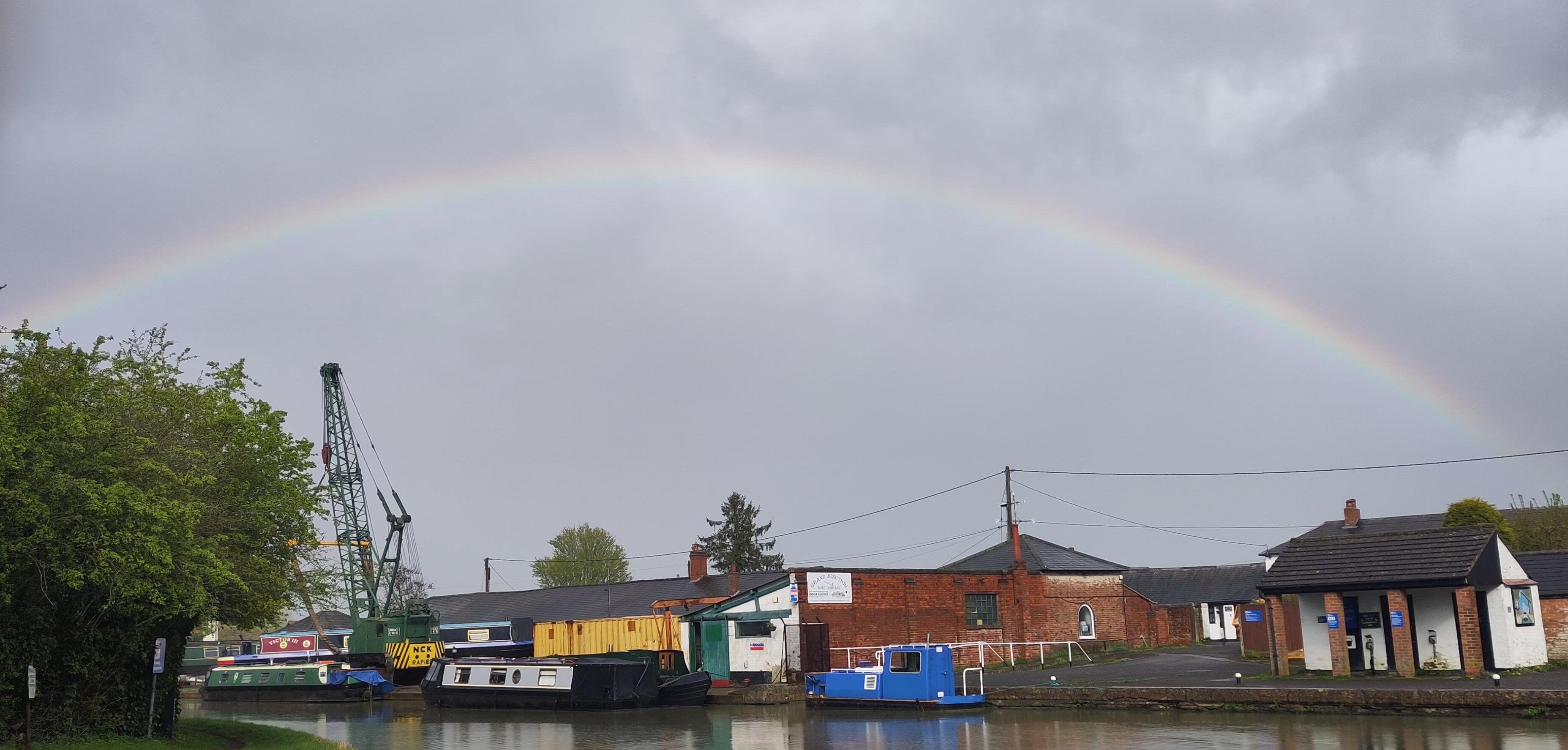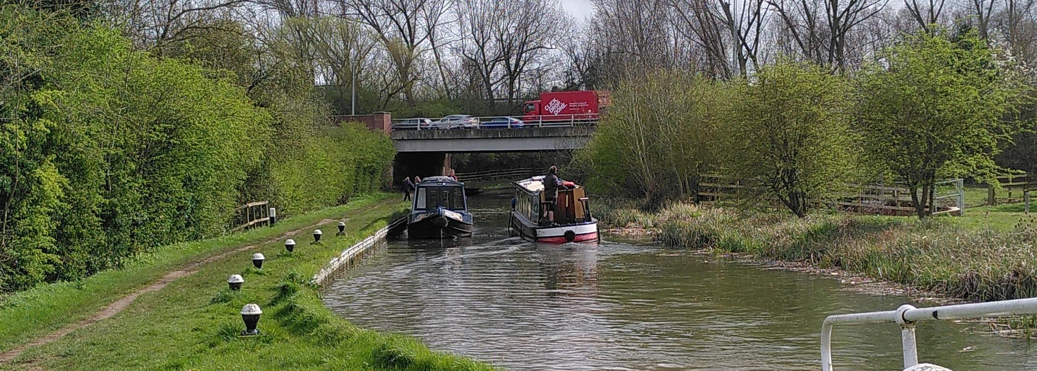 Shane set off and squeezed along past Gayton marina where boats were moored three deep, and we stopped to have lunch before tackling the flight. In deference to my knee, I took the tiller when we got to the lock and Shane took the windlass. At the first lock he got no peace as, first one, then two, excitable collies sniffed his toes and circled him, looking eagerly for snacks, of which he had none. As he went to the next lock a third collie emerged and trotted after him. Nobody was with them but they didn’t stray far from home and ceased following him.