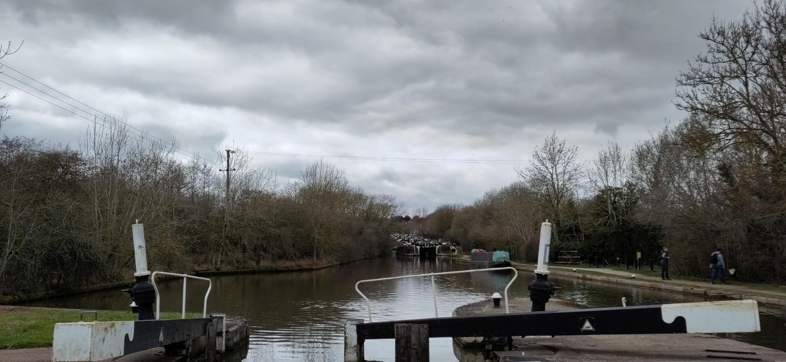 Ahead of us were the famous Hatton locks and a tunnel. We didn’t go for the cafe this time at the top of the locks, considering it may be busy for Mother’s Day and it was a bit early for lunch. We found a large number of people at the top lock magnet fishing and they helped get it ready for us. The boat that had been following us thought they were part of our crew and that they were in luck having so many helpers! I had to let them down by saying there were only two of us, but we were both happy to share the locks and the load. Tanya wasn’t afraid of the hard work of locking and I was happy to avoid it as I had remembered some of the locks being very heavy. They looked well seasoned travellers with a very traditional boat, but in fact were less than half way through a two year project of living on a boat. John preferred me to go in first and we hoped it was easier for me to give him space to come in with the bow thruster. Sometimes it worked like a dream and other times one or other of us would not get the timing as perfect and the dance had a little stepping on toes but we were both apologetic and entirely forgiving of each other when misjudgements occurred. We made good time. At the stop for lunch, I looked and saw I had a happy mother’s Day message from Bryn and Tanya remarked that she had 50% too. (I had 100% later on!)