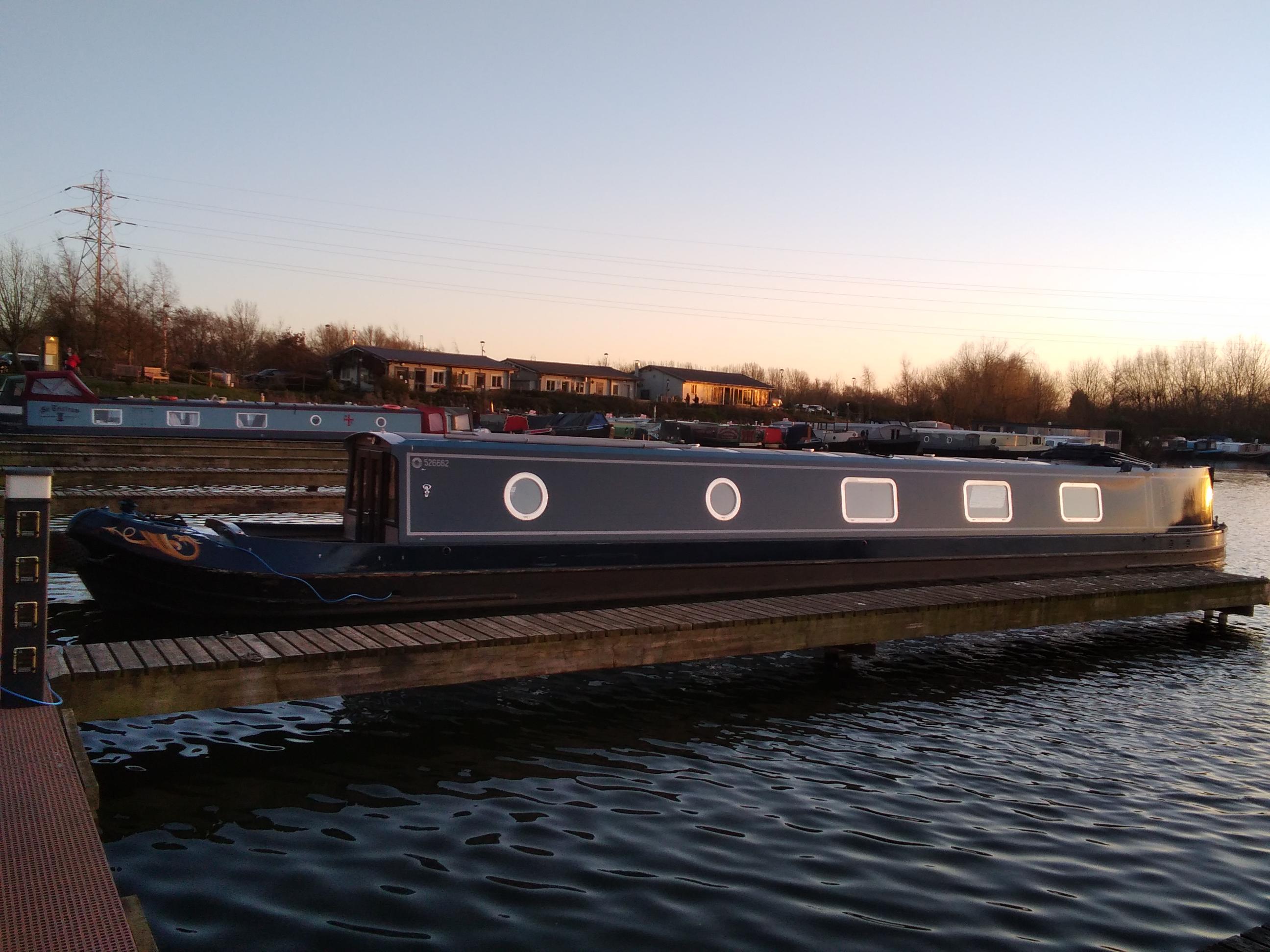 He had the bit between his teeth and set about designing shelves for the other side of the kitchen, which has to be a different shape to go above the microwave. He also wanted to incorporate space for the fire blanket in his design. He went outside in the sunshine to cut the space for it using an electric plunge saw and came back in telling me not to worry about the burning smell, it was just that the saw had scorched the wood! I am glad it was done outside, might have set off the fire alarm. We have got both in situ and arranged a few items that are cluttering the work surface, on them. My ornamental gold finch, Bryn and Nye, has a better space too. The shelves still need edging to prevent falls when the boat rocks or bumps and has still to be painted, but we are pleased with them so far.