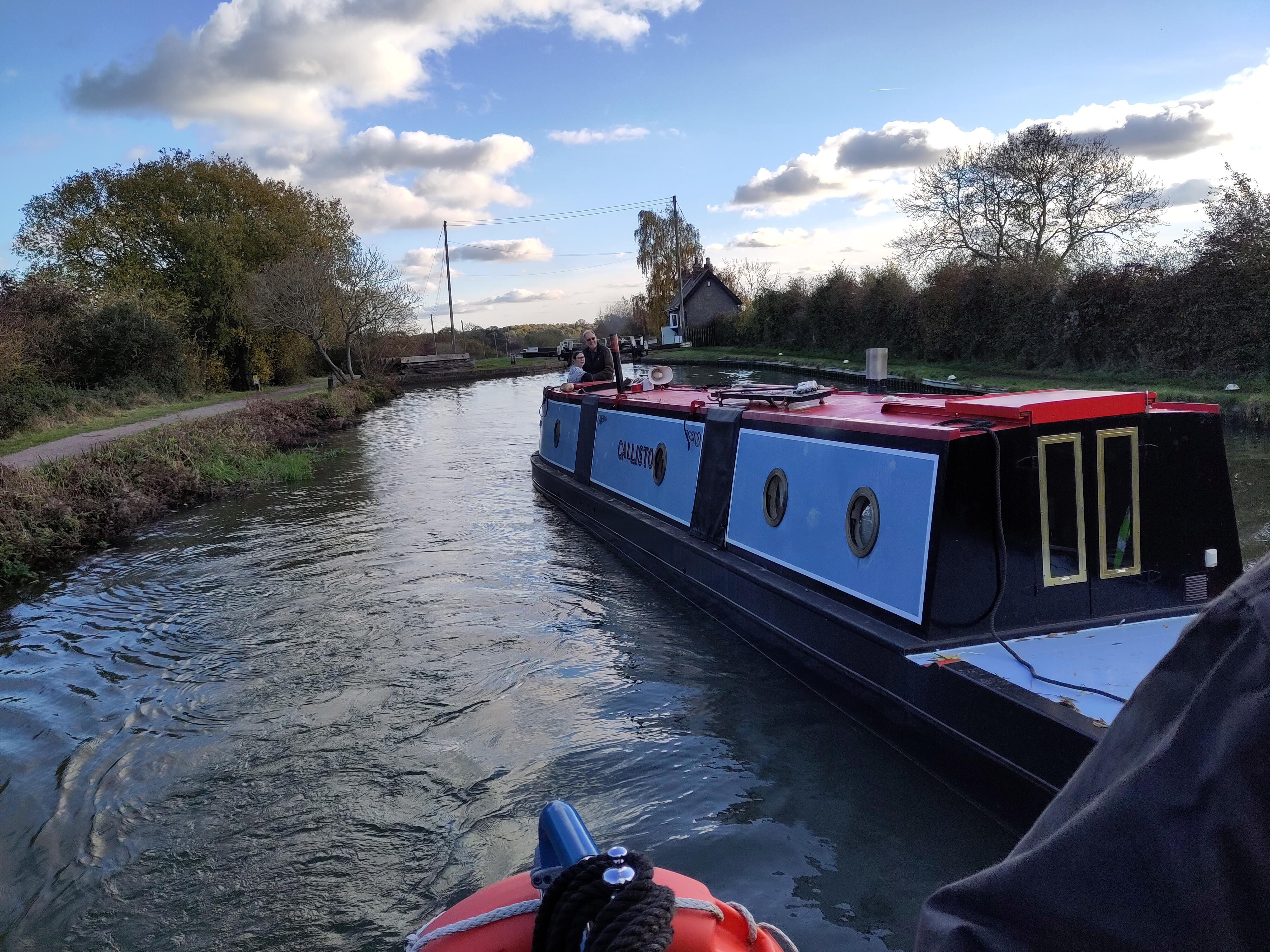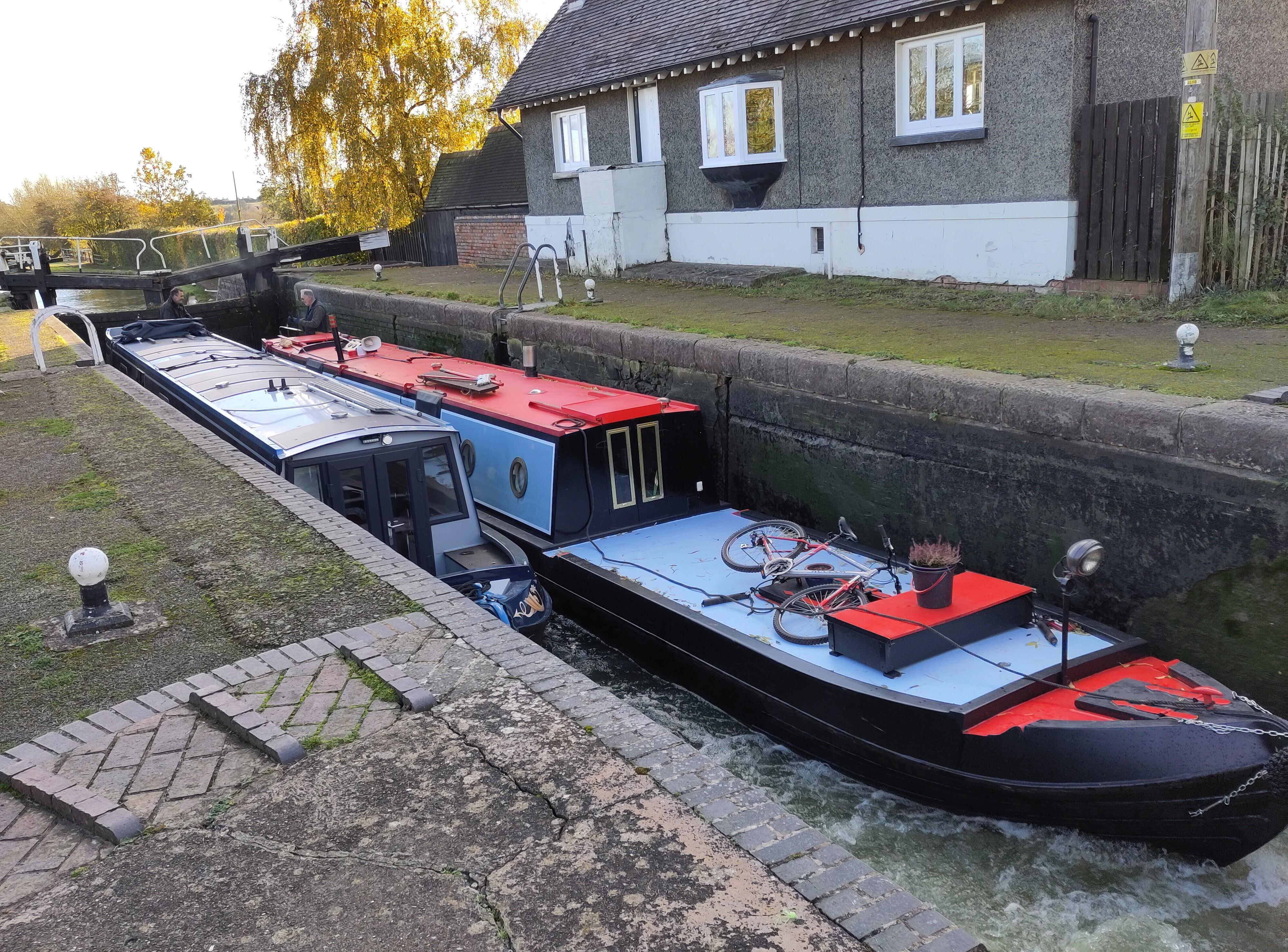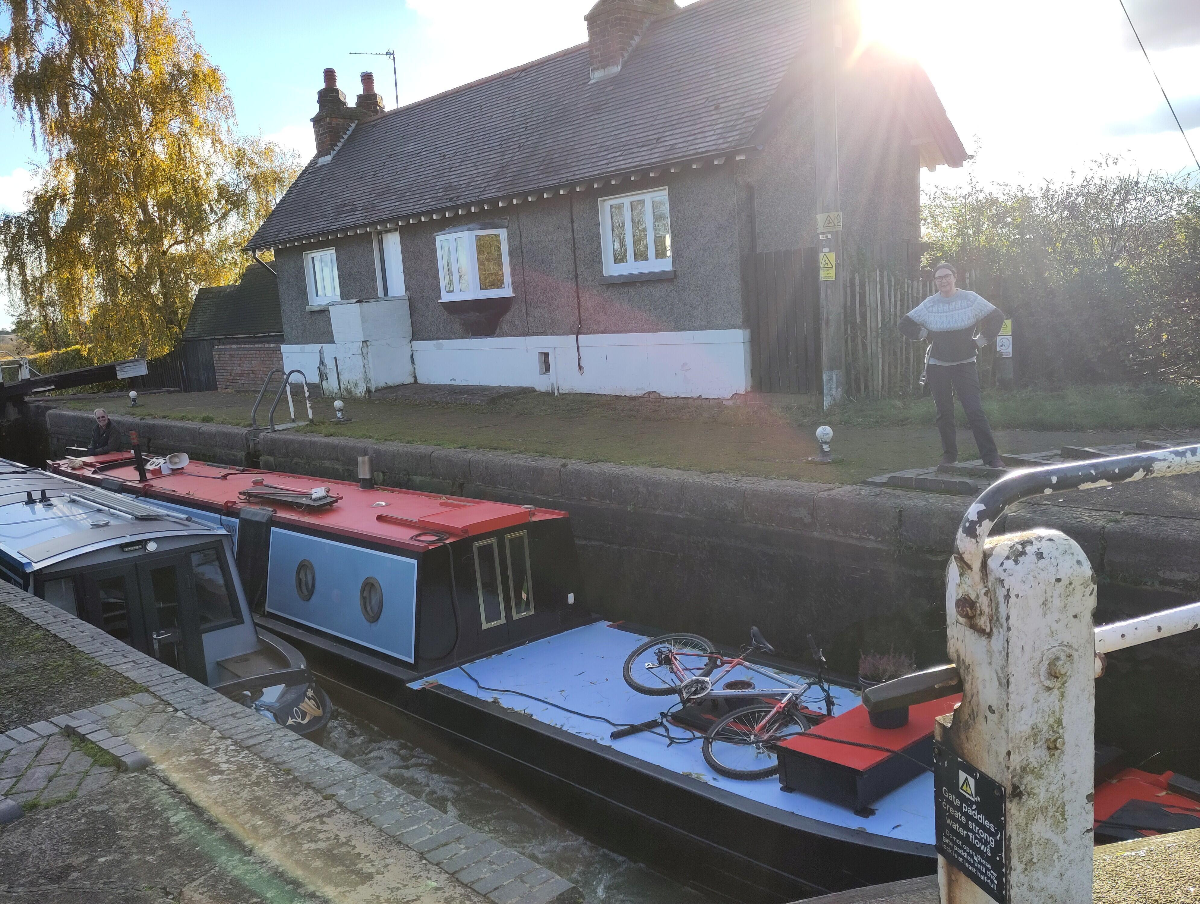 At the next lock I thought I would go ahead and found when I got there that the side I was on had railing and no access below the bridge. I heard Shane shout and wave but couldn’t tell if he was calling me back or asking Bryn to wind a paddle. I investigated different access routes and eventually ran well ahead, crossed a road and got back to the lock and got the paddles up before Bryn got there, only very slightly ahead this time. Bryn informed me that there was a sign saying there was no access, so I seemed to have done the impossible! We got the next two ready in time for the boats arriving.