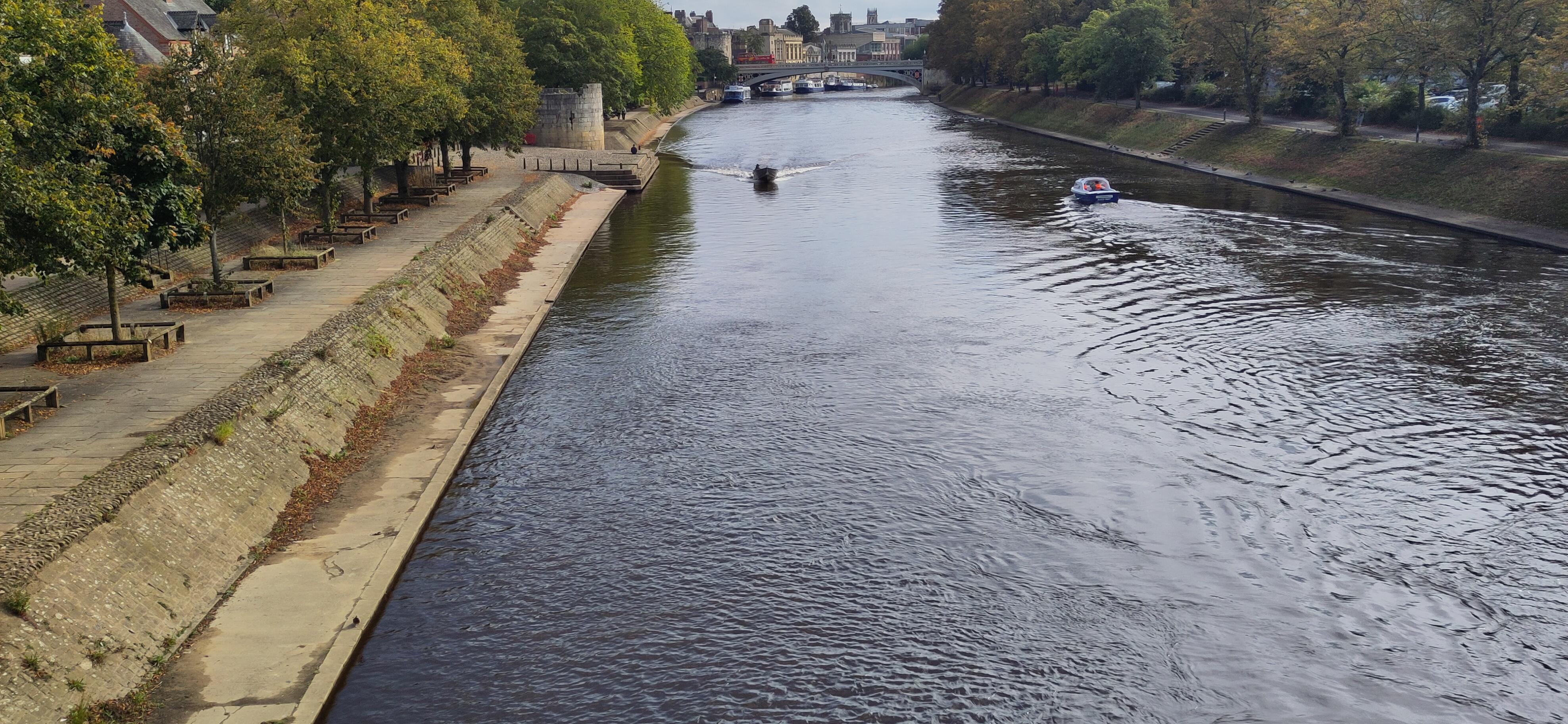 We were travelling to Edinburgh, from Selby, via York. We were both highly relieved that the boat was off the river as recent heavy rain was making the water rise rapidly. We had an hour in York and we went to buy lunch and also checked the water levels on the way. When we had been moored there before it was an awkward step down on to the boat. Now looking over from the bridge to the station at the same mooring area, it was clearly an awkward step up and the water was almost level with the riverside mooring bollards. On the other side the steps down to the water for canoeists were all submerged. It looked like it might be up a metre, and we knew recent rain would mean more was to come. The crowded conditions of a few days ago had changed to empty moorings. It wasn’t the weekend, but also possibly some people had moved to safer moorings. We were certainly glad to have moved on to the canal and off the river Ouse, where flood safe moorings seemed few and far between.