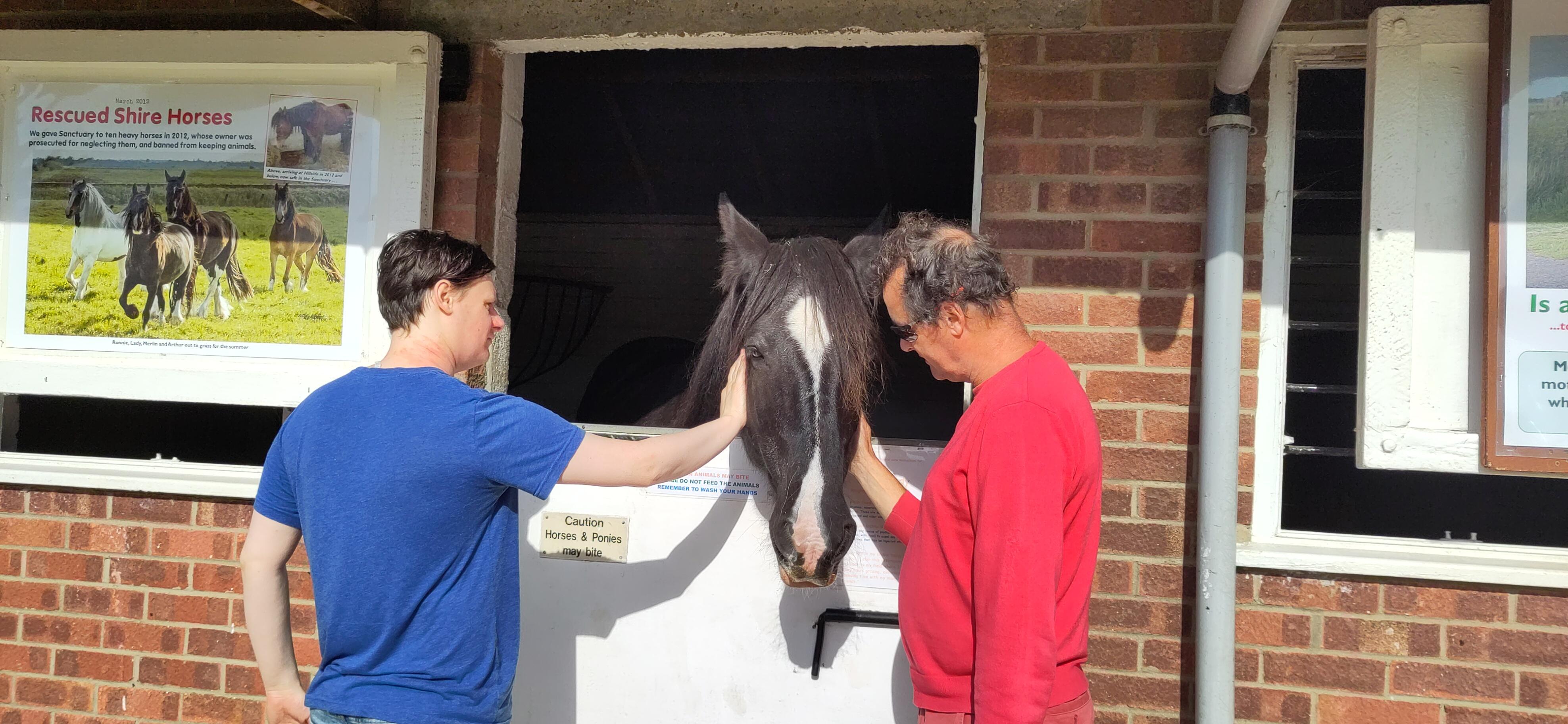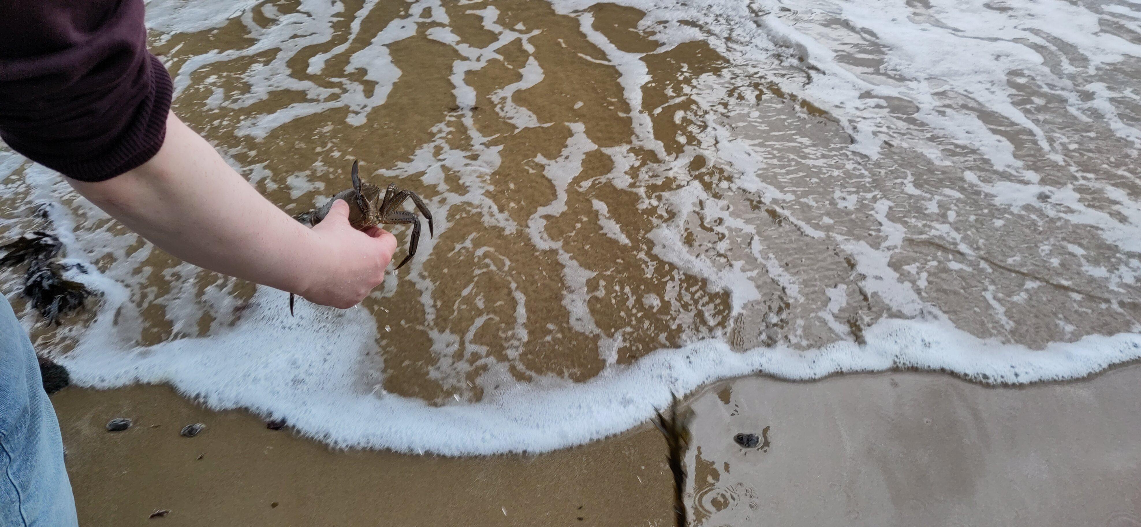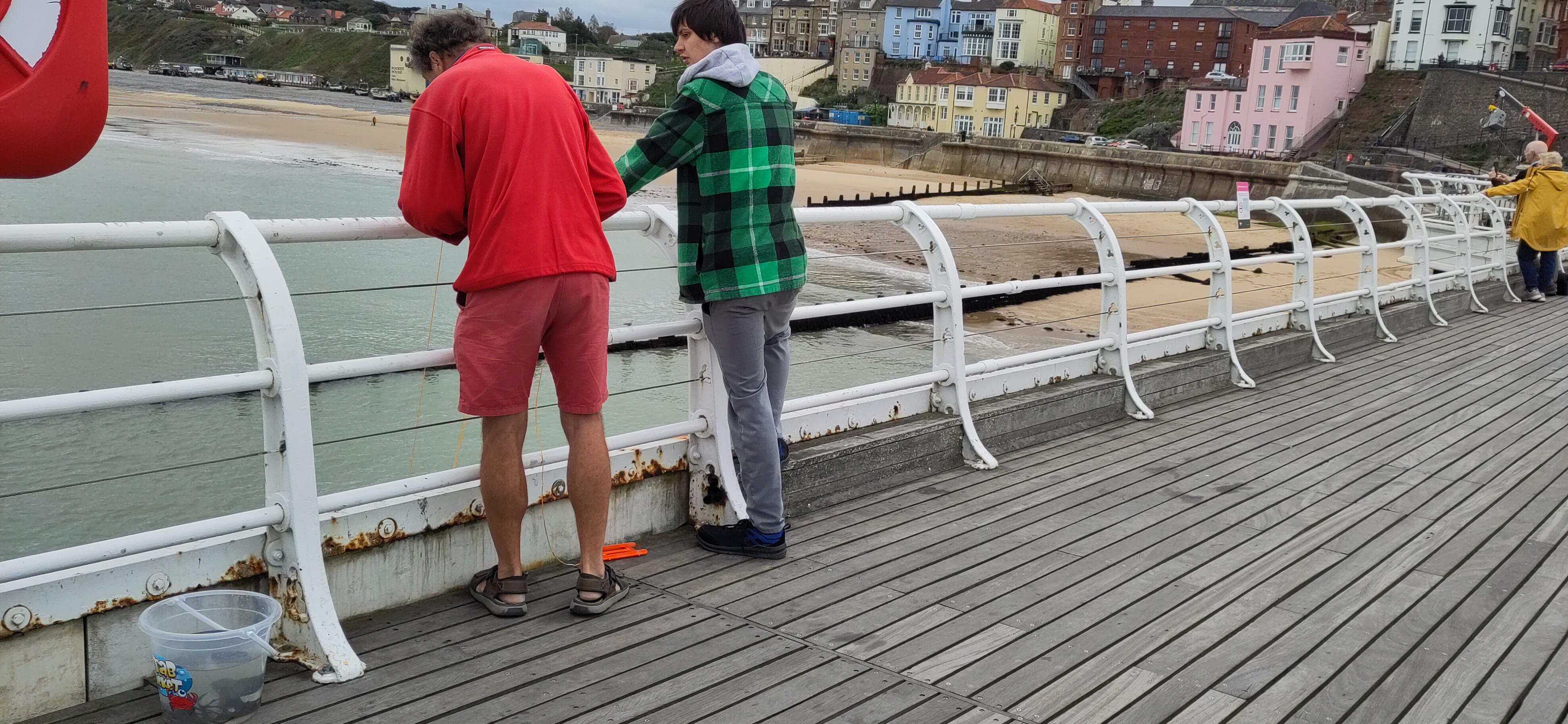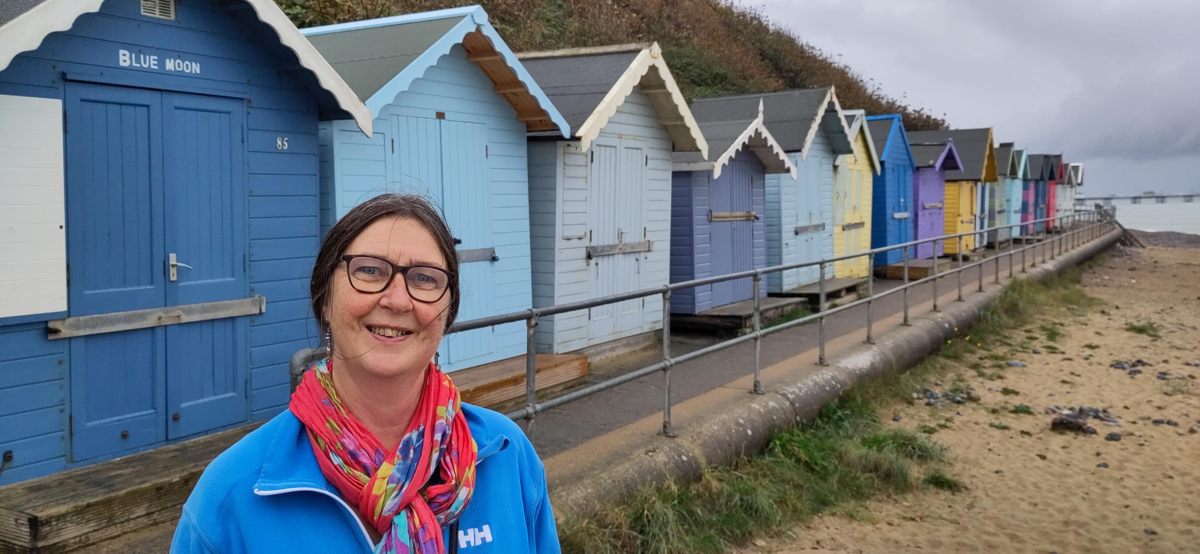 The rain had abated when we left the church, so to complete the Cromer experience I fancied a walk along the beach to get closer to the beach huts. Shane, David and Nye had headed back but Bryn and I enjoyed the multicoloured flint shingle, finding many “witch stones” with holes worn through the centre, and took one back to Nye. The beach huts were even more multicoloured. At the end was a Banksy of crabs without a home, feeling slightly guilty that locals are priced out of housing by the holiday accommodation market.