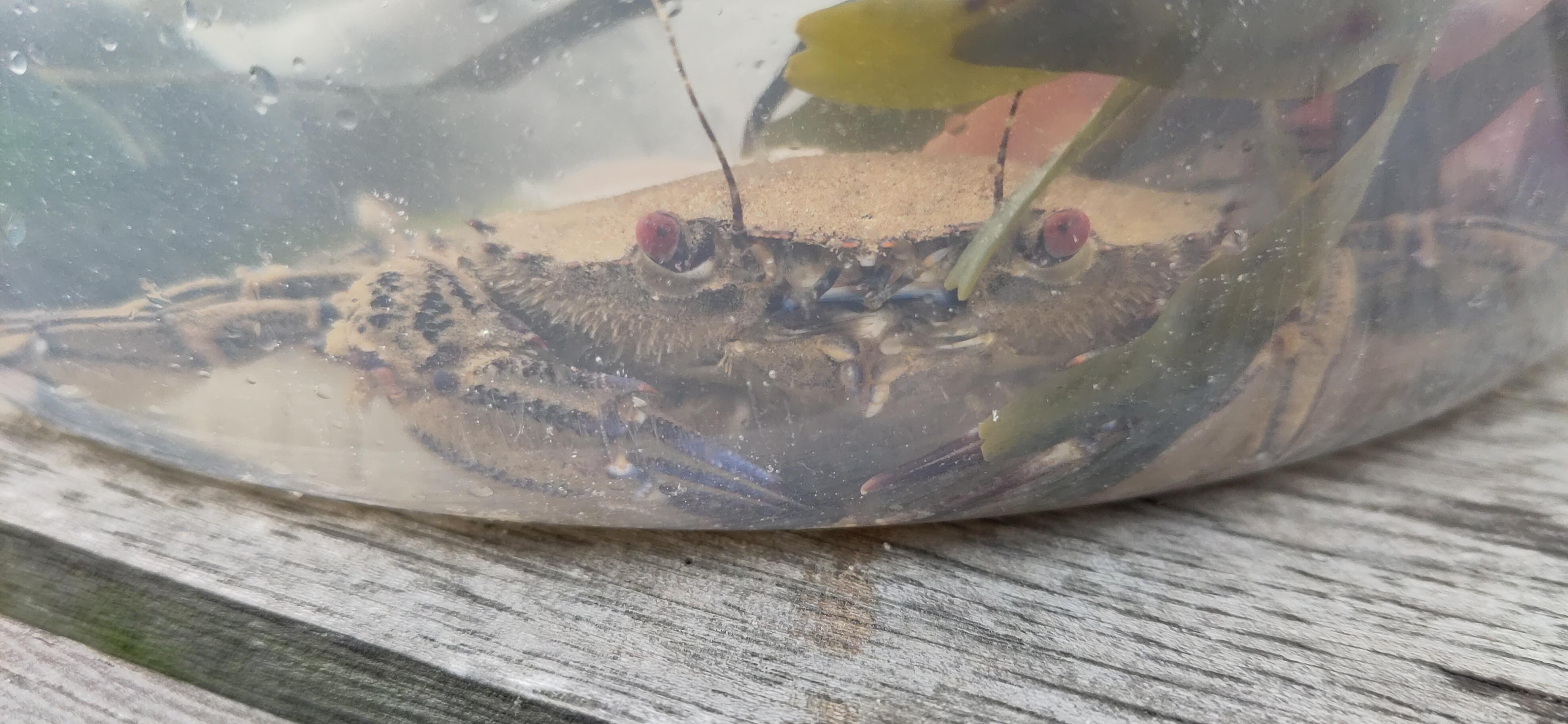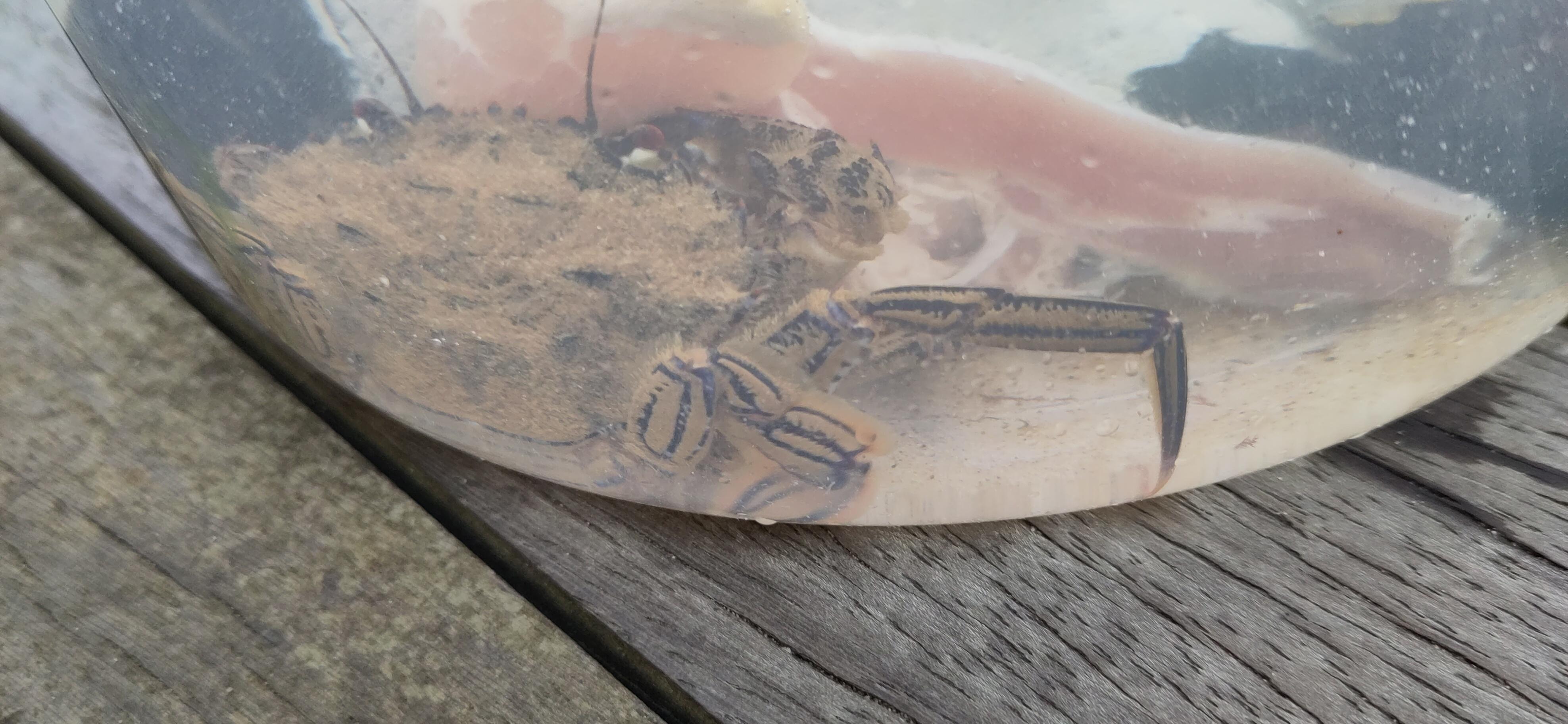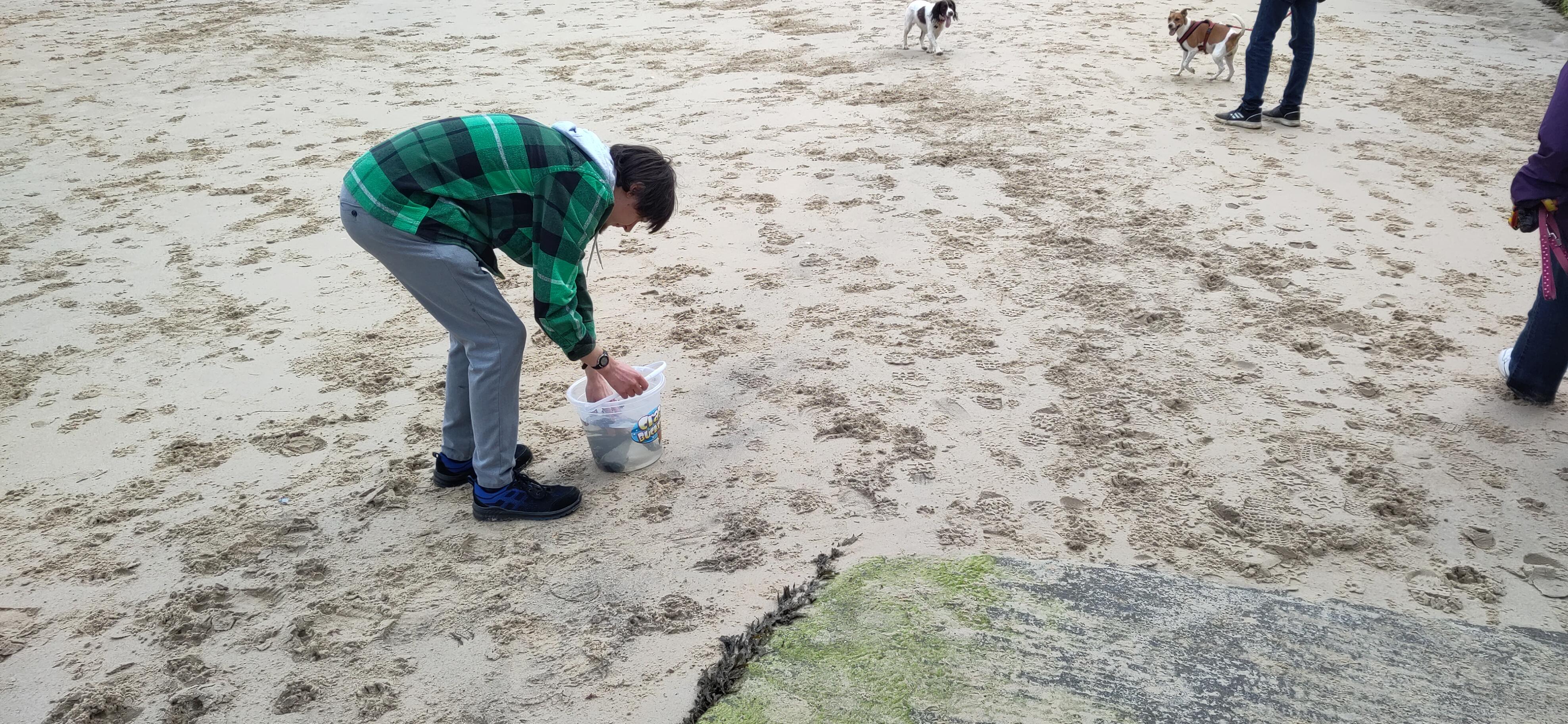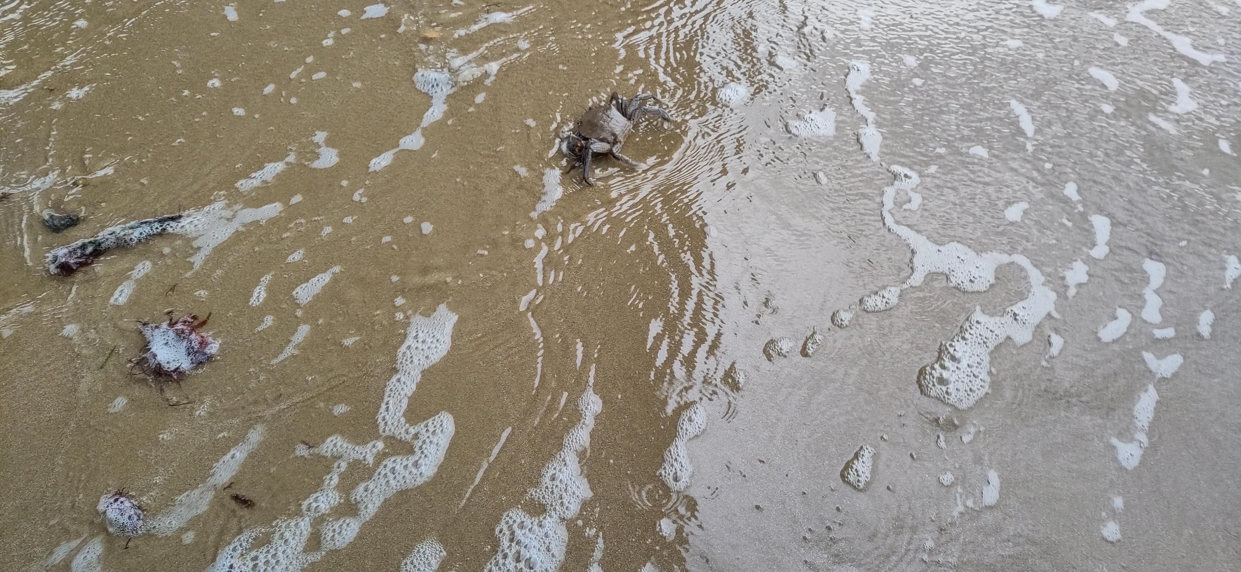 The rain had abated when we left the church, so to complete the Cromer experience I fancied a walk along the beach to get closer to the beach huts. Shane, David and Nye had headed back but Bryn and I enjoyed the multicoloured flint shingle, finding many “witch stones” with holes worn through the centre, and took one back to Nye. The beach huts were even more multicoloured. At the end was a Banksy of crabs without a home, feeling slightly guilty that locals are priced out of housing by the holiday accommodation market.
