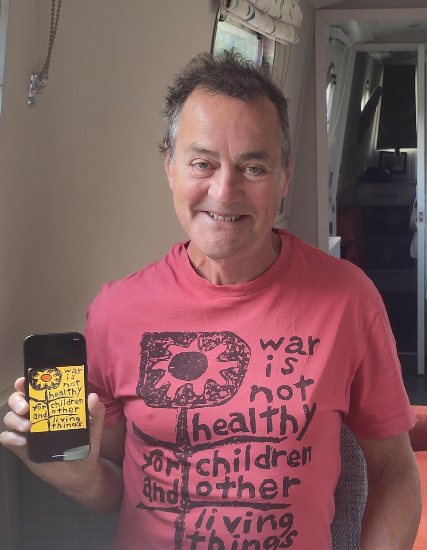 On a busy summer Saturday, I was surprised to get such attention, Shane is often recognisable as 'the man in red' even if he is in a change of clothing. The next morning his Mastodon feed presented him with a post, or 'toot', about a design by artist, Lorraine Schneider, in 1965, and to his surprise he noticed he was wearing it at that very moment, but in his own colour scheme.