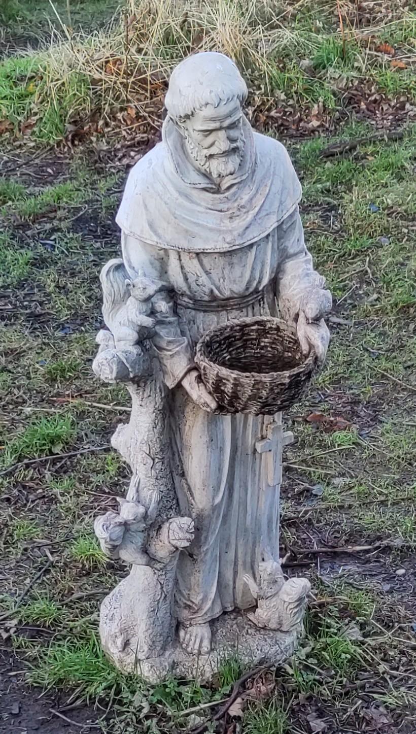 I felt fortunate to have that extra event slotted in to the week between Yule and Hogmanay. Pleasant surprises are very welcome. We had an easy Hogmanay plan of an invitation to Kenny and Helena’s and before it a walk with Cath and Michael. I had never noticed this statue of St Francis near them before, oddly sited beside a park in a school playground, though it is the grounds of.Catholic school, the school is St Peter’s, not St Francis.