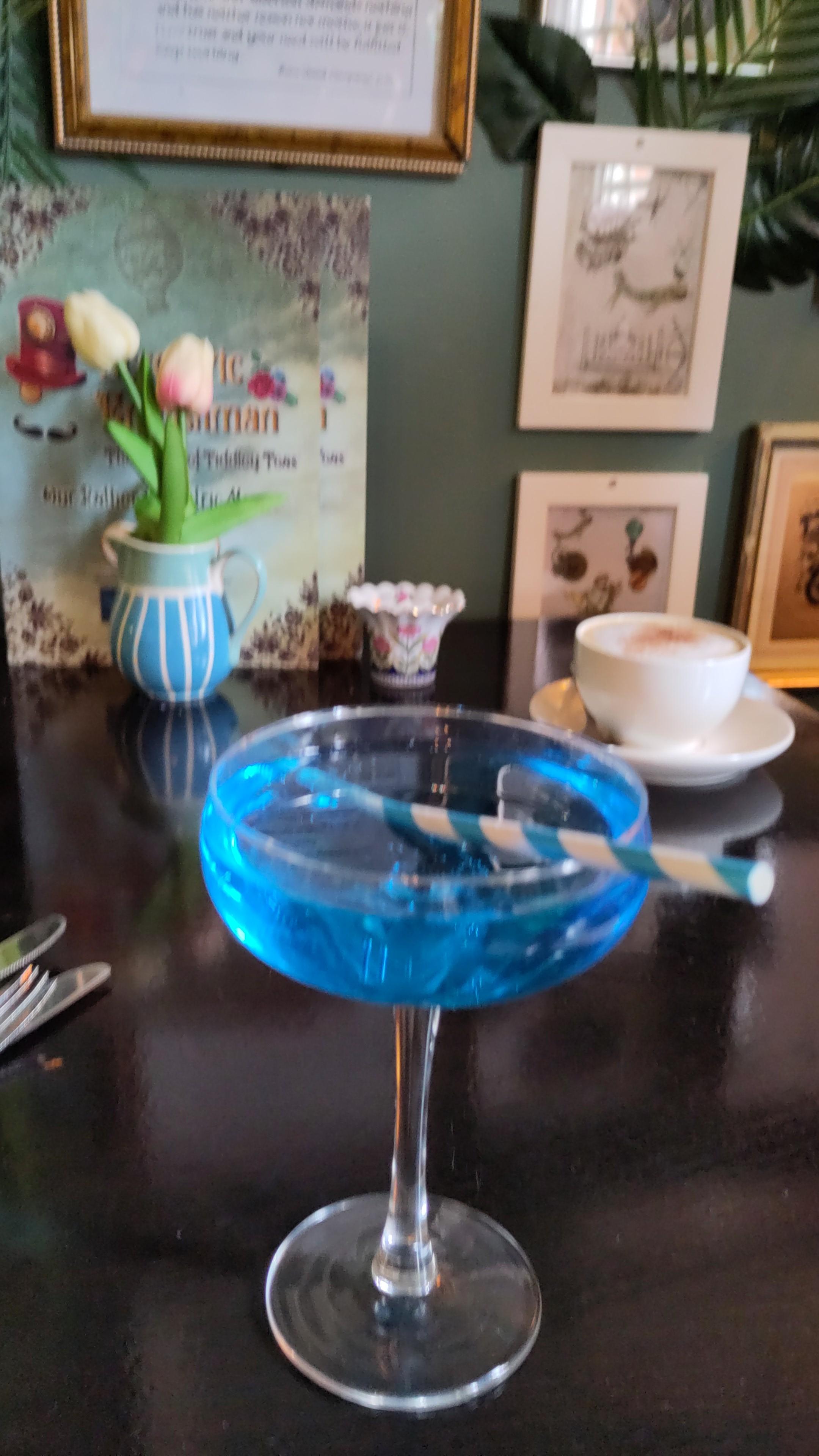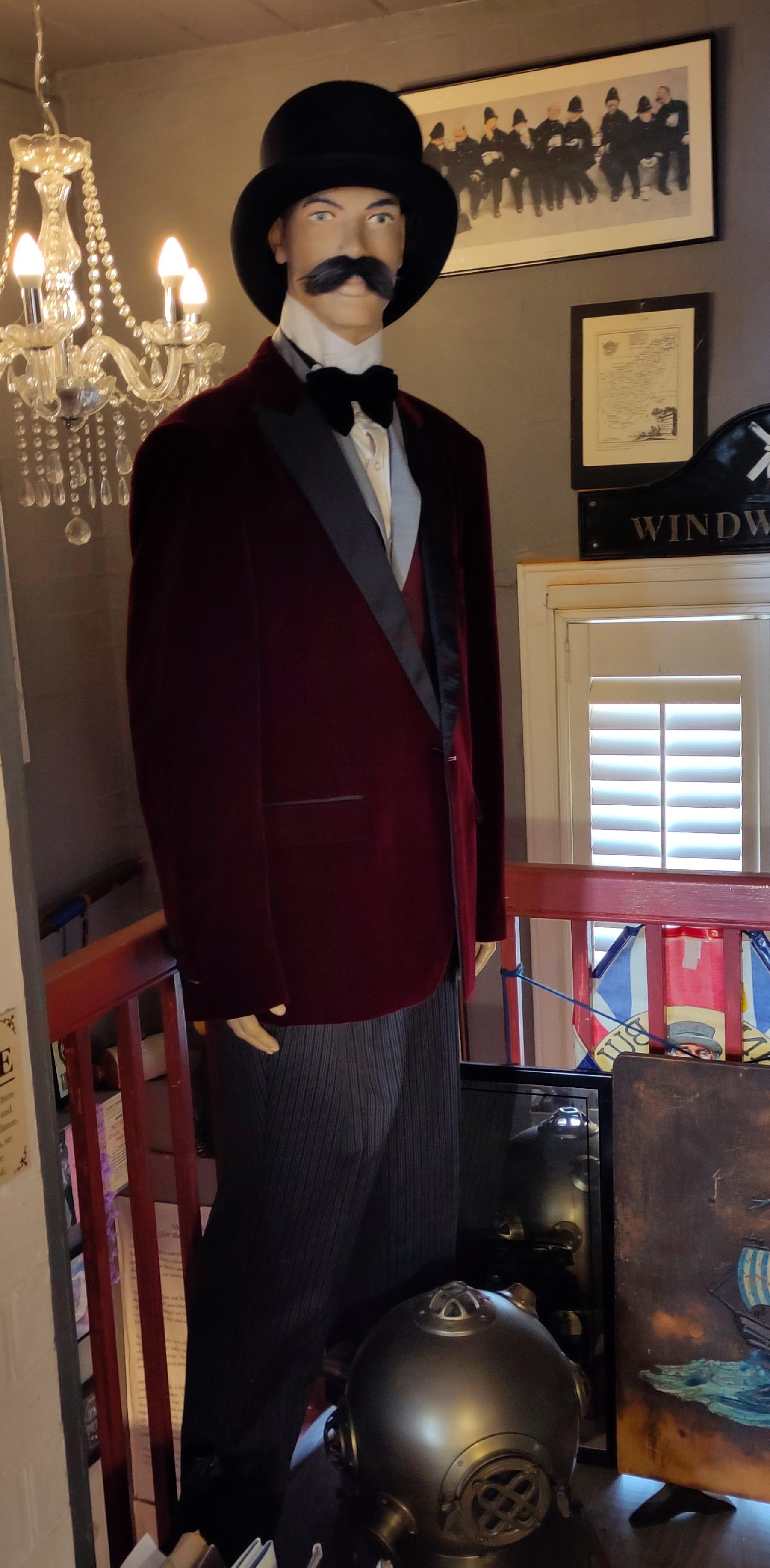 We had noticed during our sunny explore of Northampton that there was a Vivienne Westwood exhibition on in the art gallery. Neither of us are dedicated followers of fashion so knew next to nothing about her but in our general spirit of taking advantage of what’s on wherever we happen to be, we thought we would check that out. Sunday was ideal as the weather was dull and windy, so much more suited to being inside. Our first foray in the door had us turning on our heels and straight out again, as the hope of beginning our gallery visits with lunch, was dashed by the news that they didn’t do lunch on Sundays. We were back to pounding the streets. Unsurprisingly the bistro in the church wasn’t open on a Sunday either but my eye was caught by an unusual window display offering tiddly teas and we do like to sample the individual or a small local enterprise, rather than the chain establishments, if we can. So we entered The Eccentric Englishman!