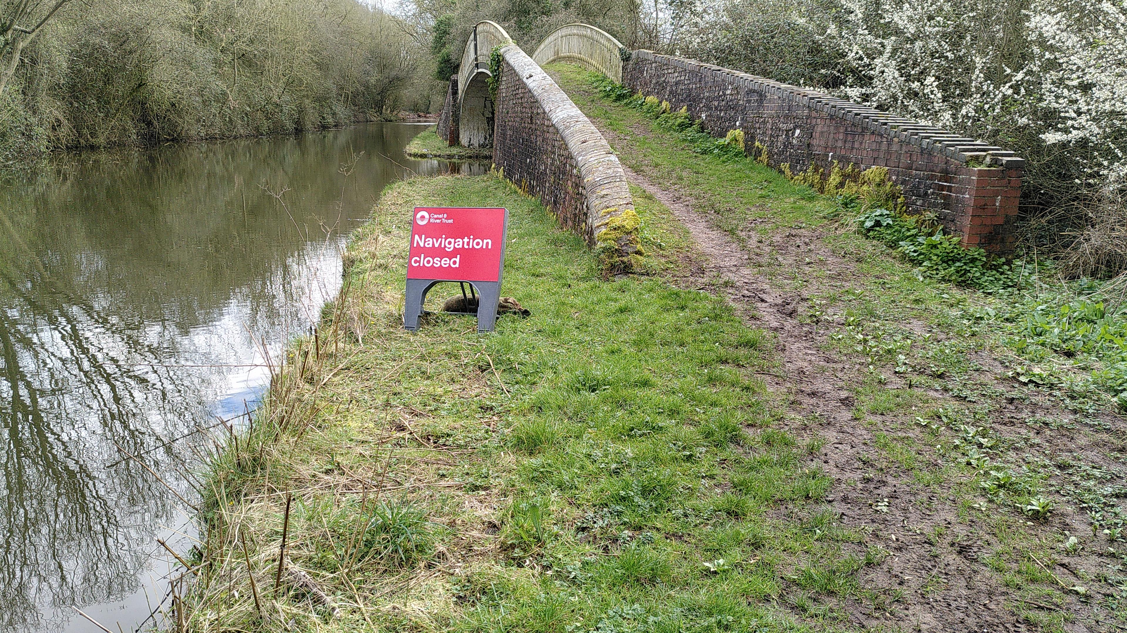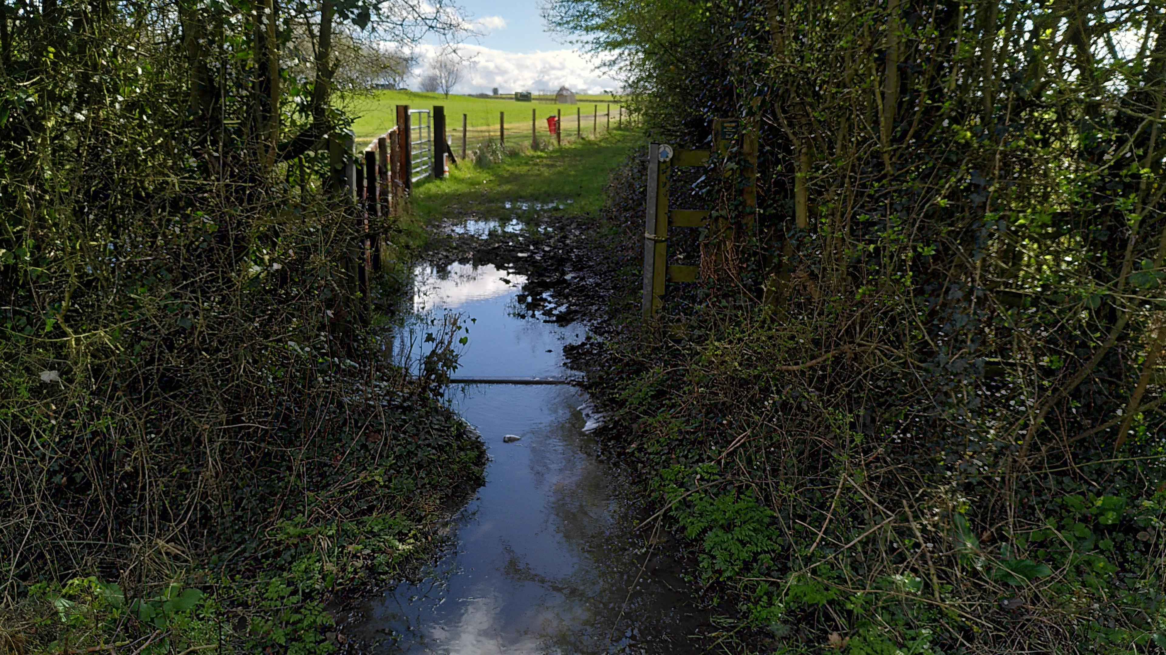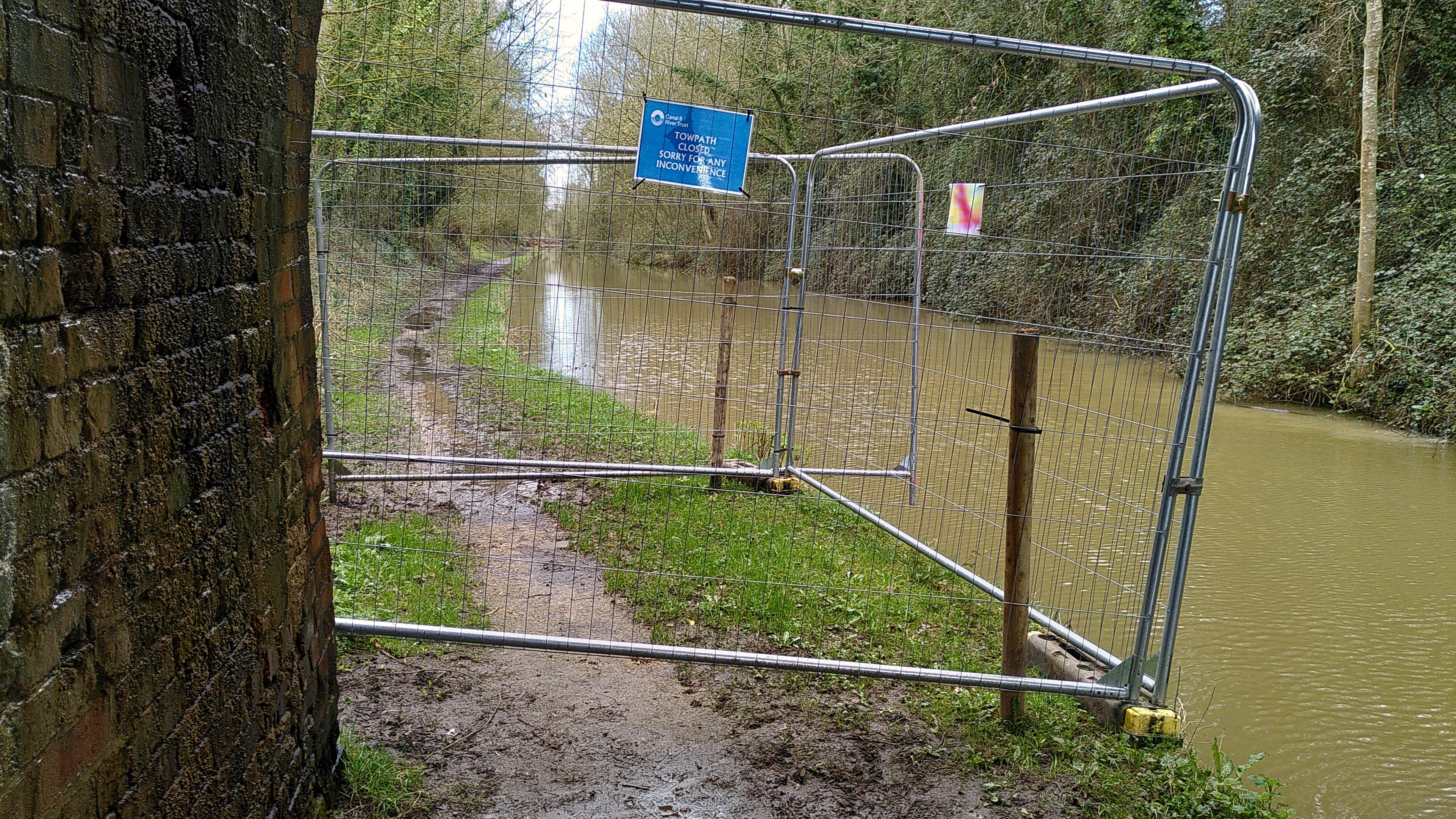 We cruised as far as Brinklow Marina, the entrance to which is the last winding point before the damaged section. After turning I reversed a little further to get us on to a reasonably puddle-free section of towpath. The towpath along here is very soggy – only passable with wellies. We had some lunch and then set off on foot. I’d vaguely considered getting the tandem out, but we’d have had quite a job getting it to the road on the bridle path that was imitating a bog. It was still in better condition than a footpath on the other side of the road.