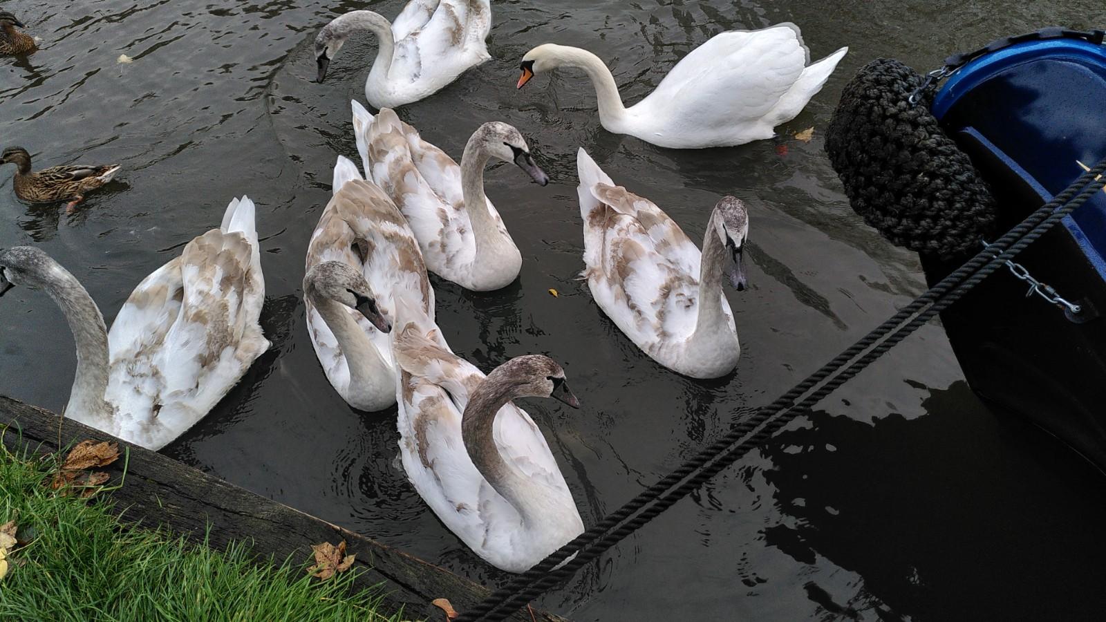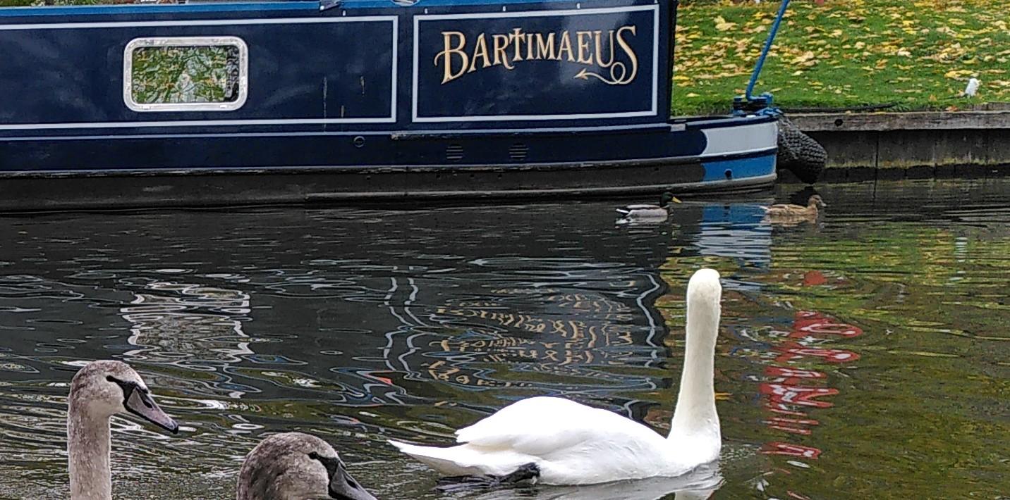 This mooring was handy for collecting water and better for accessing the fender, but the short jetty on a windy day, meant we had to tie to the roof half way along and the rubbing rope creaked, so we had decided to move back into the park once we had filled the tank. It was a very short journey but involves operating two swing bridges. Shane went to do them and I was driving. The wind made it harder to get away from the bank and scraped along the side. A walker in the park called to me that I had lost something. I couldn’t think what, but Shane remembered that, unusually, there was a fender half way along – now gone, as it had caught on the corrugated bank. After mooring we went back with boathook in hand and it had its second use of the day lifting another fender from the water. The hook that holds then into the boat had snapped but we had another, so Shane reattached that too.