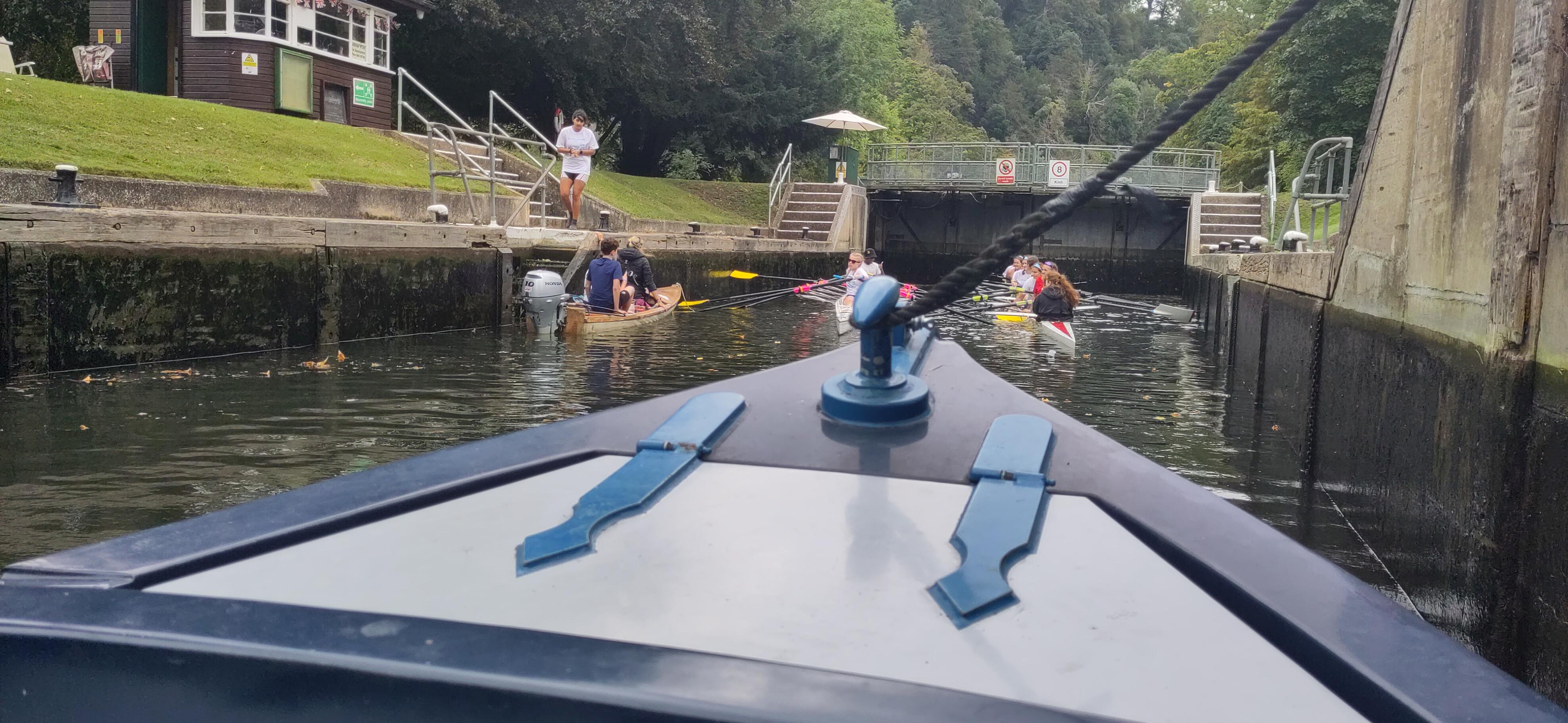 Even when buddied up, we can have a different experience as whoever works the locks may talk to the crew member they are working with. The drivers often chat to each other even more while they are in the lock. Mostly we have been doing them alone and it seems we have usually reversed who was driving or locking. We did manage to share a stretch with a man on his own. Usually he isn’t alone, but his wife was away caring for her father with dementia and he had to work locally and lived on the boat. He ended up chatting to both of us and clearly was enjoying having a bit of company both for the socialising and the assistance. It was a stretch with several locks and swing bridges, both manual and electric/hydraulic types, which is very heavy going on your own. It was good to share out the work and we were both aiming for Aldermaston where we both wanted to get water, but then Shane wanted to stop a little early as there was a good spot to moor. We weren’t desperate for the water. We had to disappoint him and not go all the way. As the next lock was tricky with a fast side stream, on exit just before a lift bridge, Shane promised him we would help him through the next lock and bridge anyway. He was pleased of that since I had just been discussing with him what a tricky section it was and how I had wanted Shane to drive it last time and he had been agreeing how he had been thrown around there before and was not keen on it.