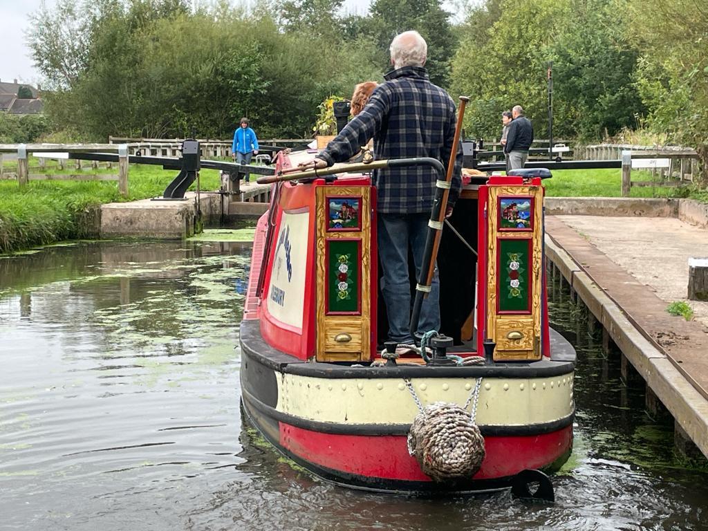 We cycled to visit Heather’s parents, Dave and Margaret and again had someone stop to chat to us about the tandem on the way. It was a lovely sunny day and we had a fine afternoon of reminiscence of canal adventures, fishing stories and past holidays with tea and biscuits in their garden. It was great to see them and it was no surprise that we did not leave empty handed. Any meeting with them in the past would include some garden produce. He was saying they had no beans this year with the lack of rain but the trees were producing. Thanks to Heather for introducing us to your fun parents, in the past. We were very pleased to fit that in unexpectedly into today. They had their COVID boosters this morning so may not be up to visitors tomorrow, so glad we seized the day….many canal boats are called Carpe Diem and Shane always say “Seize the Carp” Sounds like something Dave would have done in his fishing days! We were able to carry the fruit home safely wrapped and nestled in our jumpers in the back rack.