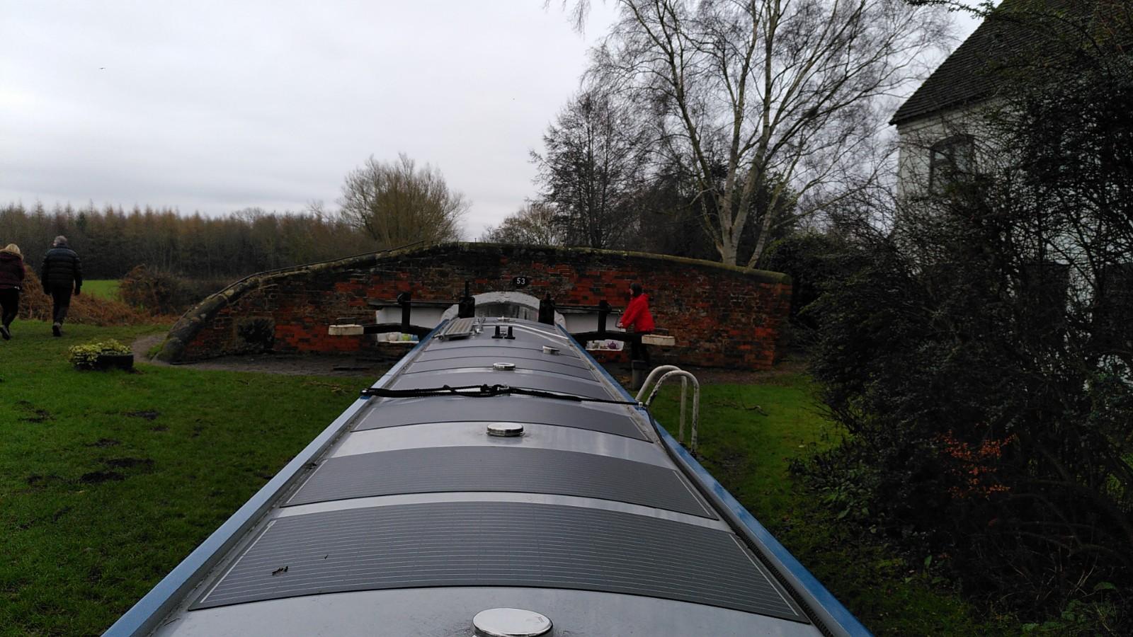 There were many moored boats on the moorings just beyond the water point. When we realised that we had just passed the last opportunity, I used some heavy reverse to stop, and then started to go back. The canal was very shallow here and I ended up aground at the stern. Despite my best efforts, I couldn’t stop the nose of Bartimaeus bumping (gently) into the boat we were alongside. No harm done, but it was embarrassing. A working bow thruster would have saved us.