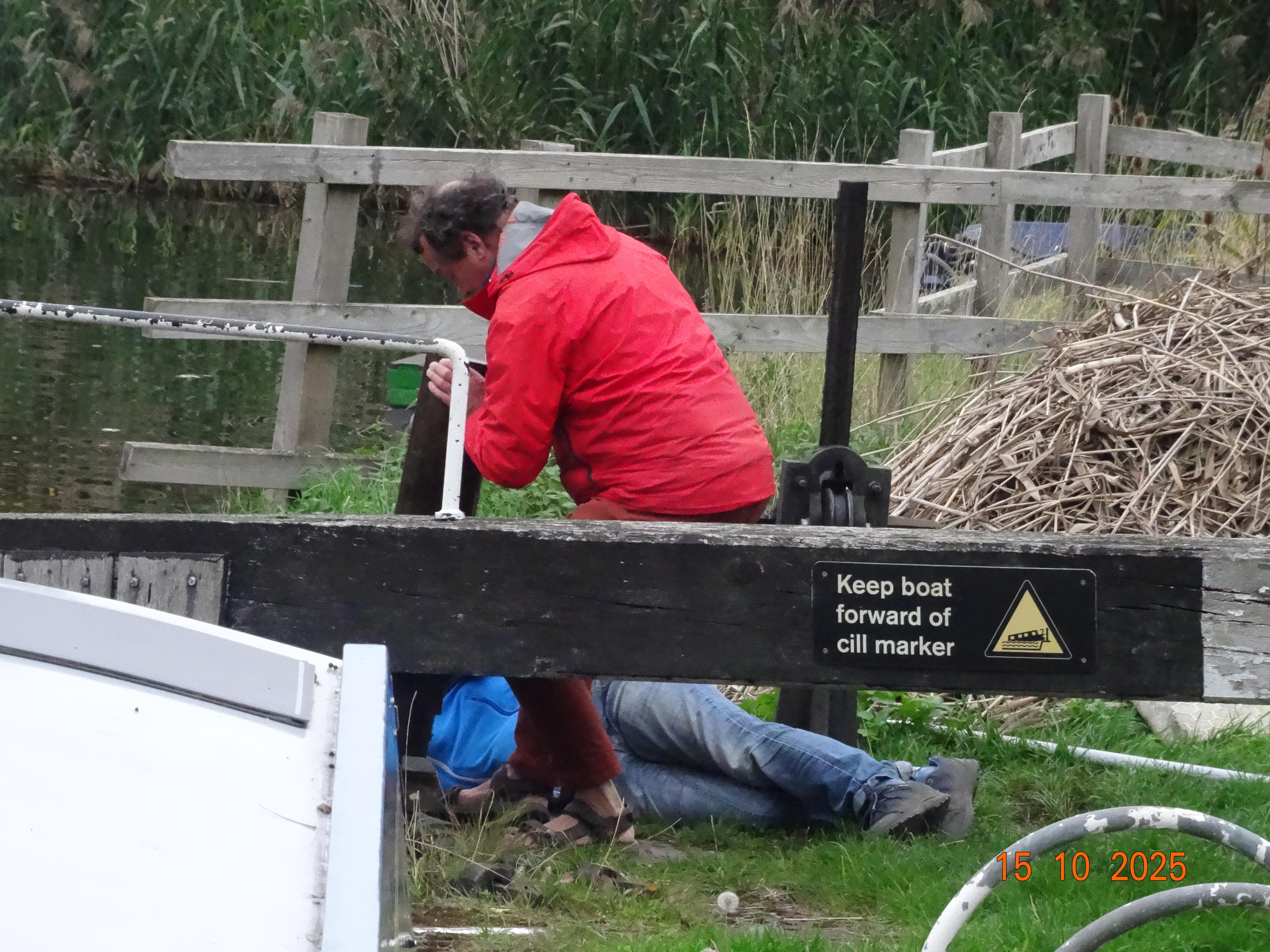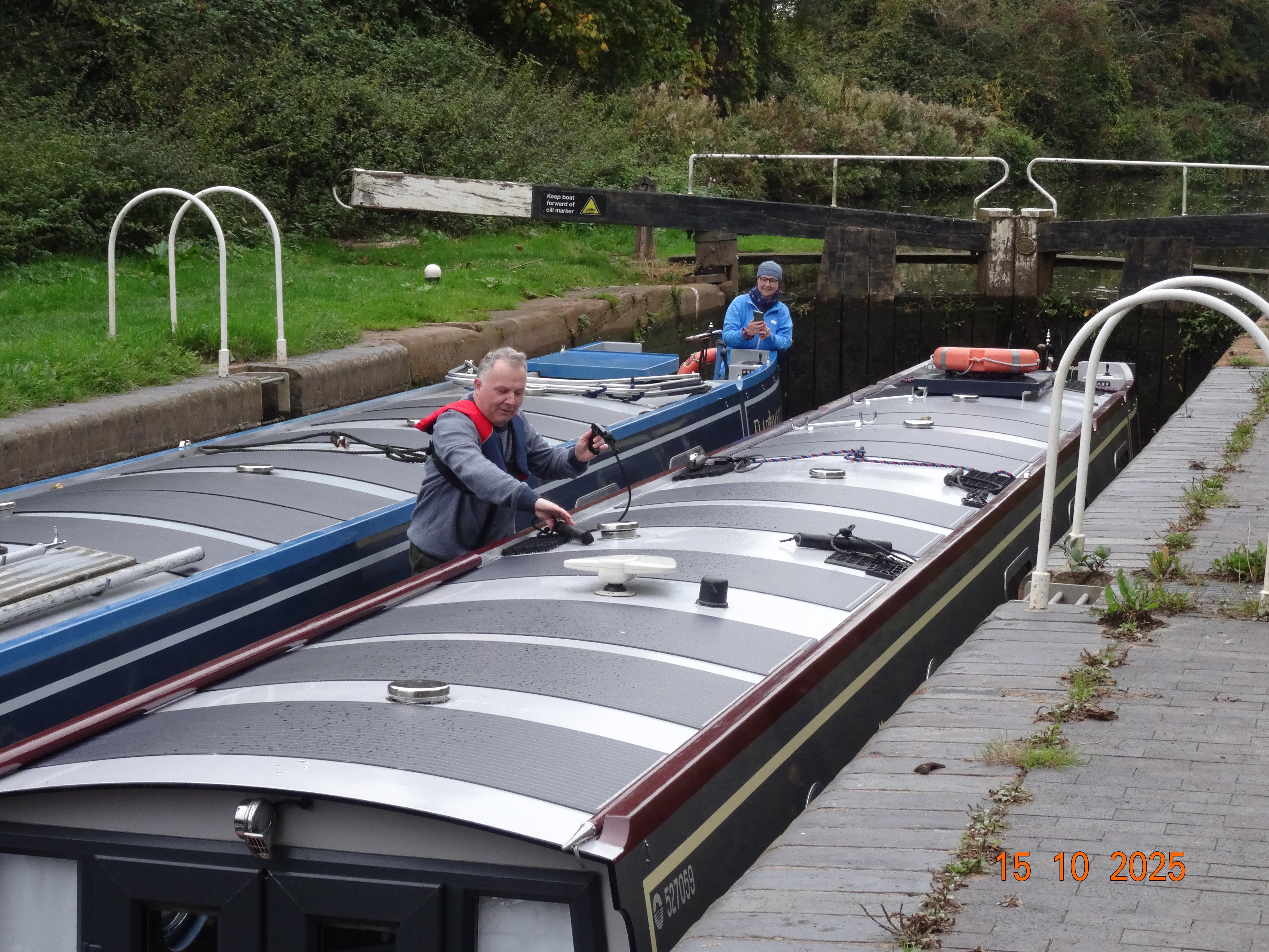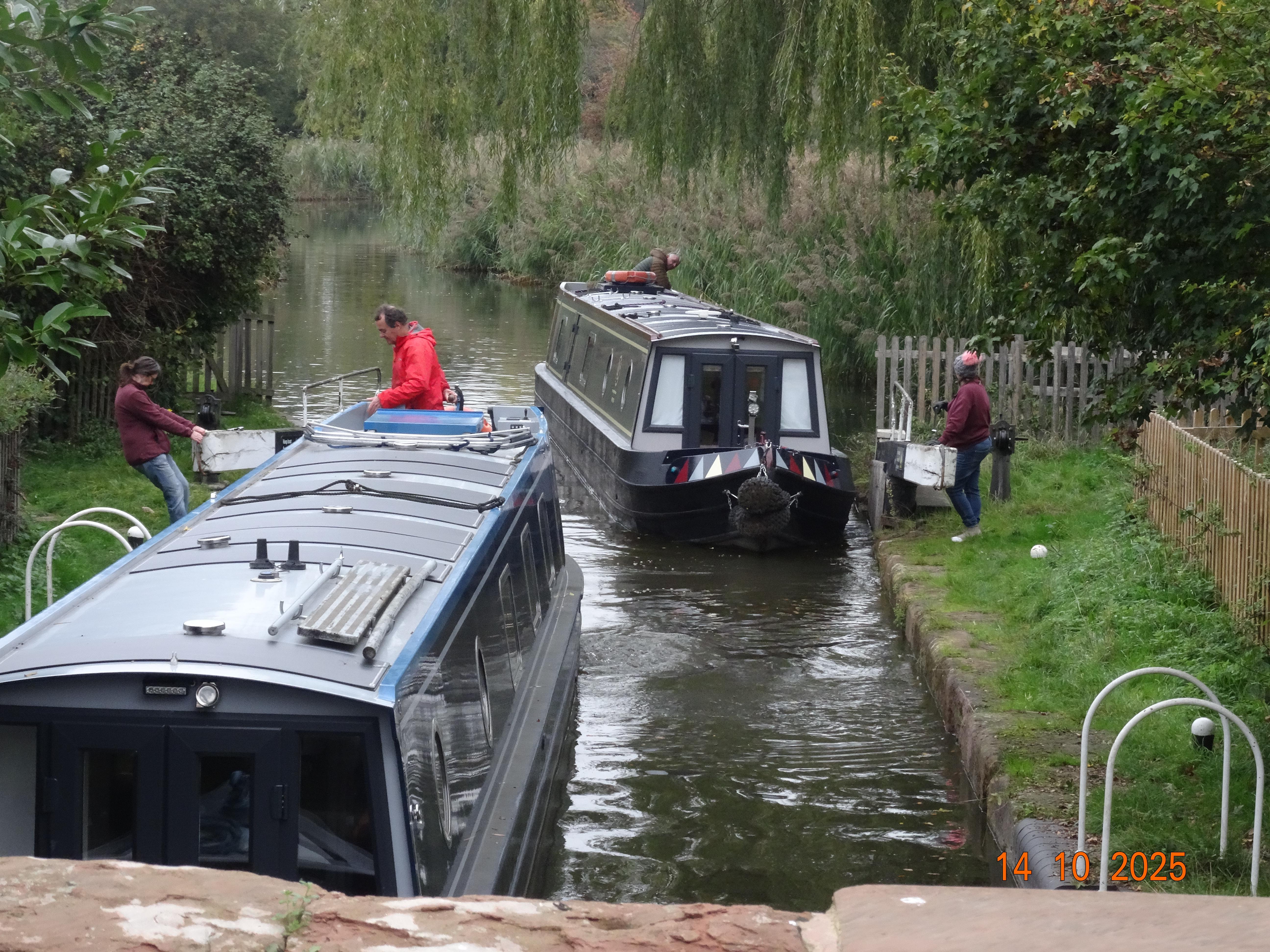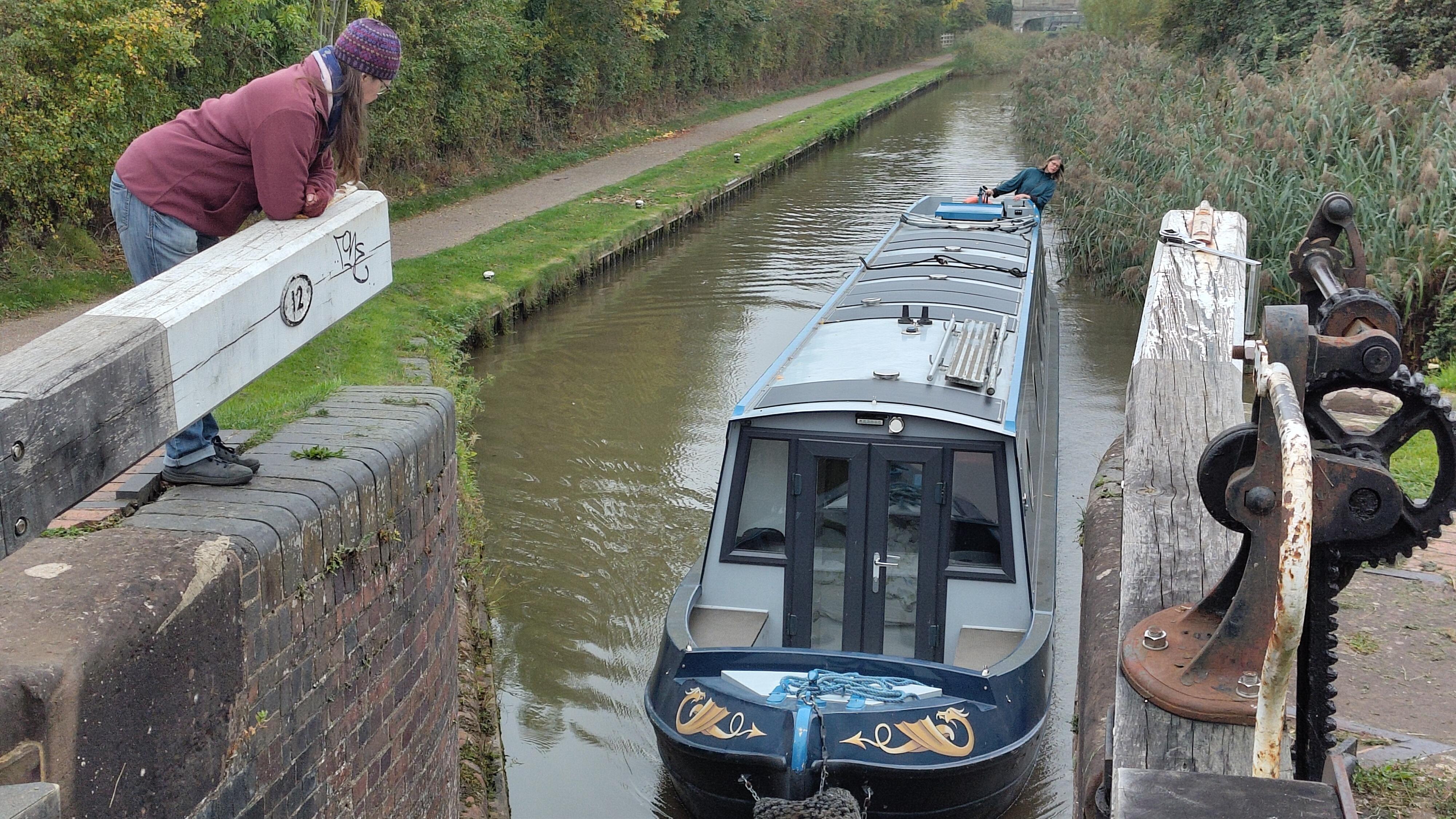 We were trying to charge the batteries again, so it wasn't long before we were very close behind. They pulled to the side and invited us to pass, which I happily accepted. They gradually vanished behind us as we covered the miles to the first lock. There had been no mooring options, and the lock bollards weren't suitable to stop on either. I suggested we prepare the lock, and then moor up inside it for lunch or until another boat arrived.