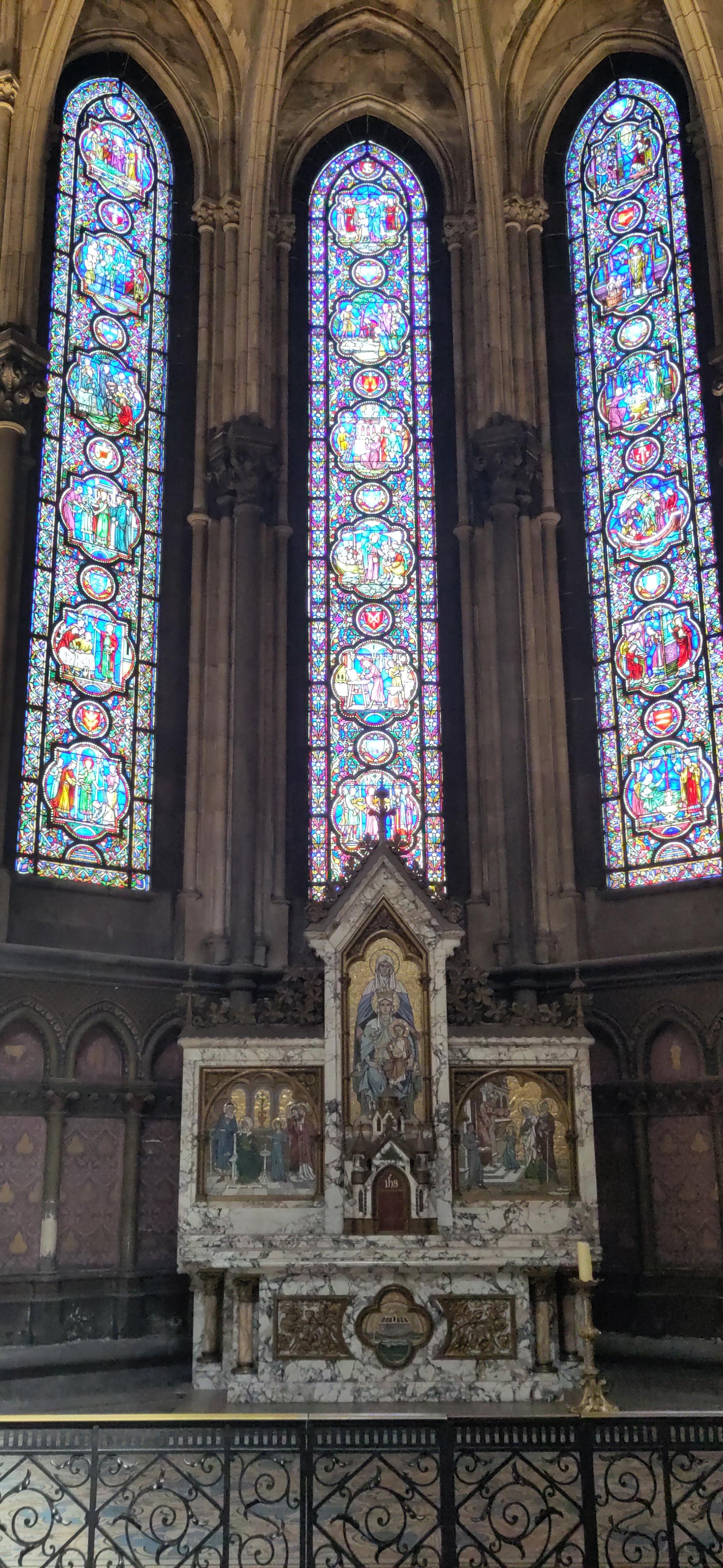 Breakfast showed the Flanders touch with pancakes, batter waffles and wafer waffles always available. The next day was due to be even hotter in the afternoon still so we spent many hours in a cool gallery. In the morning we headed for the town hall tower for a view. I was doubting that I could make the steps, but we found a notice saying tickets to the tower were fully booked already. My legs were getting a reprieve and we had the good chance, it being a Saturday, of watching two wedding parties. We saw a gay couple leave, married with sequinned waistcoats and double bouquets being tossed to the guests and a north African wedding gather in preparation, guests singing and ululating, the bride wheeling up in a puffy white dress and beribboned car with her father (we guess) in traditional robes and cap, excited girls arranging her train.