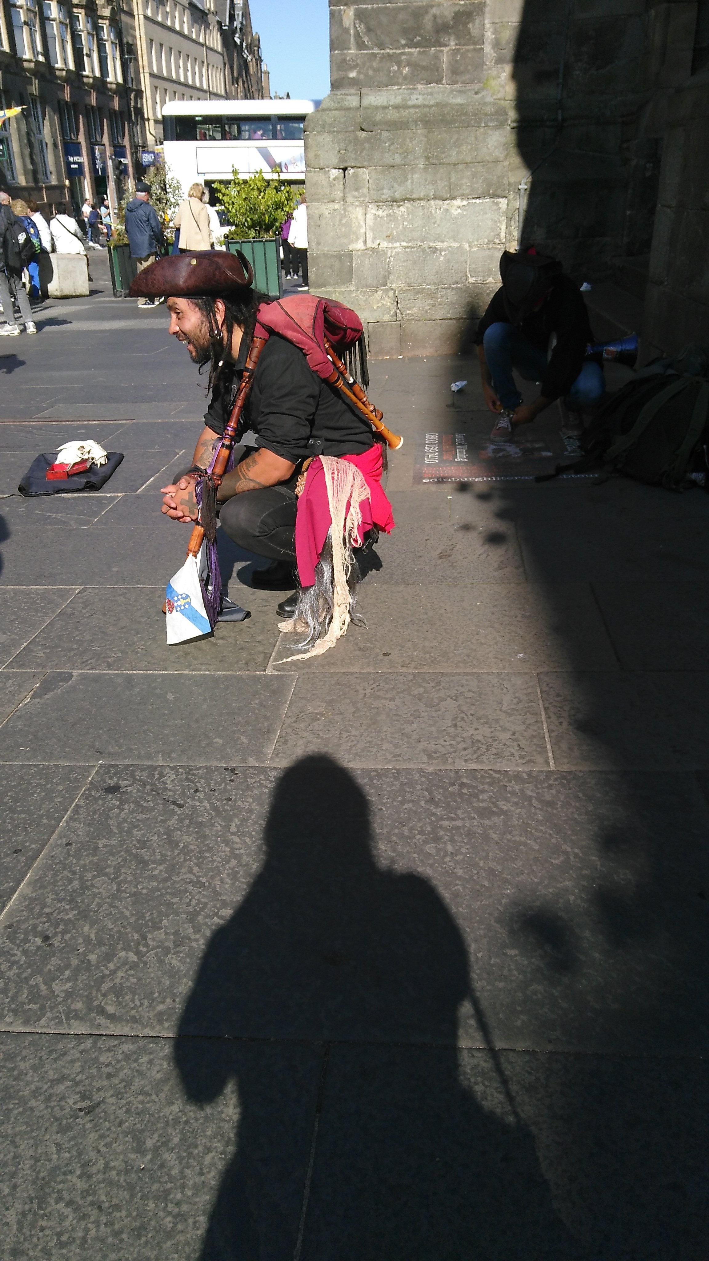 Today we went back up and the High Street is hoaching with people with fliers and the costumed performers: drummers, jugglers, comedians, musicians, singers, breakdancers, painters and for the first time I saw one of the High Street performance spots had a BSL interpreter for the performers’ patter. I enjoyed that about as much as the performance itself!