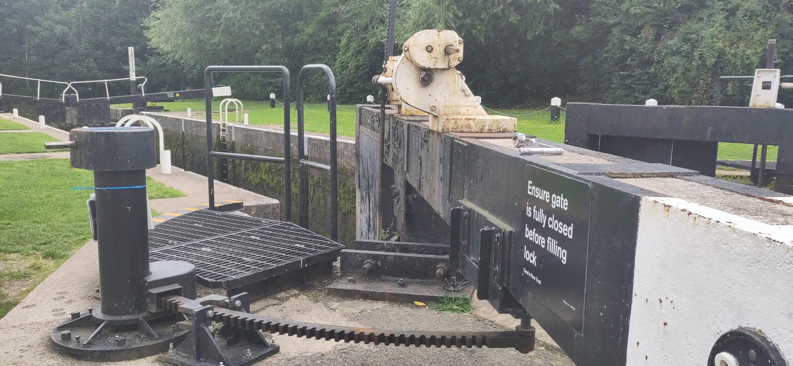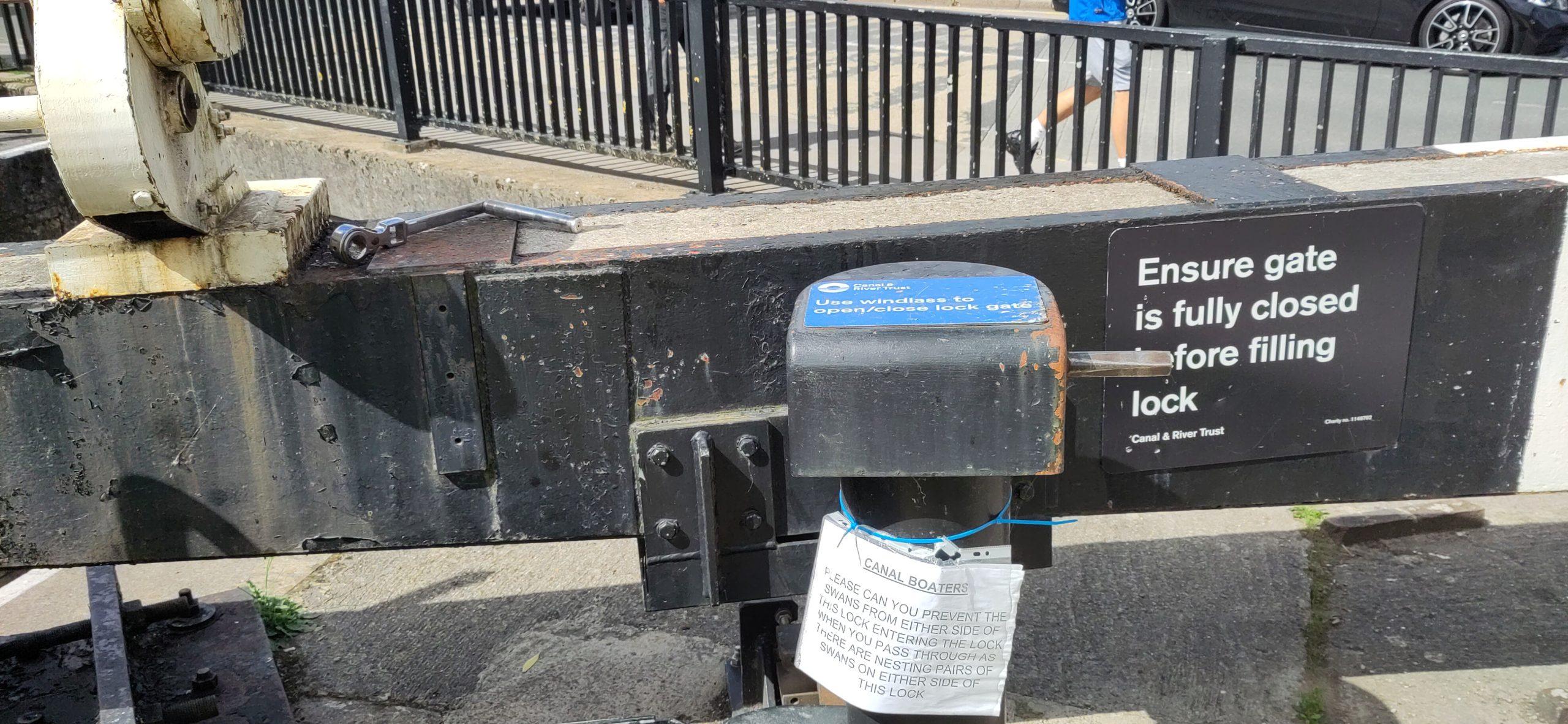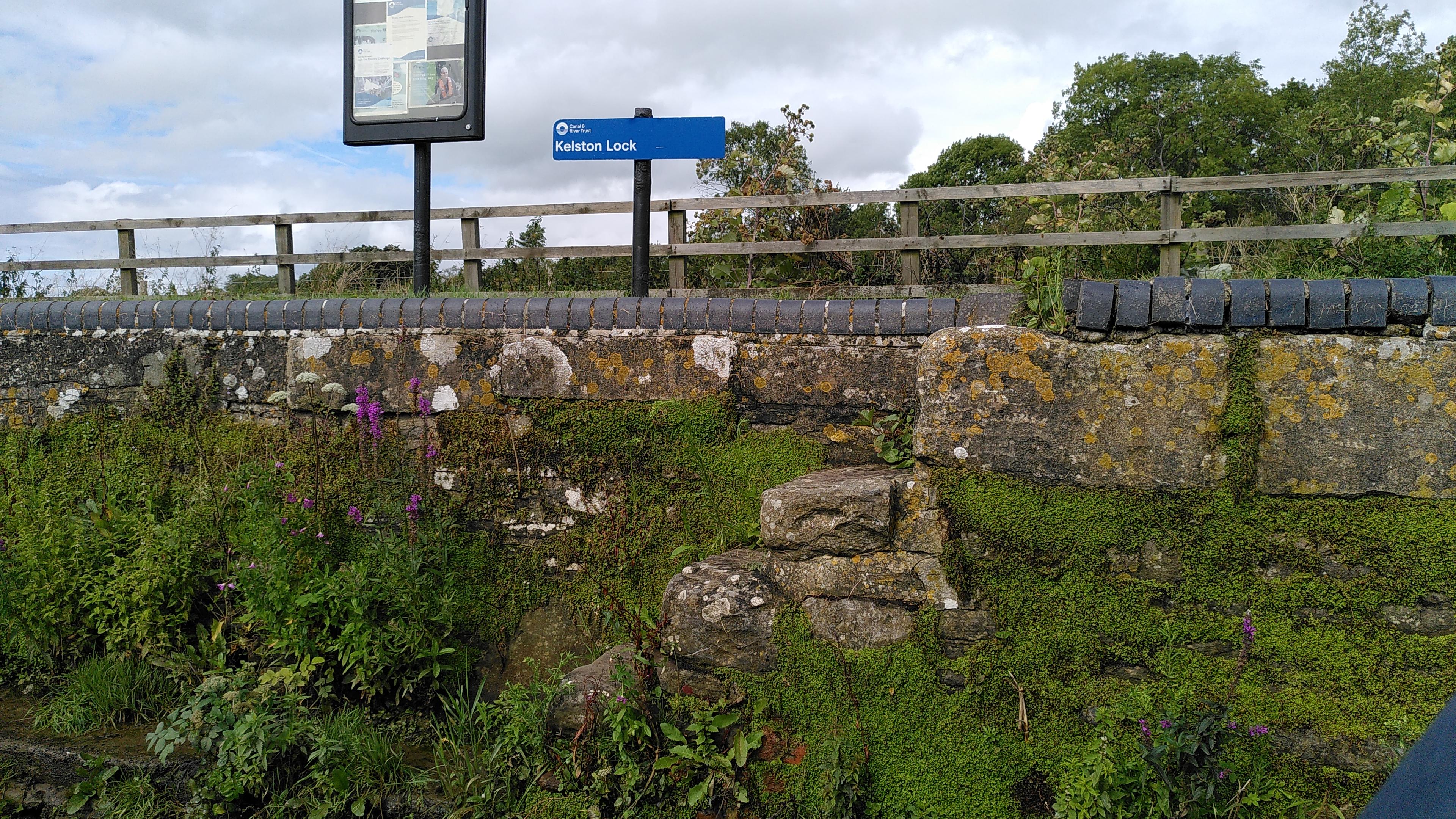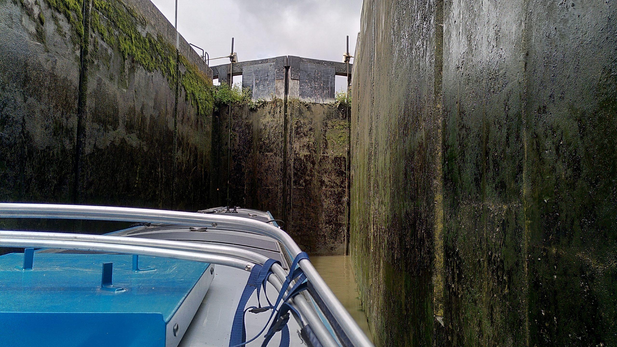 I was glad I’d put the cover up when a very heavy shower came on suddenly between the next two locks, but the rain had gone off again before we reached the next lock. After that lock we found the recommended mooring spot and decided to stop for the day. The mooring was not the easiest, but Clare managed to get ashore with the bow rope, and then we have tied the stern to a tree to stop. Getting on and off involves a bit of a jump, but we still managed to get to the local pub – and back – without undue difficulty.