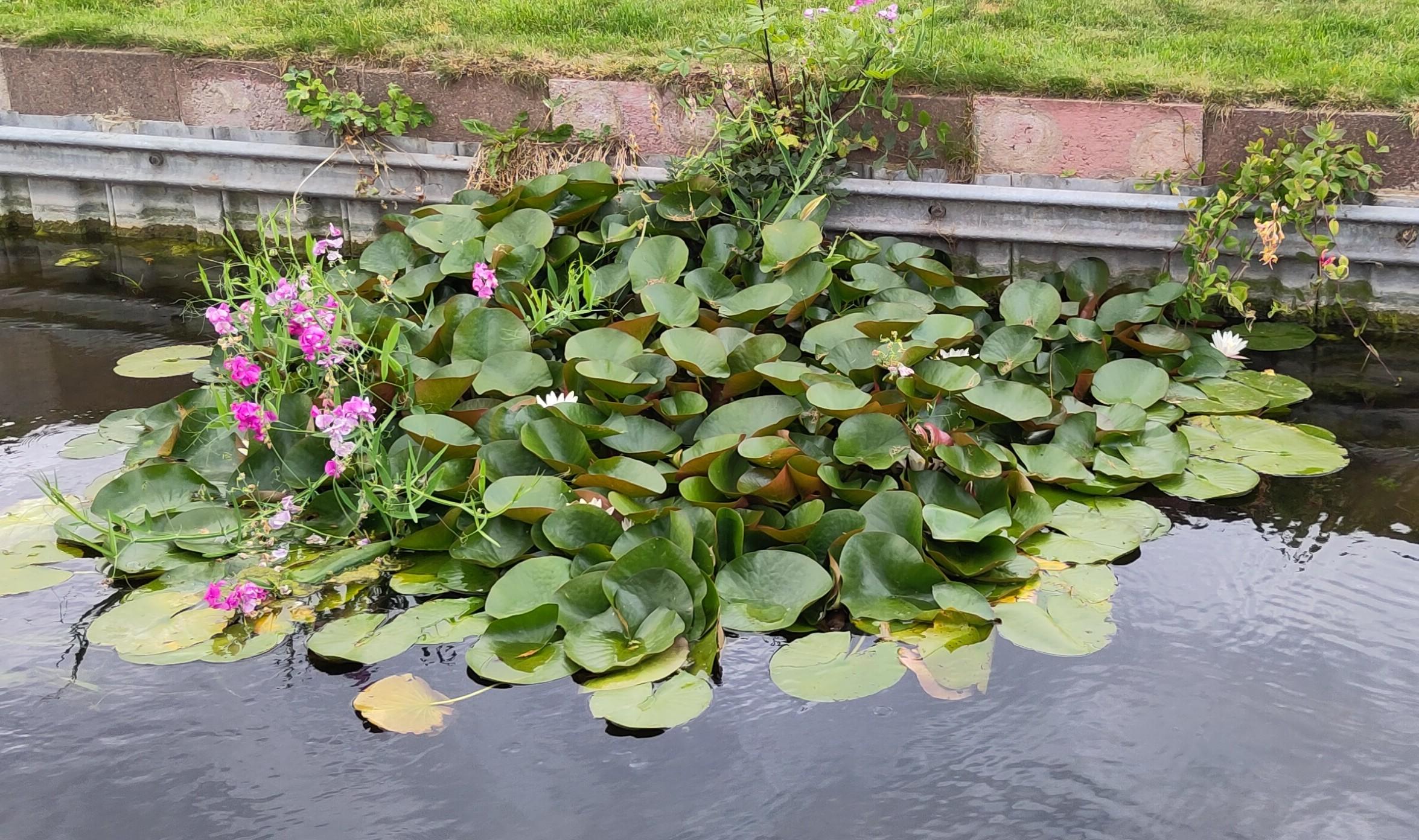 The slow pace let me get a good long look at an erect duck, quite a different kind and a crowd of cygnets and parents at a lock gate hissed at me as I crossed. They had moved off by the time I needed to open the gate though. I also got a good look at a different purple plant and asked Bryn if it was Himalayan balsam. This was a plant he had to clear from the water of Leith in large quantities. He confirmed it was, but many of his distinguishing features were based on the work to clear them, the shape of the stem, how it breaks, how easily the plant uproots, none of which I was observing. They were pretty flowers though and he did manage to zoom in on those to confirm.