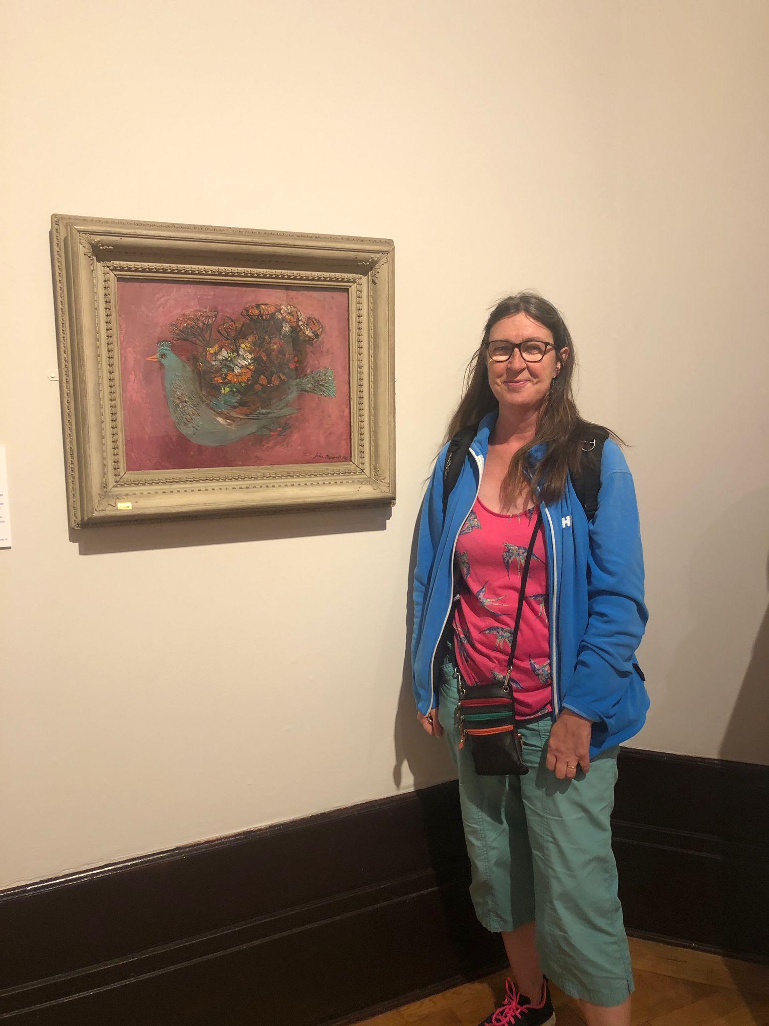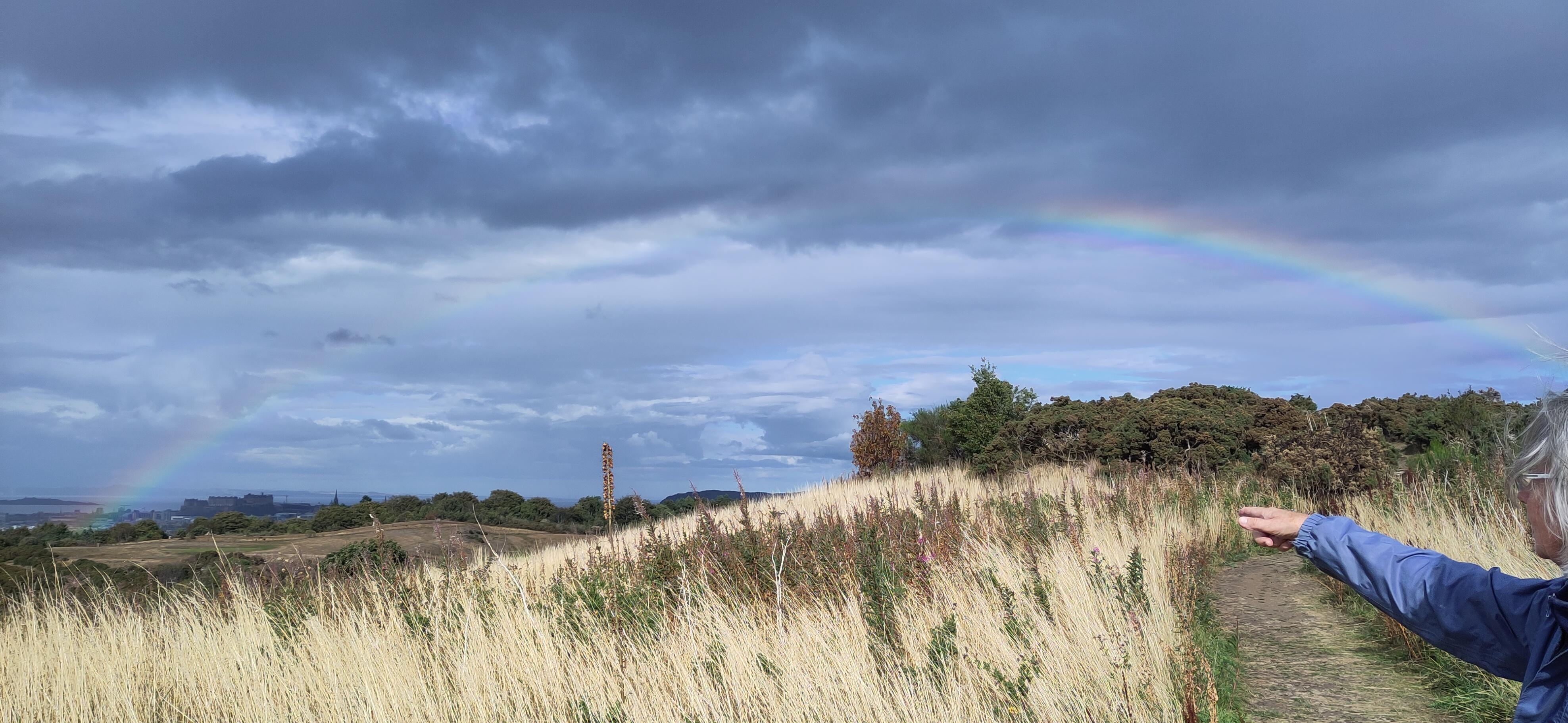 On the plane, one man was already in the window seat. I was in the middle and Mugs on my right. Both of us were knitting. I finished a mitt and was trying it on. The man said he was intrigued and was wondering if I was going to add fingers. I said no it was finished and they were fingerless gloves so you could have warmer hands but still have fingers free to handle things or use a touch screen or, indeed, knit. I did have another one to do though. Mugs was knitting a much larger and more complicated item, a jumper in two colours. She is considerably more skilled, neater and faster than I am and romps through projects at an amazing speed. If I am making something with a tricky part to the pattern, I sometimes wait until I am with her so she can guide me through it.