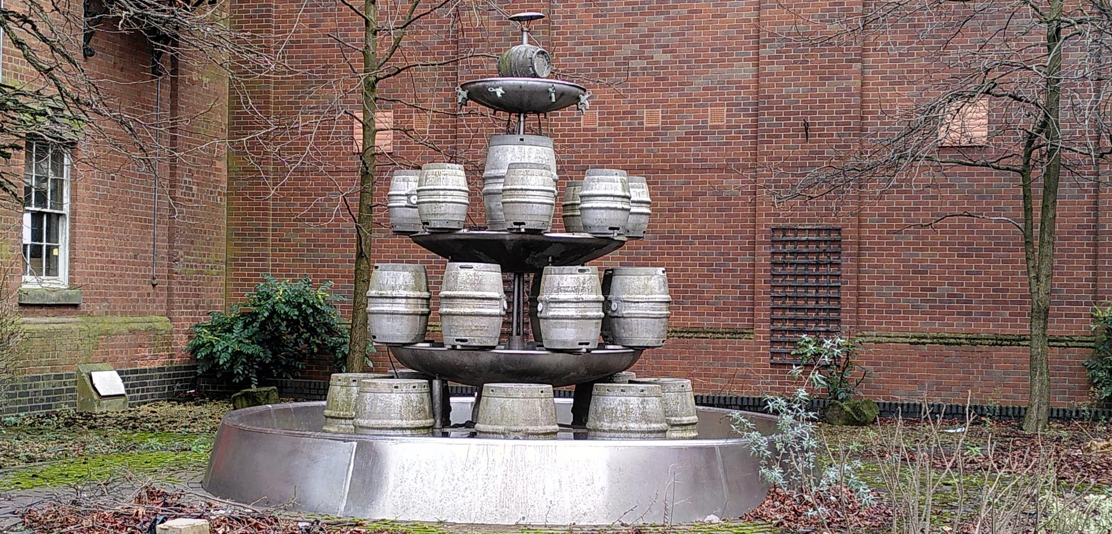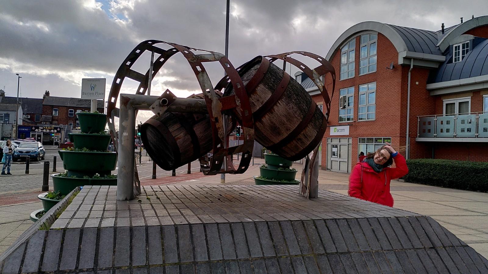 We were going into town. We had gone this way before. There are large industrial buildings from the past and some modern versions too. The principal industry was, and still is, beer. I saw a celebration of the industry’s success that I had not noticed last time. How could I have missed it? I don’t know if it ever ran with beer flowing, or if they used coloured water.