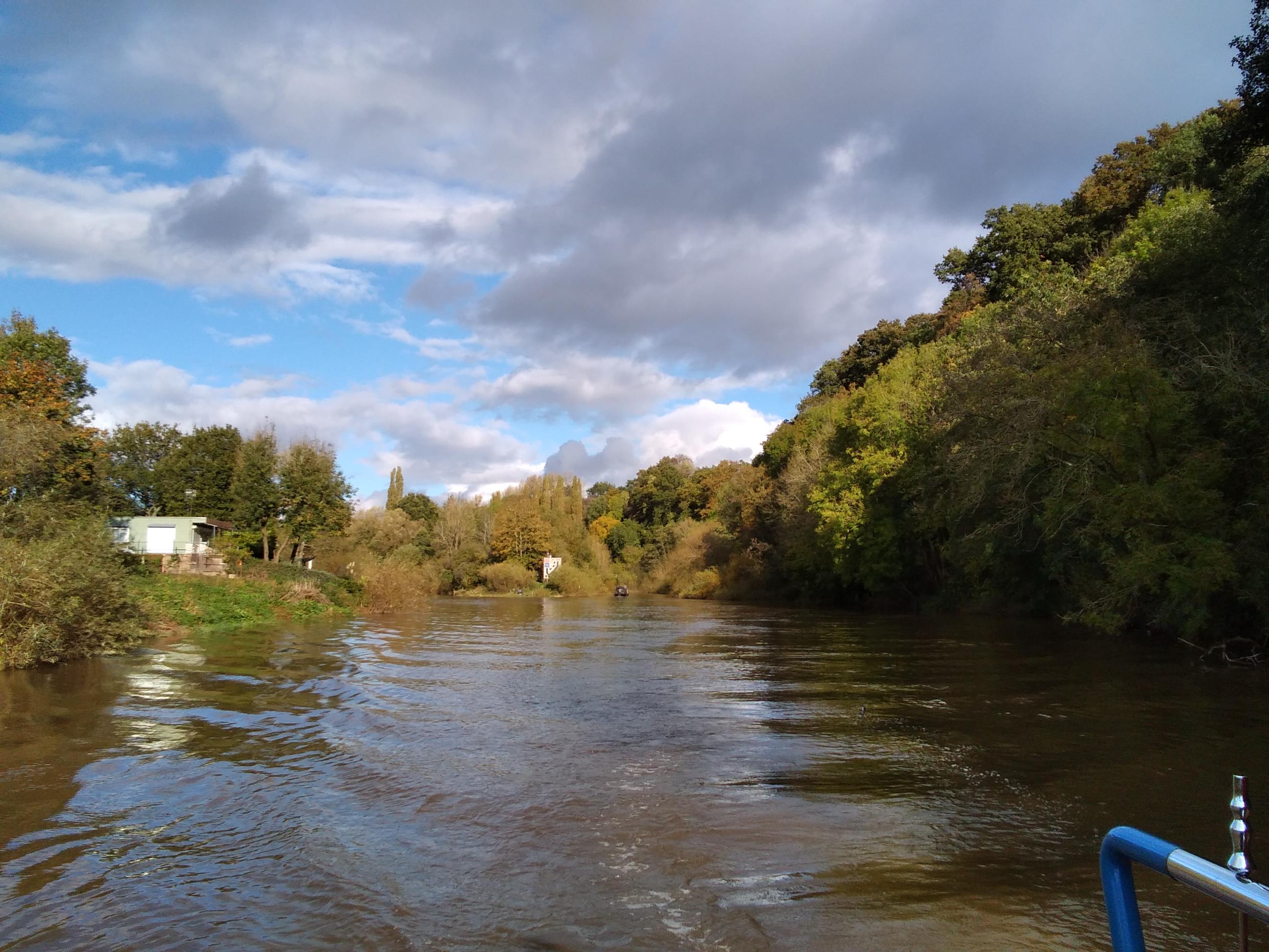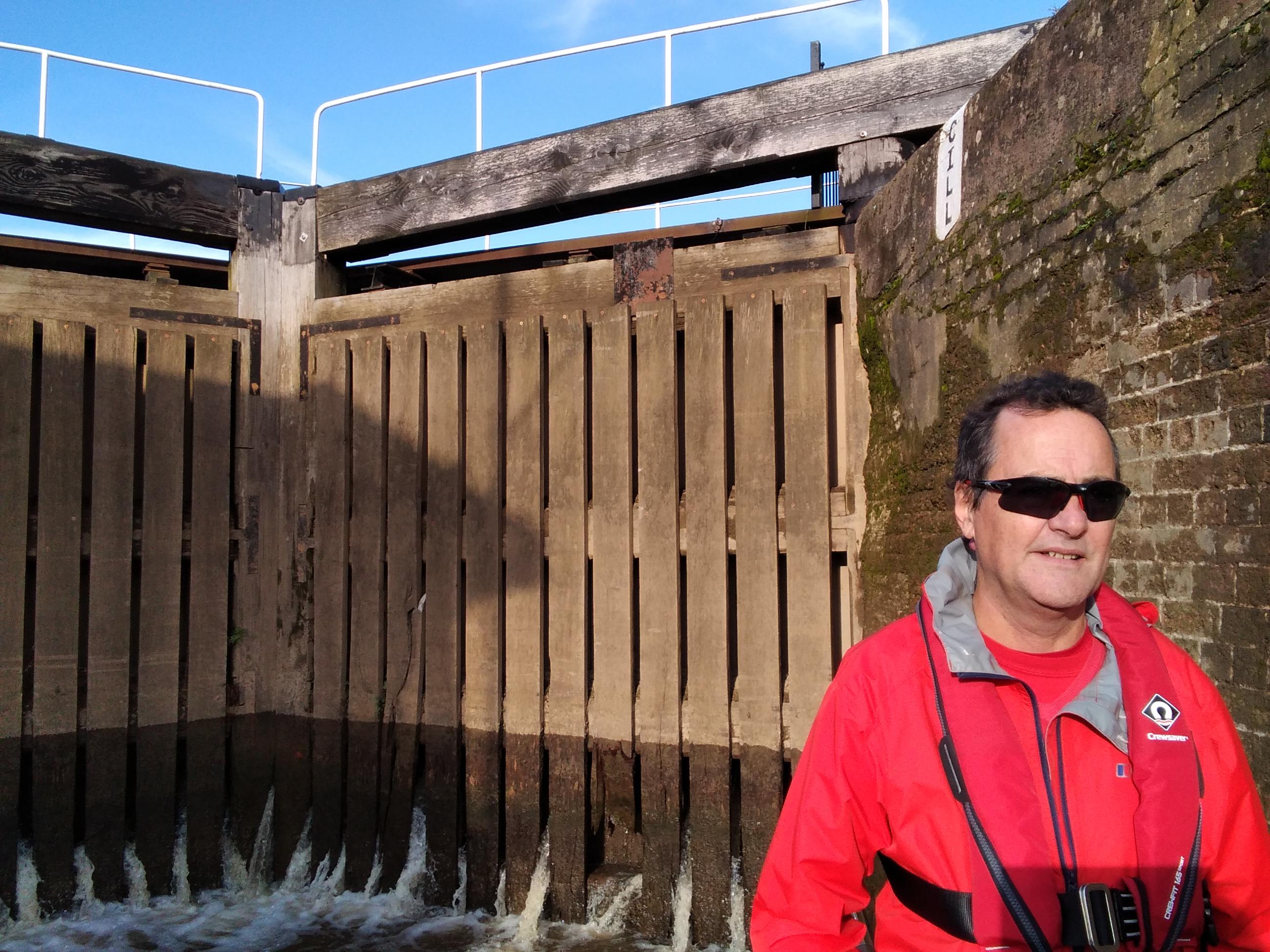 On our way north, we had been reminded that we should use the narrow locks rather than the wide (‘barge’) locks when leaving the river. We had followed this advice, but then found that the narrow locks were being repaired, and so had to go back to the wide ones. Today, both sets were working. It was quite a job turning the boat through several right angle corners in a stiff breeze with moored boats all around, this time with no bow thruster. I managed it without mishap, and we soon found ourselves in the first of two double lock staircases. From the bottom lock you can see the funfair.