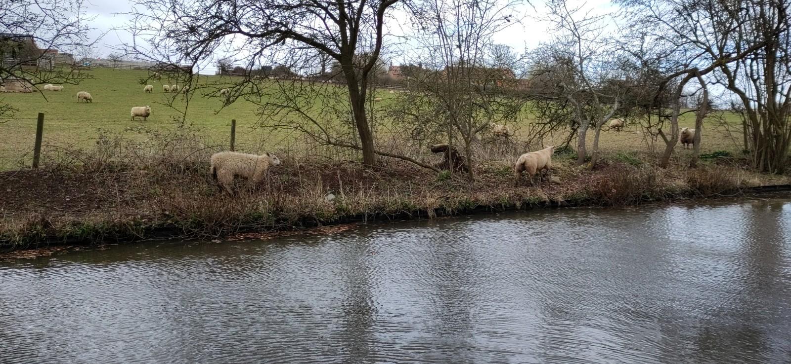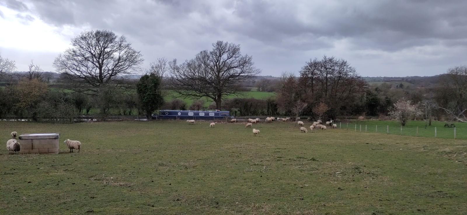 I was enjoying the ducks, while drinking my coffee and saw a heron fly over and later standing at the side. Having remarked that there were not many swans and geese but plenty ducks, earlier, as if to prove a point, a swan came by our boat this morning and enjoyed some titbits from our compost peelings. The ducks did not approach, some were on the towpath and some had found a space just beyond the canal, in a space where sheep or cattle might come for a drink, though we had not seen cows much at all.