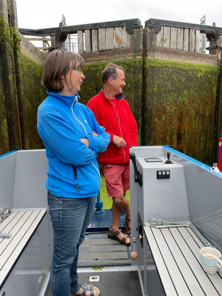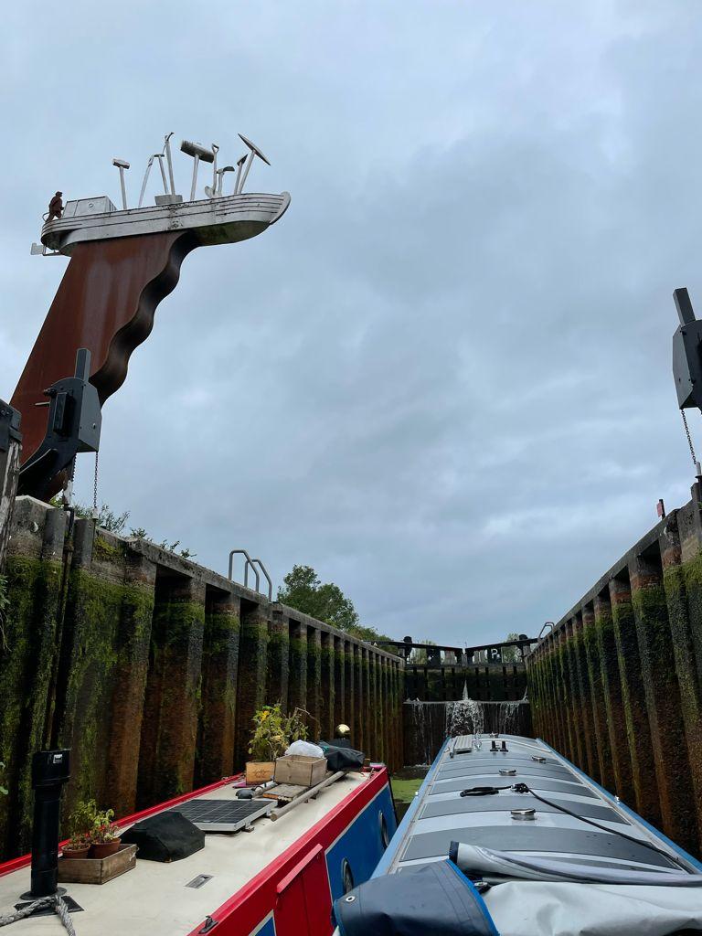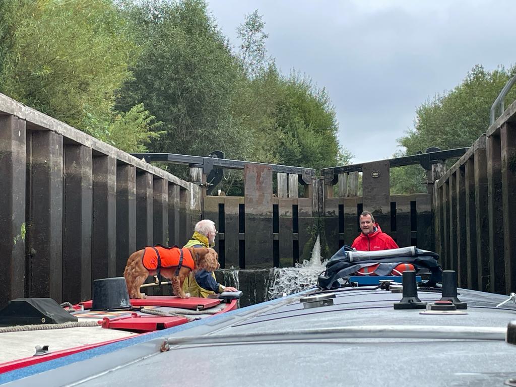 We had heard our neighbour sounding unhappy in the night. Turned out he had £2000 worth of fishing kit stolen from the roof just before he went to bed and an attempt to break in at the front, in the middle of the night! We were roped up next to him ( as they were to us back in Lancaster) and luckily there was nothing of value on our roof. Storage space is always an issue on a narrow boat and their boat is smaller than Bartimaeus. Still, by morning, despite their lack of sleep and fishing gear they were both chirpy and we had the pleasure of their company, as well as Lorna and Paul, through the locks. Some operated by staff and some by us.