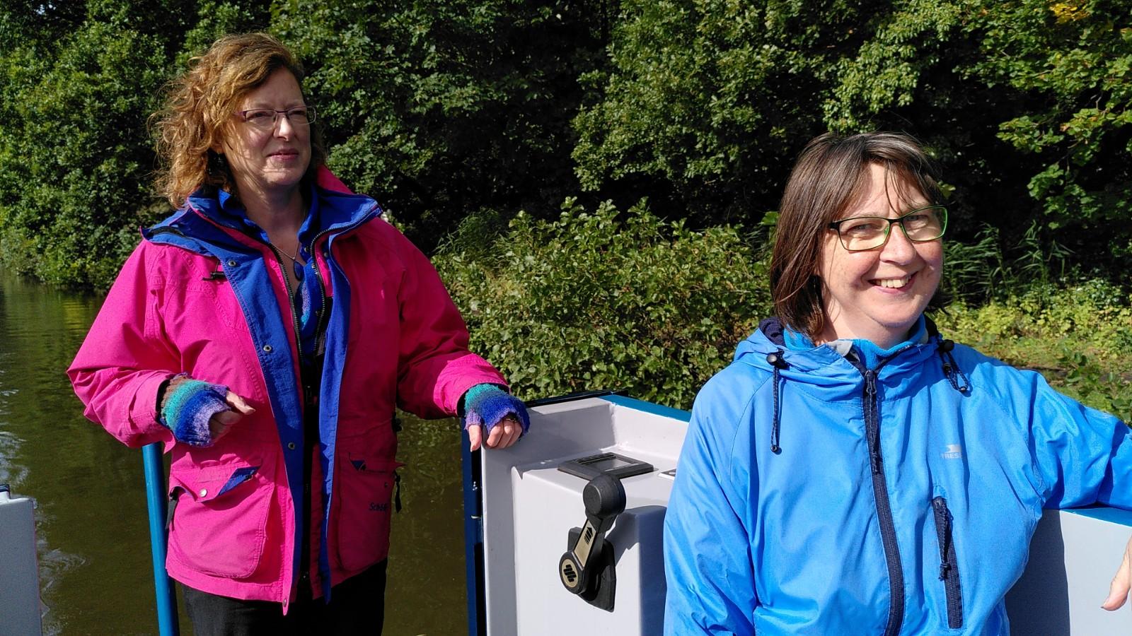 We were resigned to continue another two and a half mile to the next winding hole. However just before the next bridge we found a much larger winding hole and easily turned the boat. On the way back Mugs took a turn at driving, and did very well, especially in the strong winds which made driving tricky.
