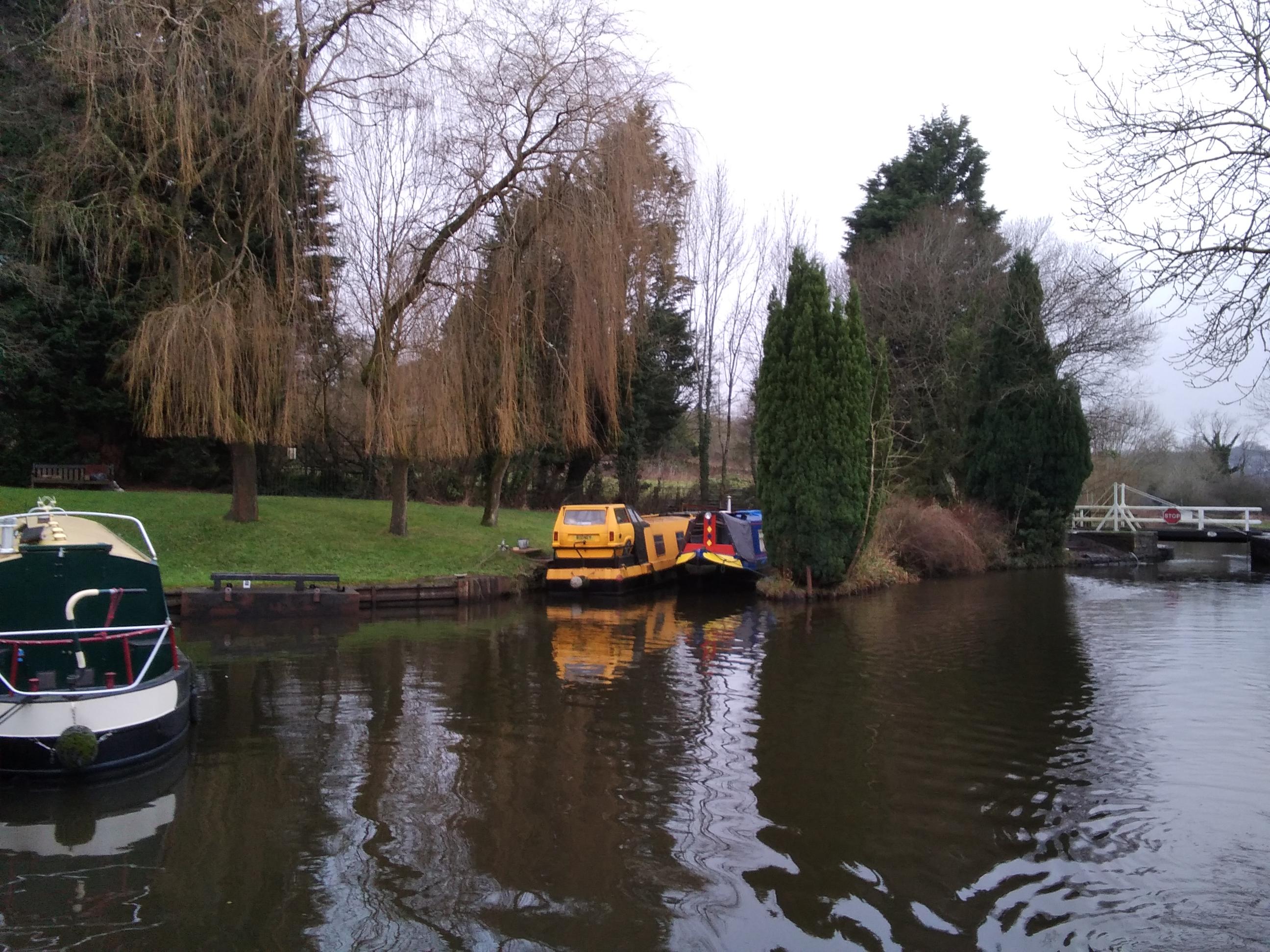 While walking between bridges, I saw there had been alot of recent hedge trimming. I had noticed in the morning, some of my holly decoration on the front of the boat had been blown away, so when I saw you cutting on the ground, and some with berries, I thought I would collect a sprig. There was a narrowing before the next bridge, so my plan was to throw it into the bow well, so I didn’t have it to your while trying to deal with opening the bridge. However when I tossed it over, the prickles snagged in my gloves and it didn’t follow the planned trajectory, landing in the water in stead. Definitely not worth getting my gloves wet for, and now I didn’t want to run back to get more, as I had a bridge to open. Pesky prickles!