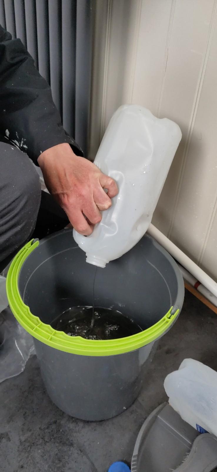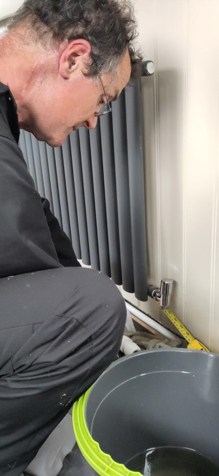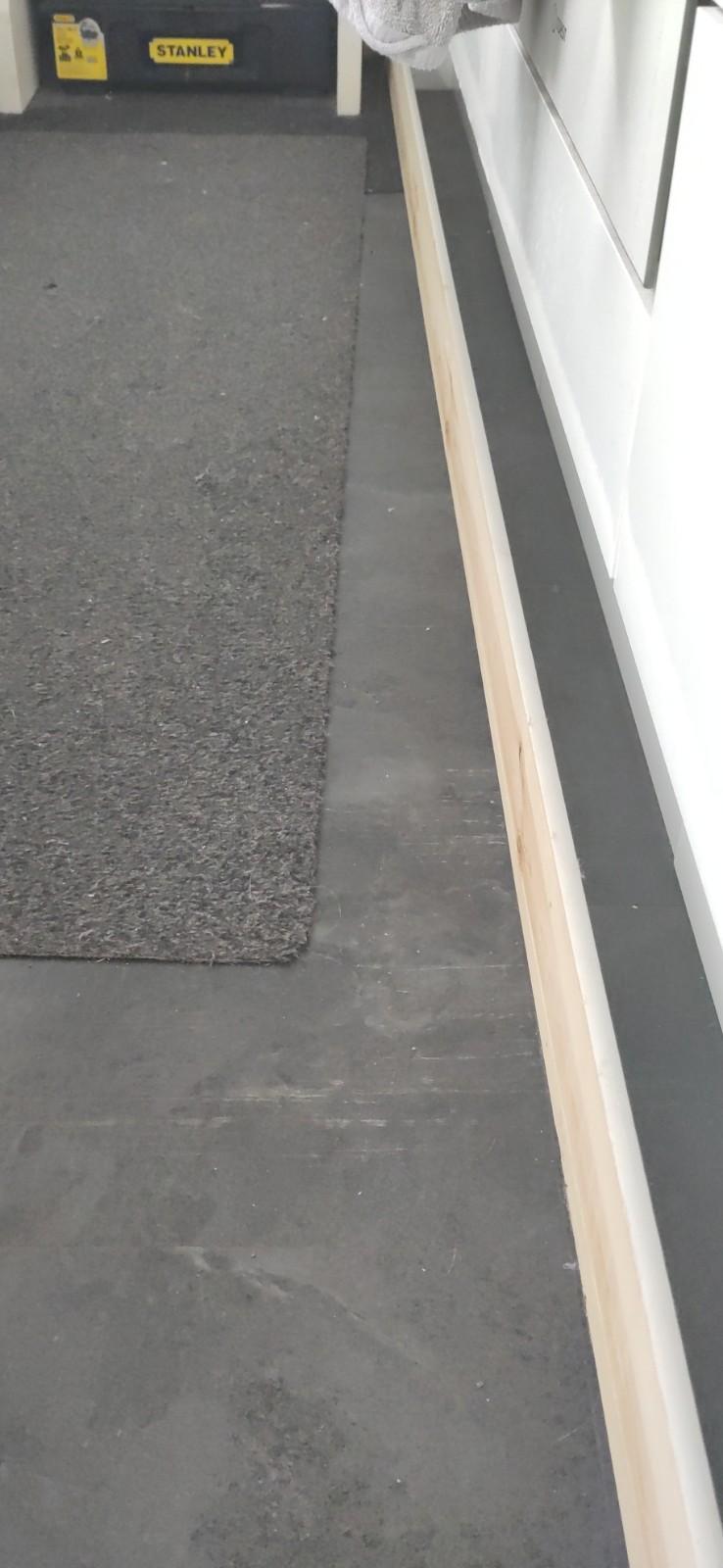 Occasionally Shane would call for assistance. I thought his plan to pull out the skirting board by bending it at a 45° angle past the seating was very suspect and felt it would snap. My fears were unfounded and I was reminded of the sceptical and anxious feeling at Parc Asterix on the largest wooden roller coaster in Europe, or perhaps in the world. It proudly advertised you could “feel the flexibility of wood” which was exactly what I didn’t want to feel in a rollercoaster. Stability, safety, solidity and strength were the qualities I preferred. Anyway he had just proved the wood to be very flexible in deed. It was also very long and hard to stow. At first I slid it along the kitchen floor in the direction it was sliding anyway, then realised that the fridge would not open so I slid it to the other side, under the steps and in front of the kickplates. They do have drawers in them but not frequently accessed. I wasn’t needing tinned fish or oven dishes in a hurry. I turned the painted side away so any bumps didn’t scuff the paint. Shane did manage to kick it once going to the kettle, but mostly it was out of the way.