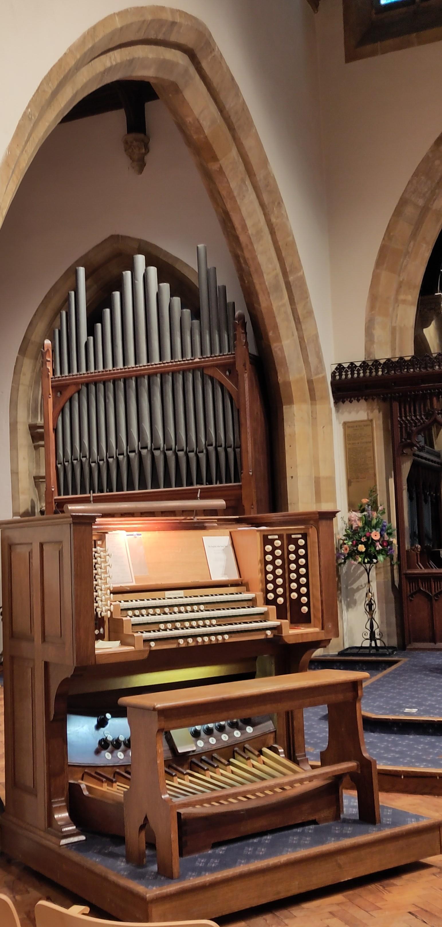 We had reason to stay two days in Evesham. Shane had bought tickets to go to a concert. We had listened to snippets on line and decided he sounded interesting. In the meantime on our wanderings, we had seen that there was also a free concert in the All Saints Church. Shane decided he had other things to do, but I went along. It was the unusual combination of an organist and a soprano. The organist, Gus Orchard, introduced the pieces and the soprano, Sheilagh Armit joined him for some of the repertoire. What a mighty instrument the organ is, such variety a good deal more than Ivor's three notes! While this one was not hugely decorative, it was unusually positioned centrally in the church, near the altar, where the organist could easily be seen playing and all the stops and foot pedals are fully on display.