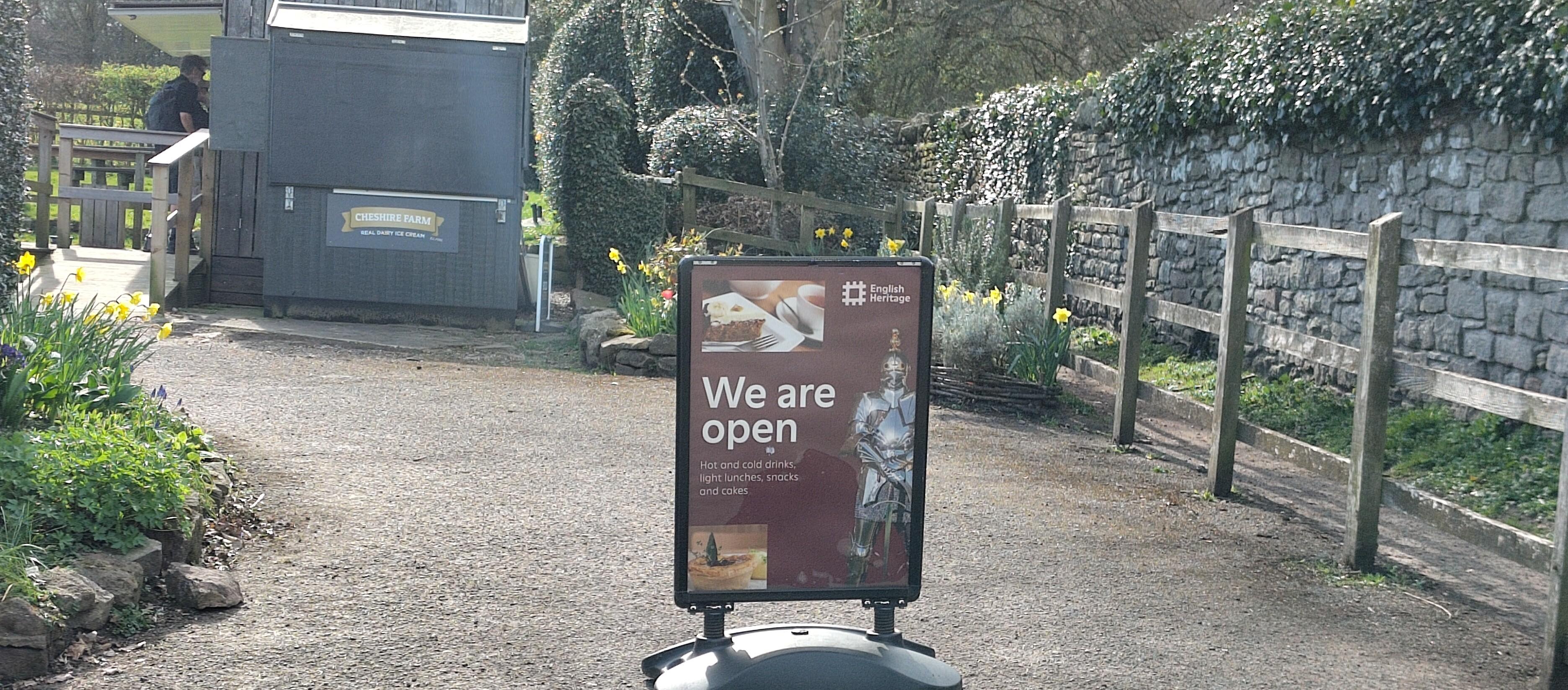 For our second attempt to visit Beeston Castle yesterday I hatched a cunning plan. If we had a large brunch and then set off reasonably early, we could probably get to see the important bits before we are driven back by hunger pangs. I scrambled the rest of our eggs and toasted the remaining bagels and we set off into the bright, warm sunshine. I like irony, so when we got to the castle entrance I was amused to see the sign outside the cafe telling us that it was open – today.