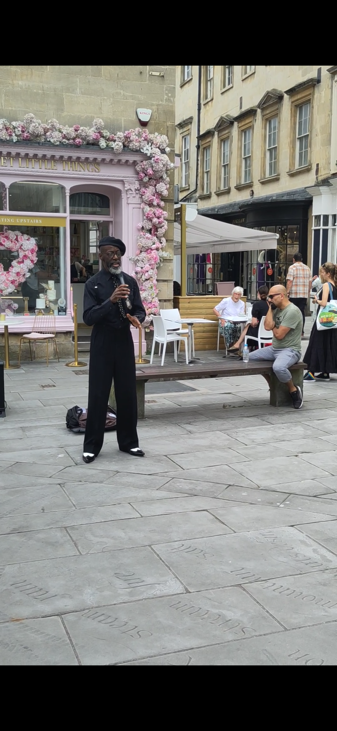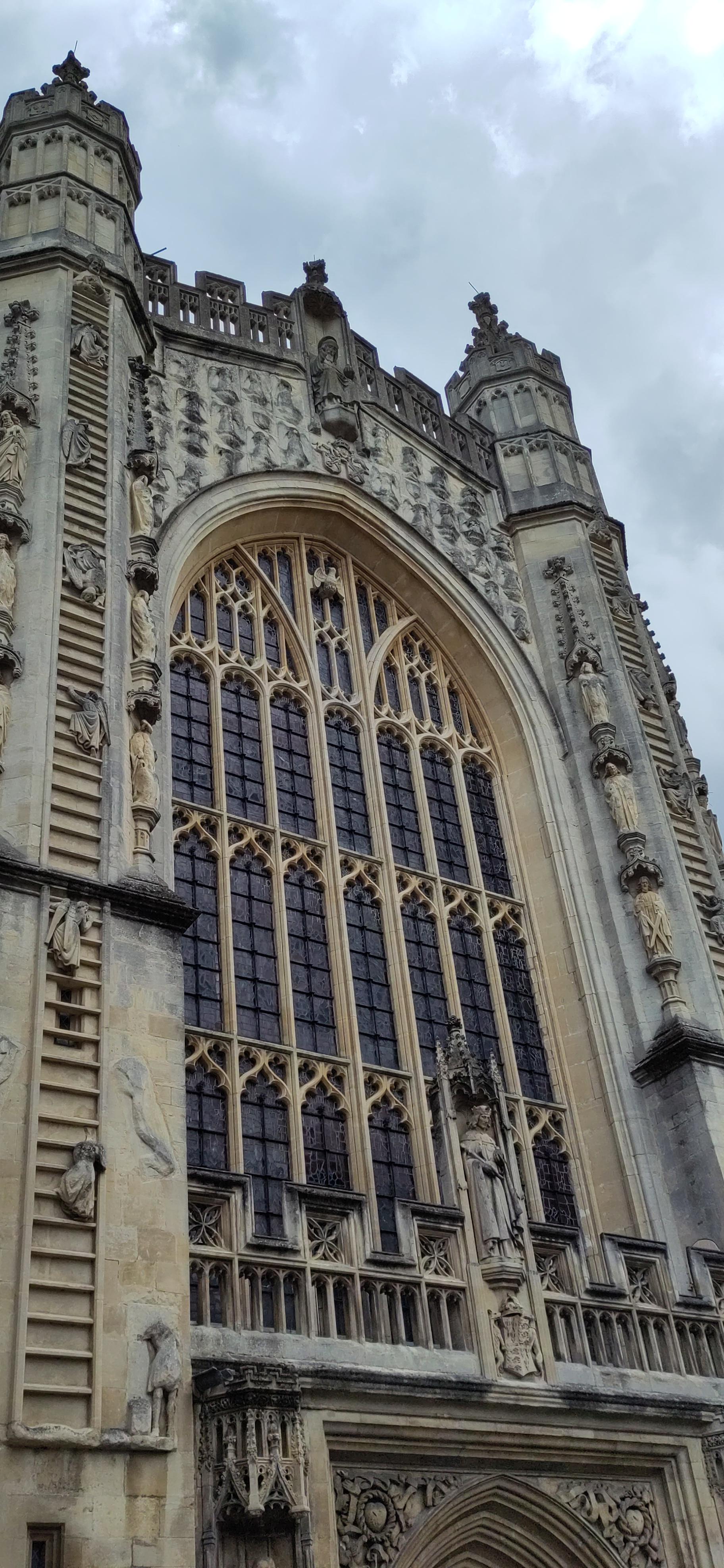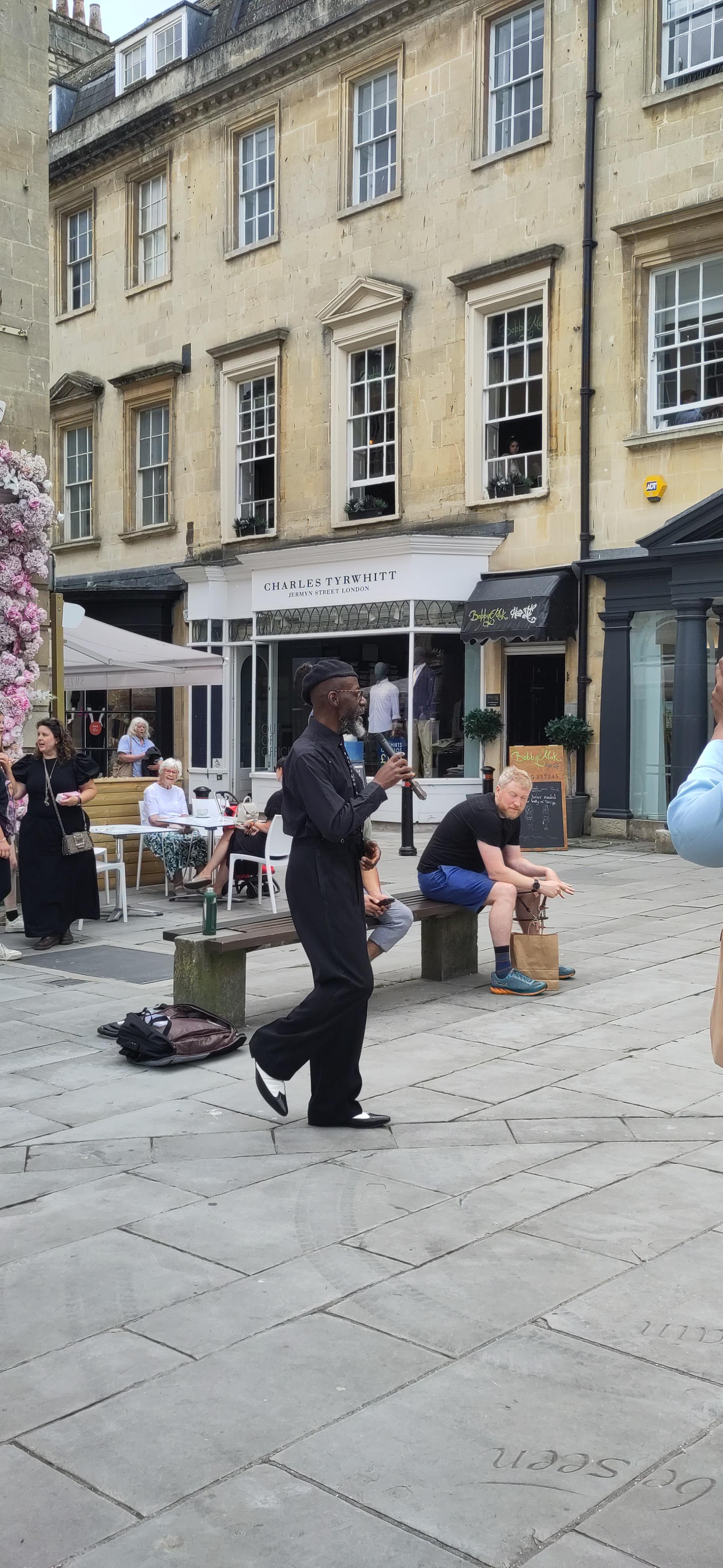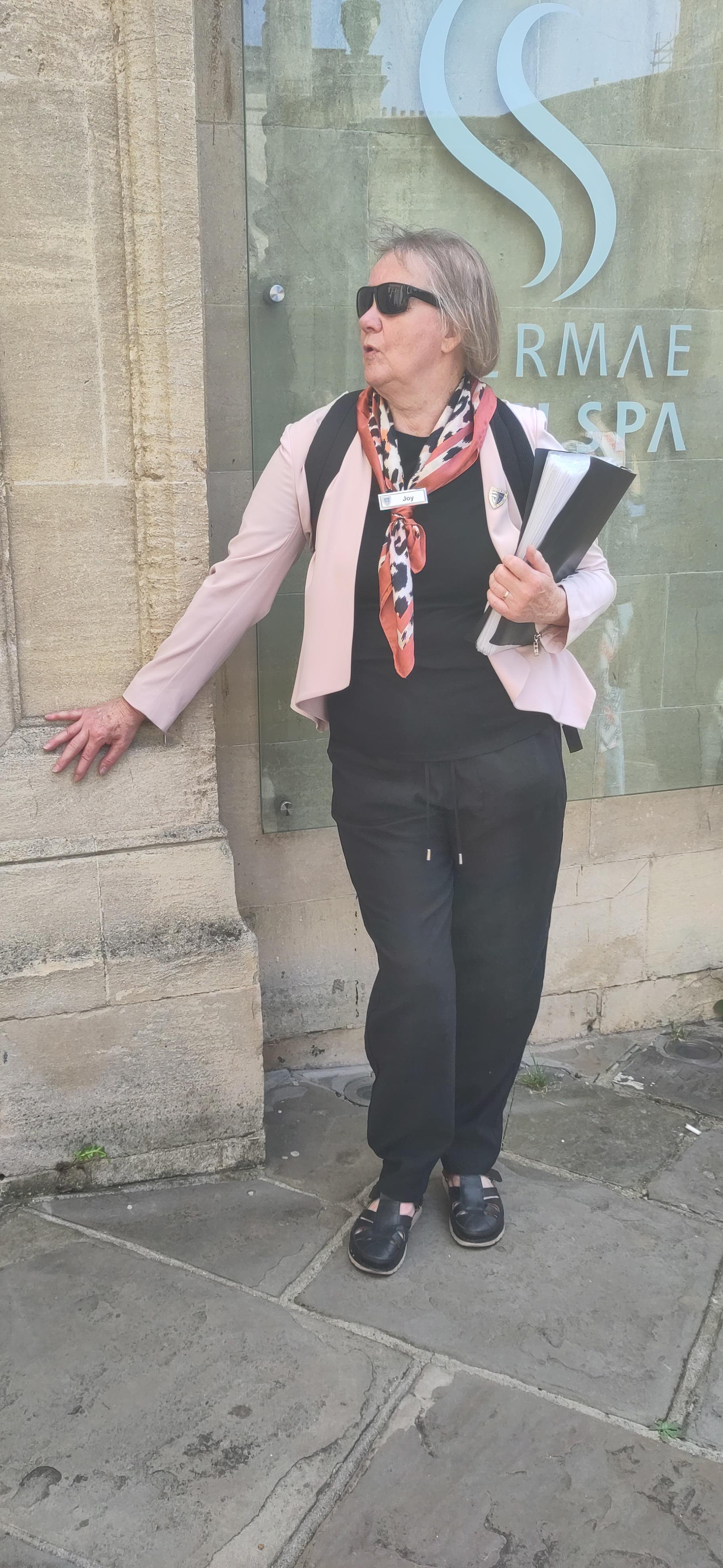 We turned up the next day and realised we hadn’t checked out the tour times. We were in time to have a little wander and return in forty minutes. There was now a large crowd gathered around a man with an umbrella held aloft and it seemed an unmanageable group. But we were divided into three groups as there were three volunteers and we were allocated to Joy. She led us to the cathedral to begin our tour and at first our stops were to places we had just been, but of course knew nothng about. Later we covered places we had not seen at all. She managed a multinational group in a calm relaxed manner and we learned about disease, toilets, architecture, Jane Austen, vaccination, Georgian nightclubs and fashion in an easy, light hearted style and two hours passed quickly.