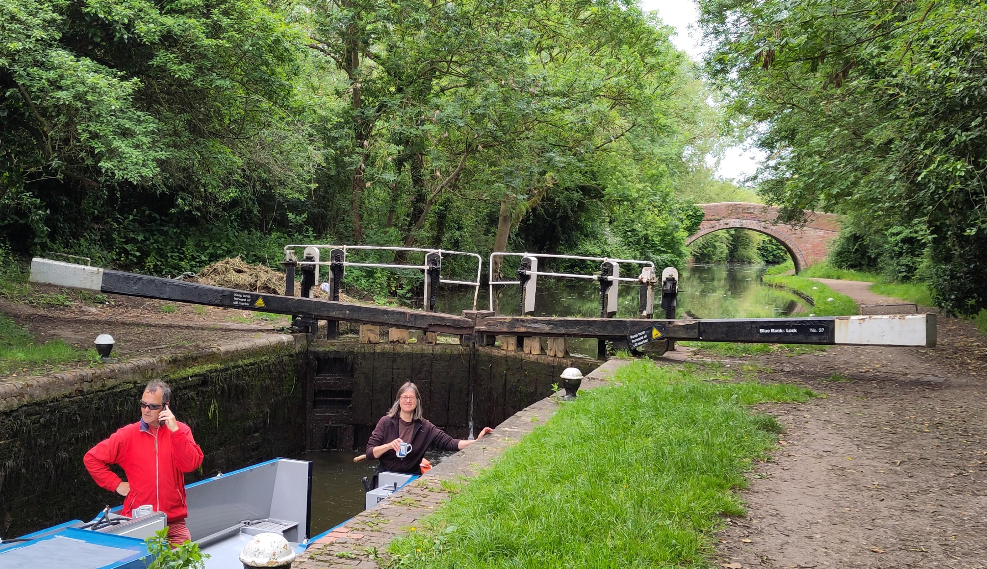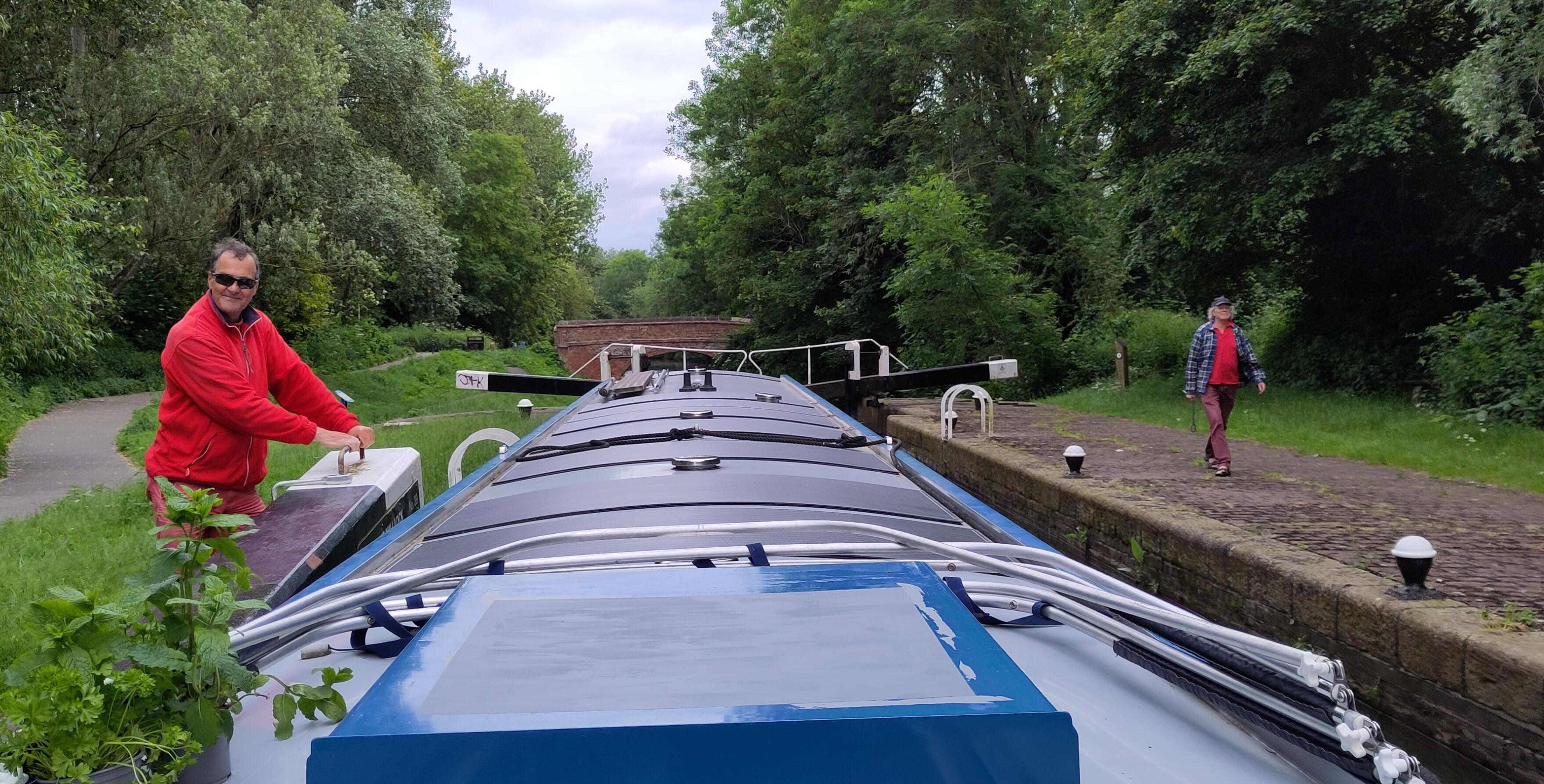 The approach to Leicester is very rural but with spaced out locks, so usually we boarded again between them. We passed an Ortomarine boat, Count for Nothing, moored up, then when we were in a lock, their crew, Mike and Yvonne walked passed and recognised Bartimaeus and stopped to introduce themselves and have a quick chat.